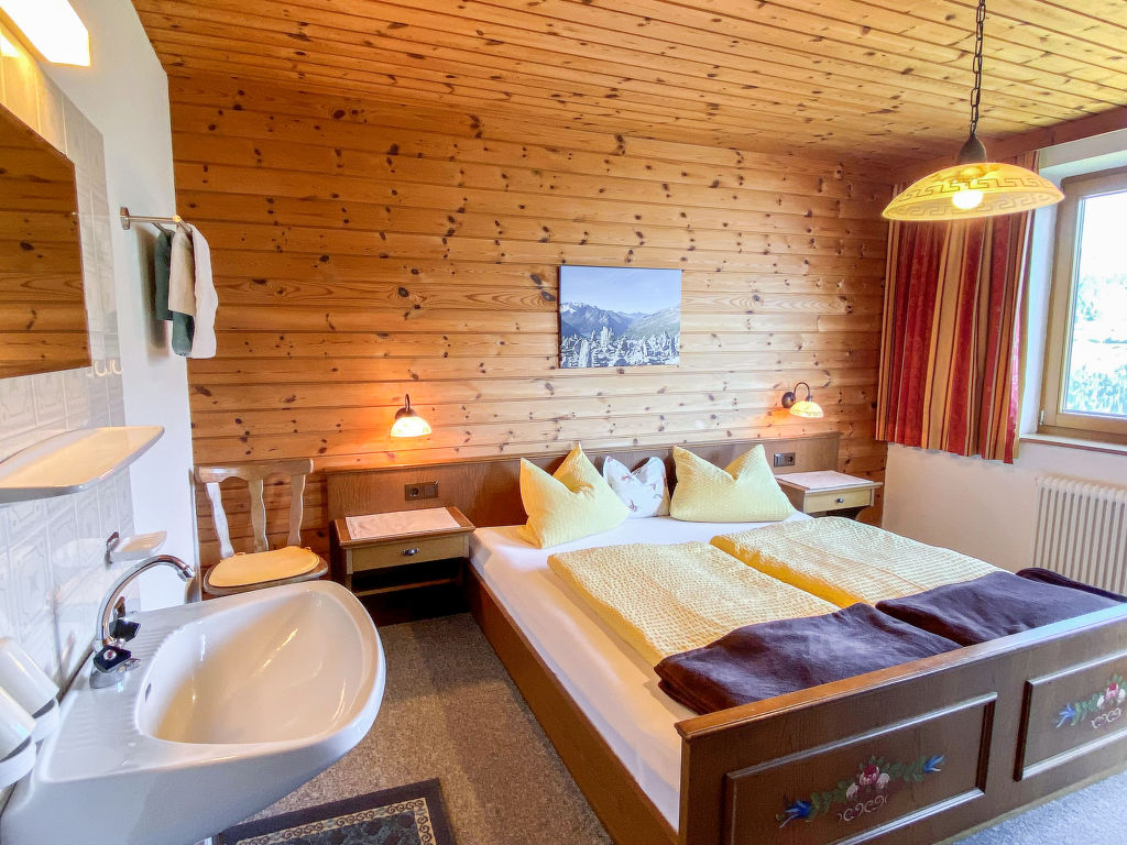 9-Zimmer-Wohnung, 2 Etagen, ca. 200 m². Erdgeschoss: Sep. Eingang in Flur. Großer Aufenthaltsraum/Esszimmer mit Tischen und Bänken. Wohnküche (4 Ceranfelder, Backofen, Geschirrspüler, 2x Kühlschrank, Kaffeemaschine, Wasserkocher) mit Sitzcouch und Essplatz für 5 Personen. Von hier Zugang zu Schlafzimmer mit Doppelbett und Einzelbett. Schlafzimmer mit franz. Bett und Waschbecken. Dusche/WC. 1. Etage: 3 Doppelzimmer, jeweils mit Waschbecken, 2 davon mit Balkonausgang. 2 Schlafzimmer, jeweils mit Doppelbett, Bettcouch, Waschbecken und Balkonausgang. Einzelzimmer mit Waschbecken. Bad/Dusche/WC. Sep.WC. Bei Belegung mit weniger Personen als der maximalen Personenzahl stehen nicht alle Schlafzimmer zur Verfügung.