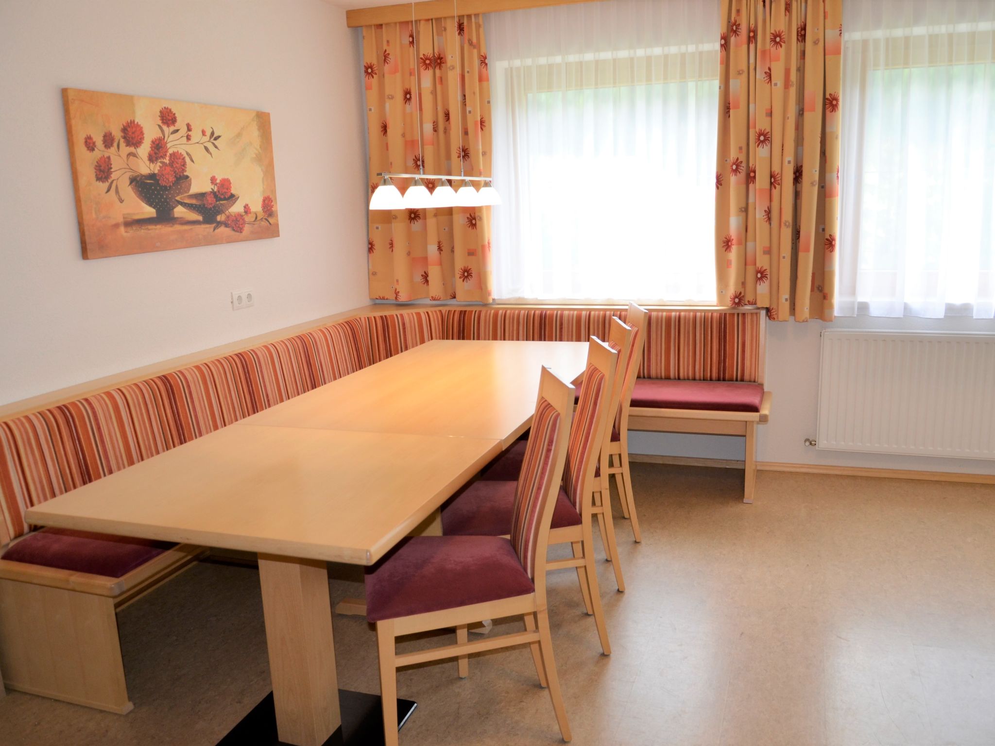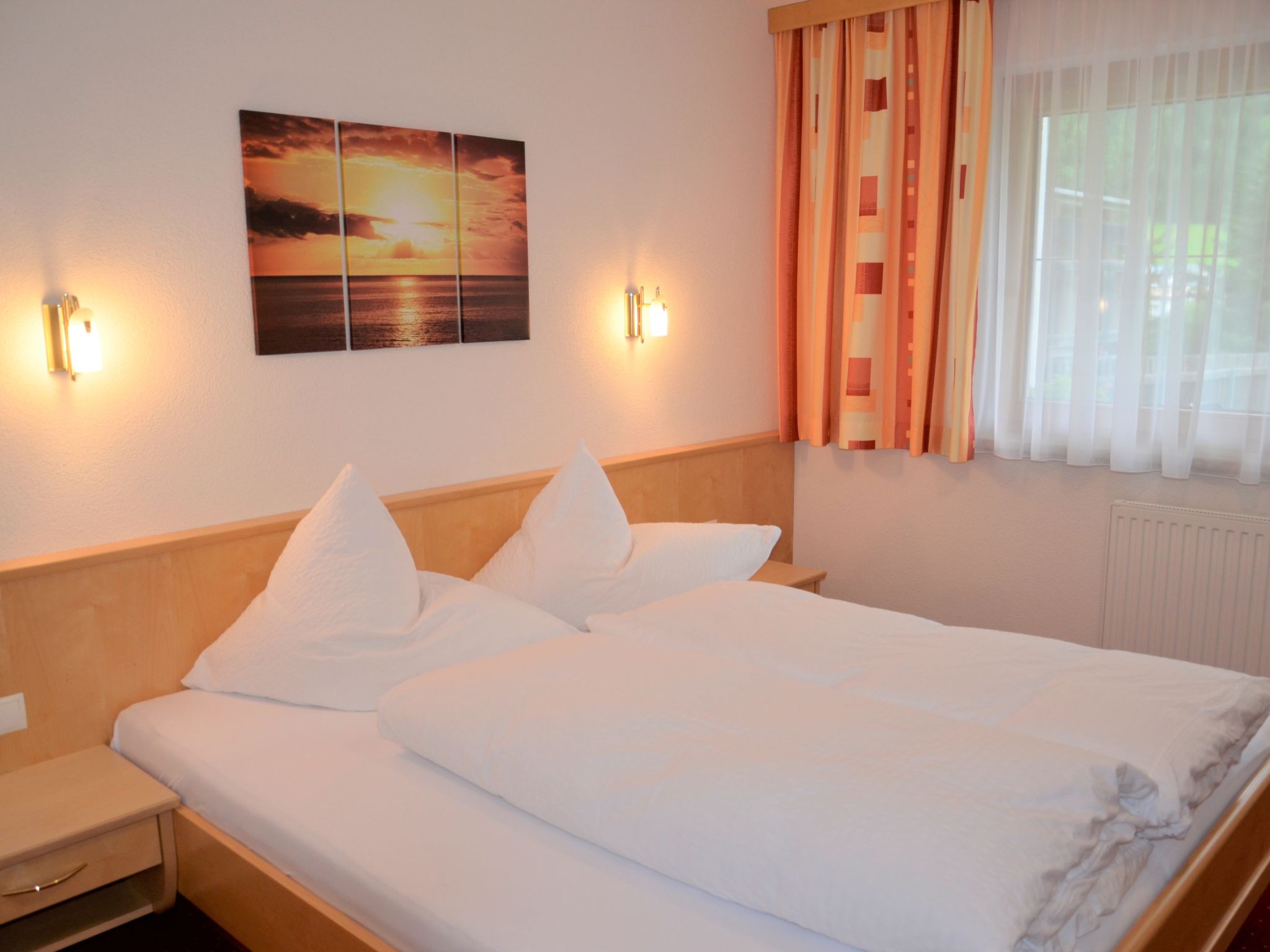 Das Ferienhaus GEORG mit unserer Ferienwohnung und der Wohnung des Vermieters steht im Ortsteil Platti, mit schönem Blick ins Tal und auf die Gipfel der Samnaungruppe. Ortsmitte Kappl und Diasbahn 2 km. Sauna mit Ruheraum und Dusche (zur gemeinsamen Nutzung, 2x pro Woche im Preis enthalten, weitere Saunagänge gegen Bezahlung). Brötchenservice. Parkmöglichkeit für 1 Pkw auf dem Grundstück. 4 weitere Parkplätze (davon 2 Garagenplätze, max. Höhe 2,10 m) in ca. 50 m Entfernung. Zugang zum Haus über Außentreppe. Die Wohnung besteht aus 2 Wohneinheiten. Balkon. Terrasse. Ansprechende, gepflegte Einrichtung, überwiegend mit hellen Holzmöbeln. Teilweise Teppichböden. Sat-TV. Internetzugang (WLAN, inklusive). Safe. Öl-Zentralheizung. Hinweis: Rauchen ist im Haus nicht gestattet. Winter-Infos: Diasbahn 2 km. Skibushaltestelle ca. 250 m. Im Haus Ski- und Schuhabstellmöglichkeit mit Skischuhtrockner.