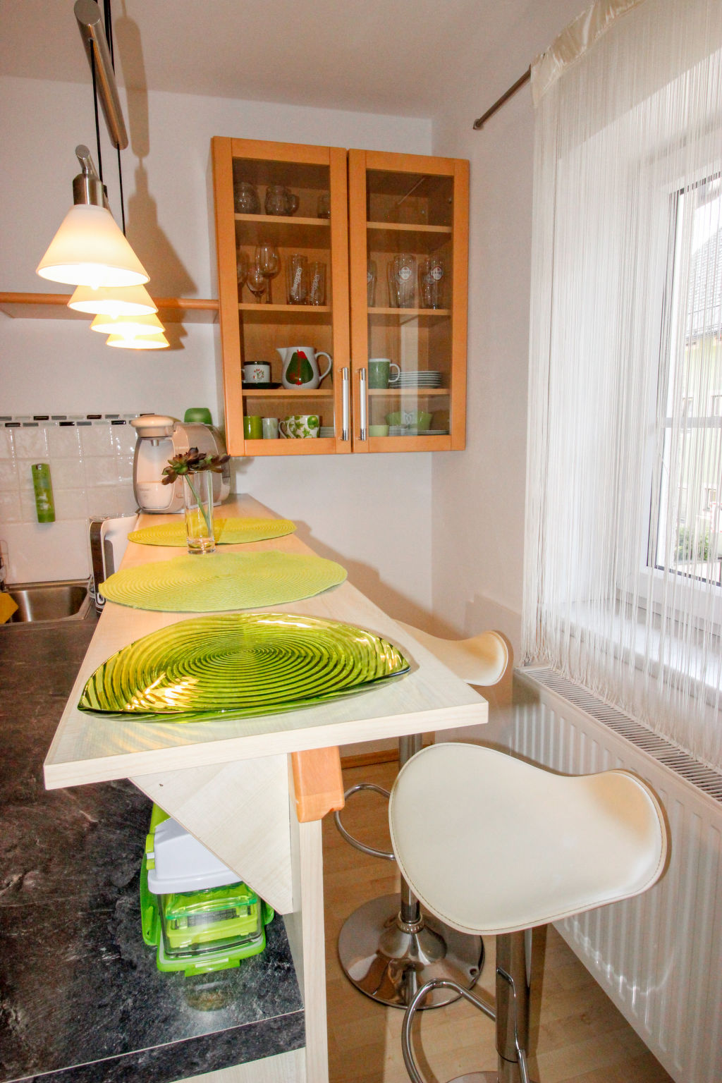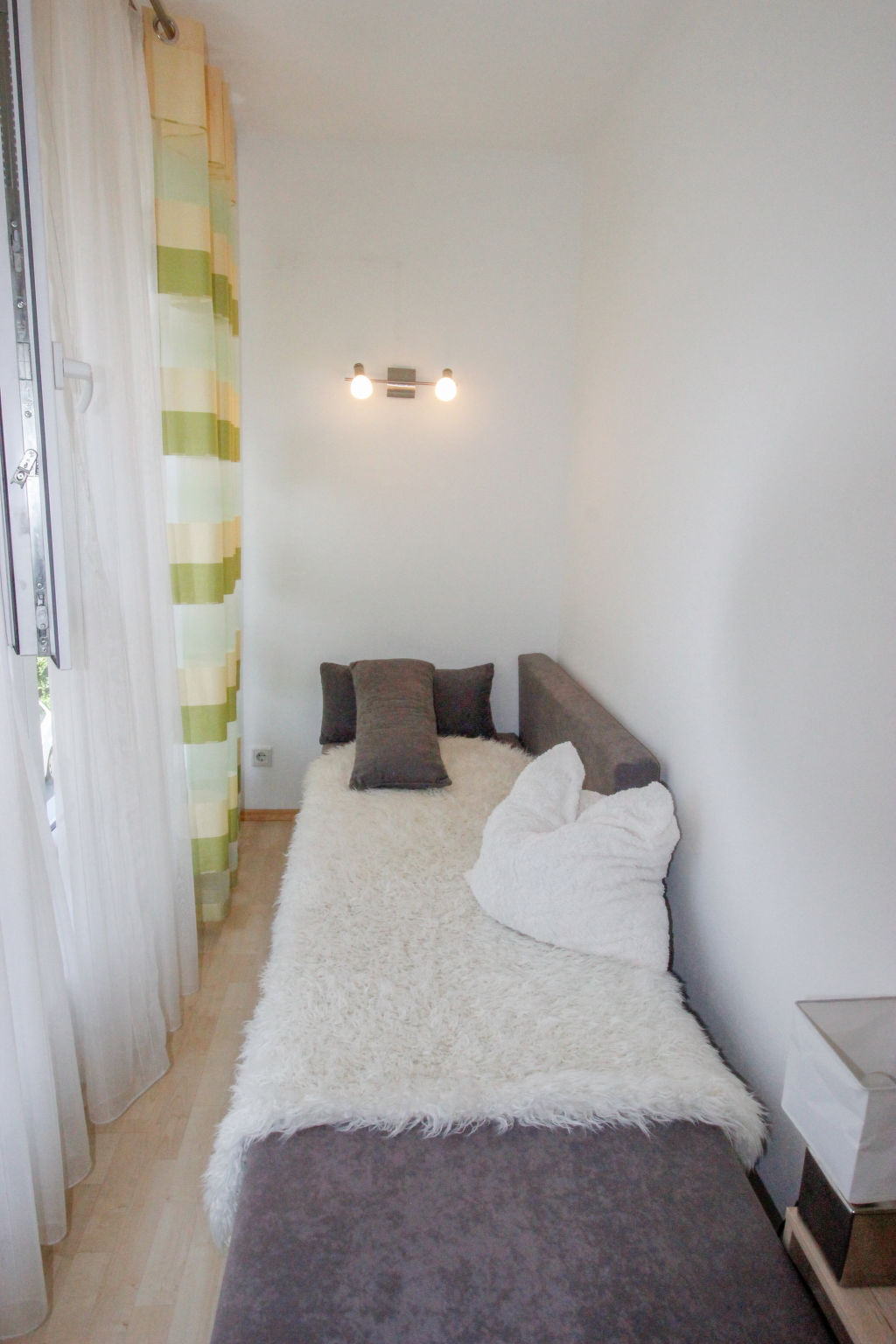 "Anneliese", 2-Zimmer-Wohnung 64 m2 im 1. Stock. Geräumig und hell, komfortabel und gemütlich eingerichtet: Eingang. Wohn-/Schlafzimmer mit 2 Diwanbetten, Kabel-TV, Flachbildschirm und Radio. 1 Doppelzimmer. Ausgang zum Balkon. Grosse, offene Küche (Backofen, Geschirrspüler, 4 Glaskeramikherd Platten, Toaster, Wasserkocher, Mikrowelle, elektrische Kaffeemaschine, Kapseln für die Kaffeemaschine (Tassimo)) mit Bar, Esstisch. Bad, sep. WC. Holzböden. Balkon 3 m2. Balkonmöbel. Zur Verfügung: Babybett bis 2 Jahre. Internet (Wireless LAN, gratis). Bitte beachten: geeignet für Familien. Nichtraucher-Unterkunft. 50619-006040-2021