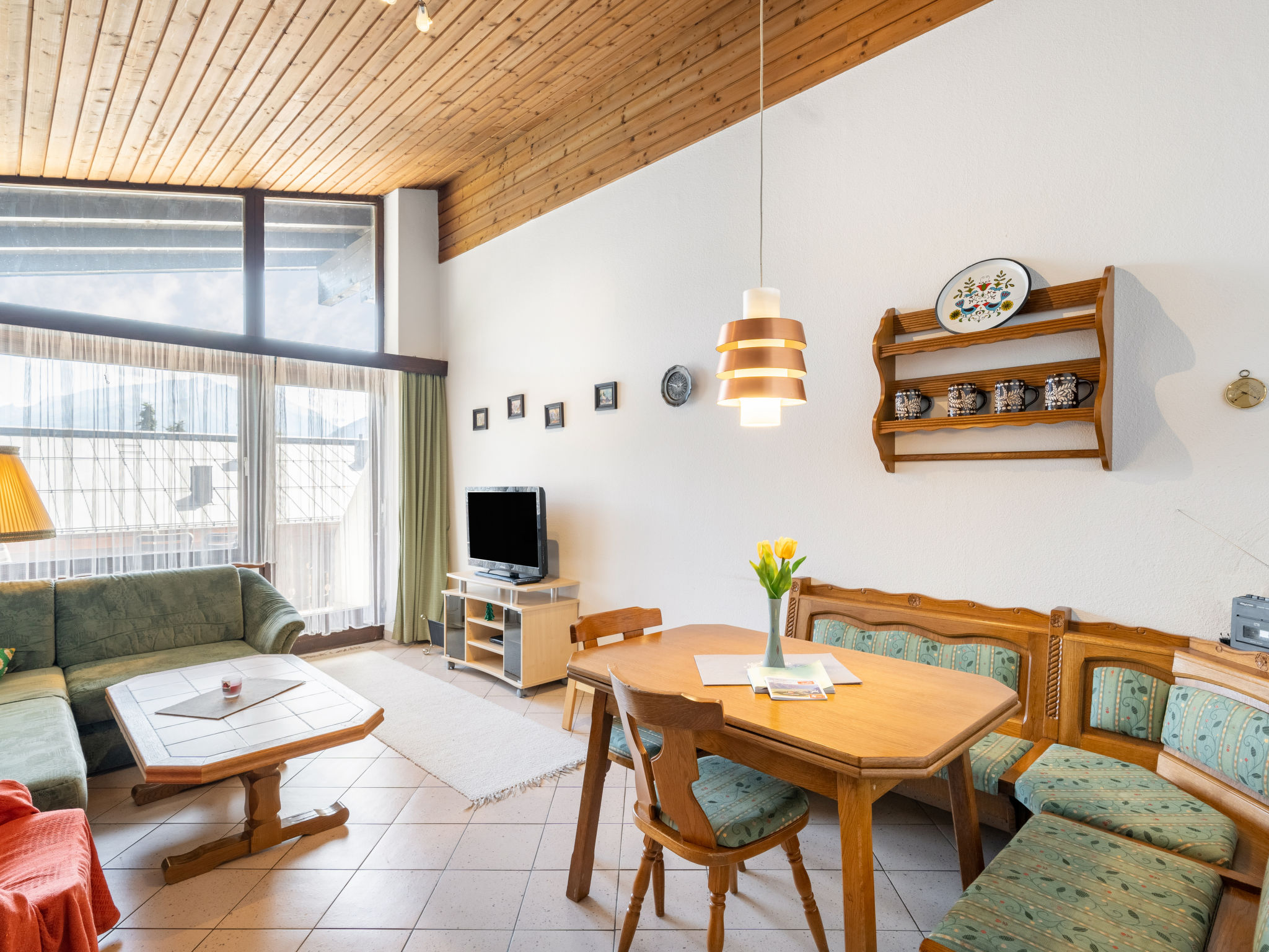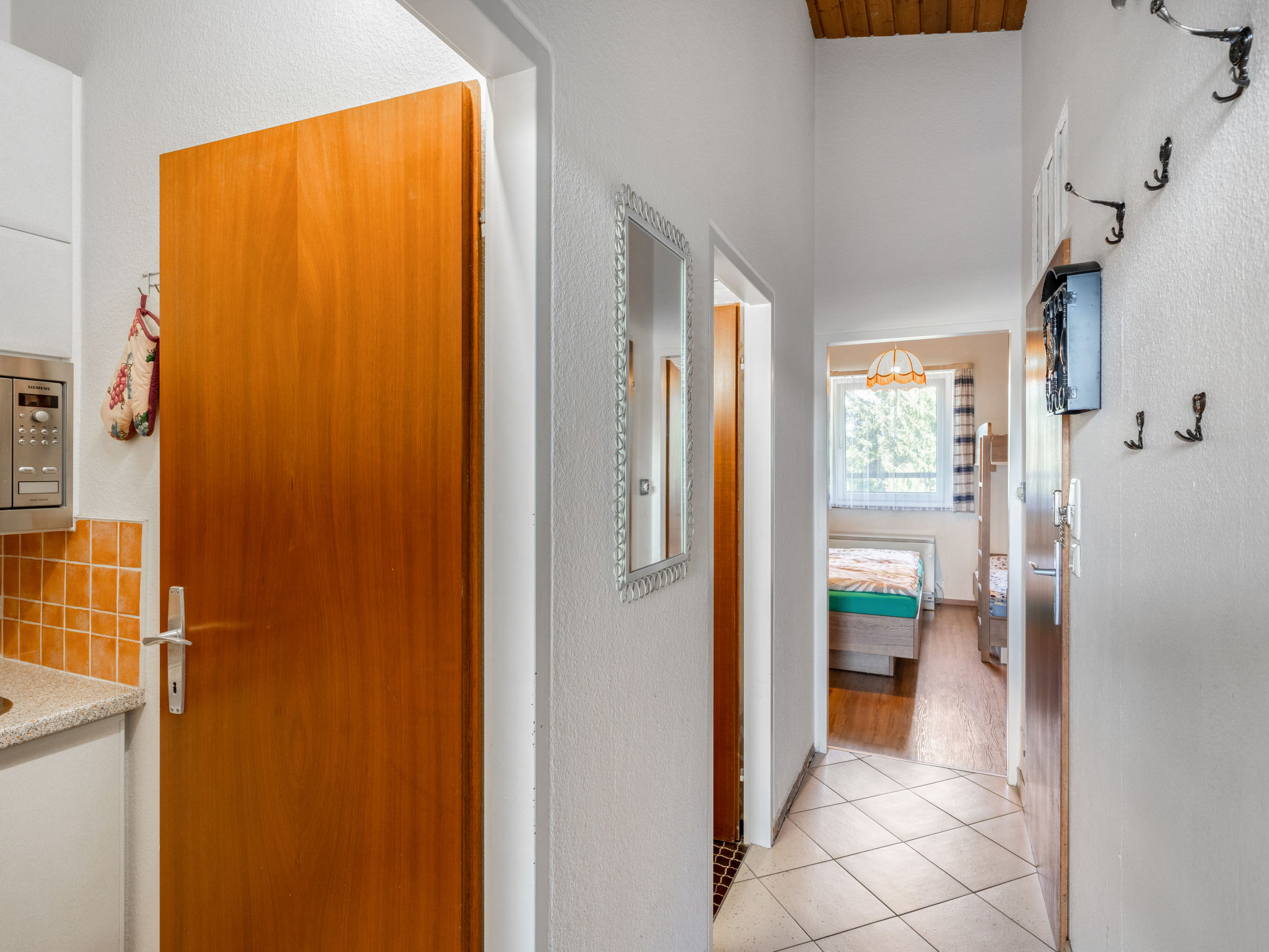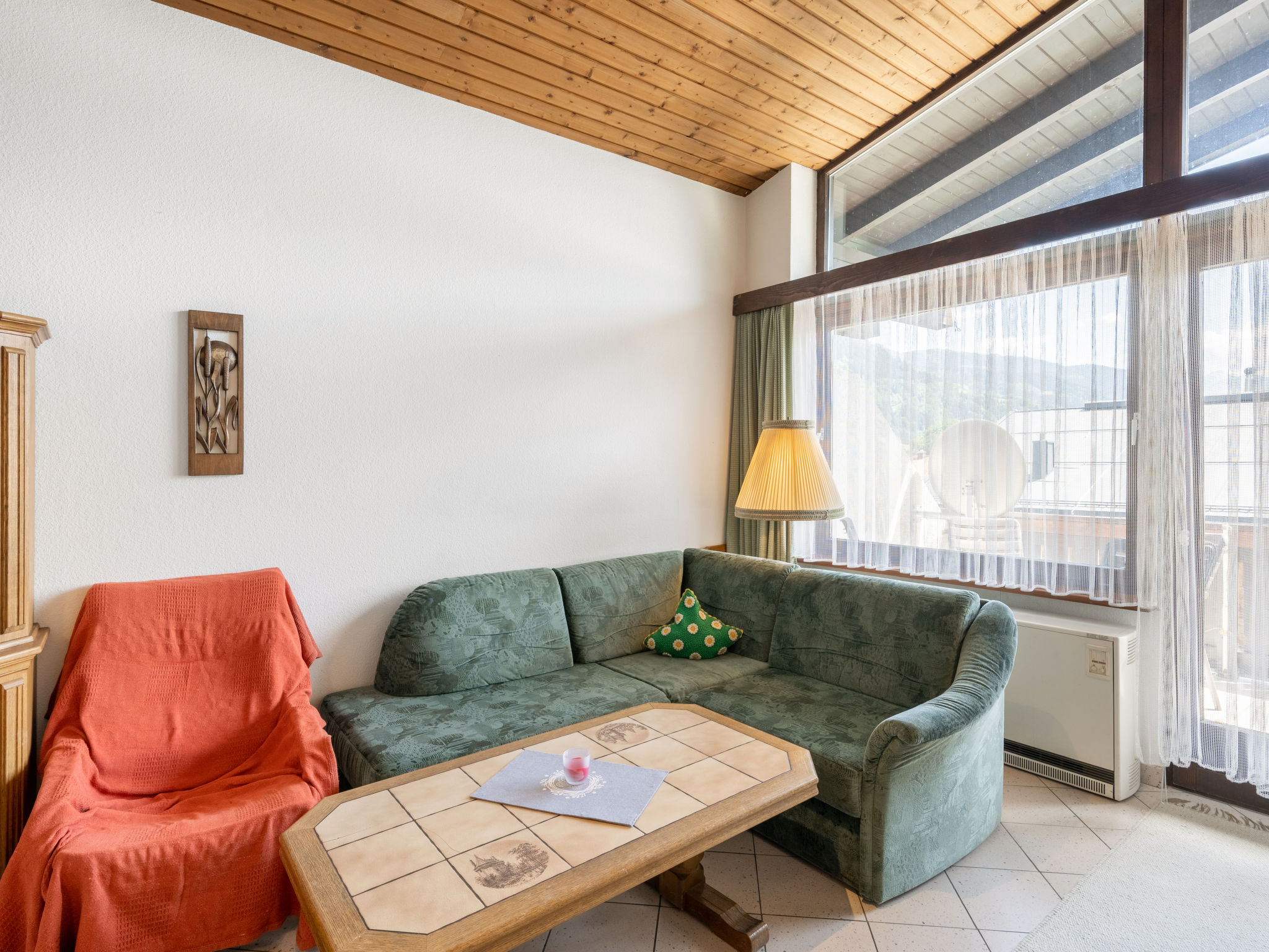 2-Zimmer-Wohnung 45 m2 im 2. Stock. Zweckmässig und gemütlich eingerichtet: Wohn-/Esszimmer mit Panoramafenster mit 1 Doppeldiwanbett, Essecke, Sat-TV und Radio. Ausgang zum Balkon. 1 kleines Zimmer mit 1 x 2 Etagenbetten, 1 Doppelbett. Kochnische (4 Kochplatten, Backofen, Geschirrspüler, Mikrowelle). Bad/WC. E-Heizung. Balkon 10 m2. Terrassenmöbel, Liegestühle (1). Schöne Panoramasicht auf die Berge. Zur Verfügung: Internet (Wireless LAN, gratis). 50611-002960-2020