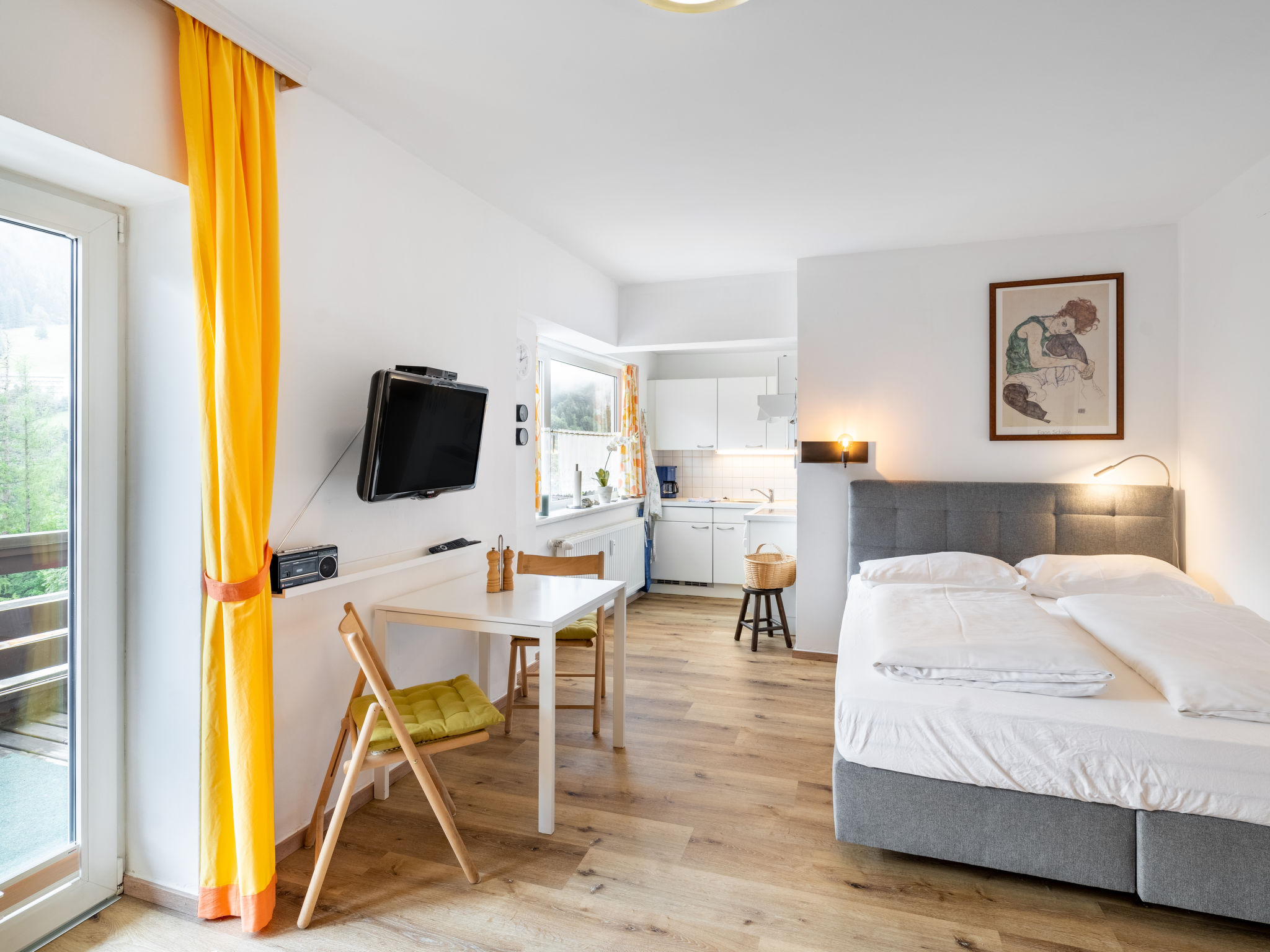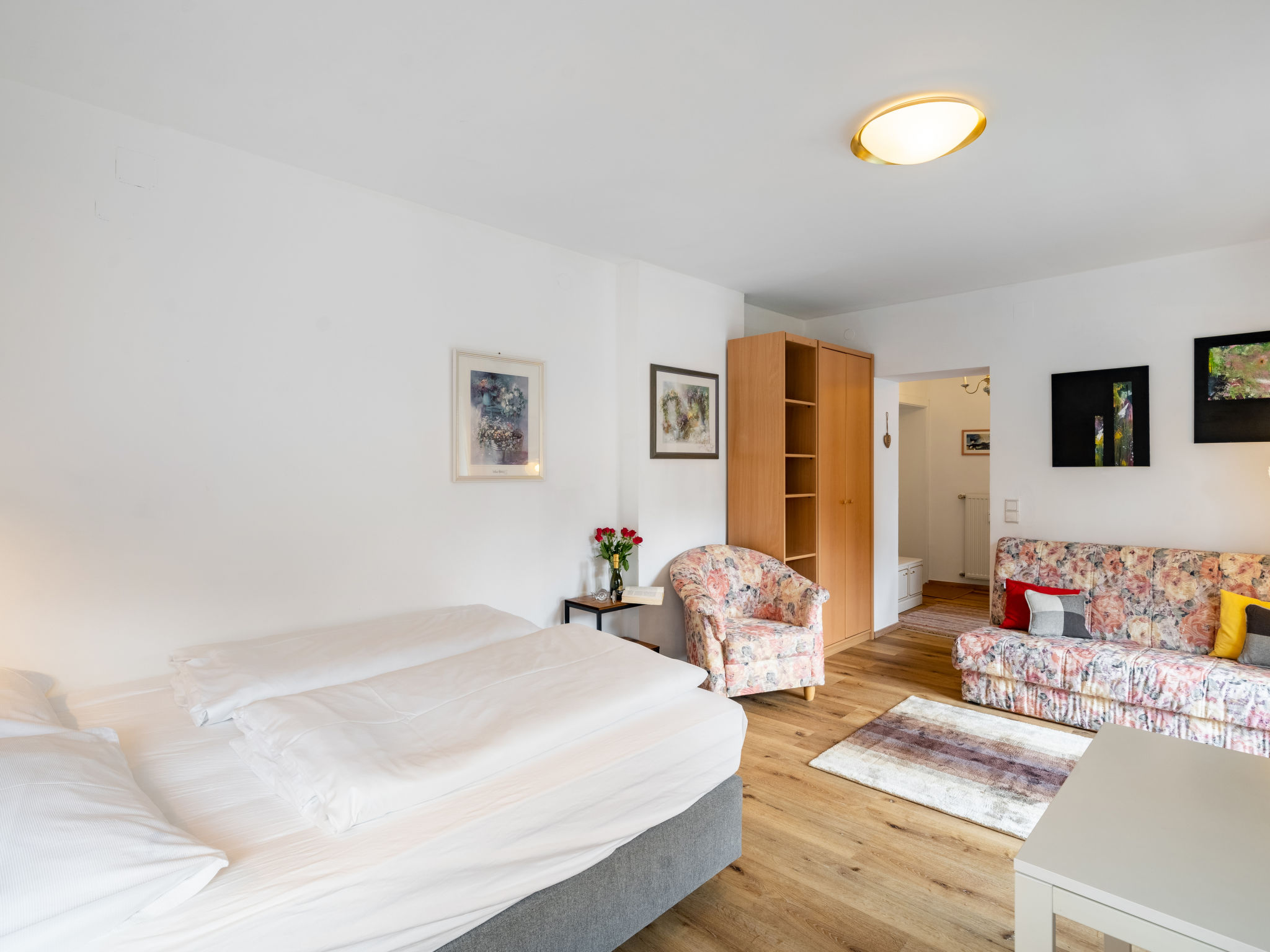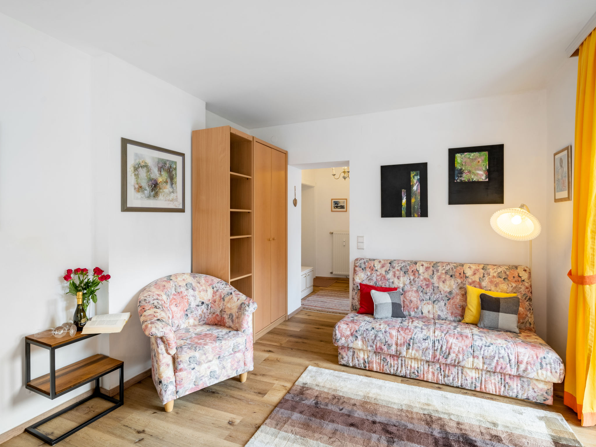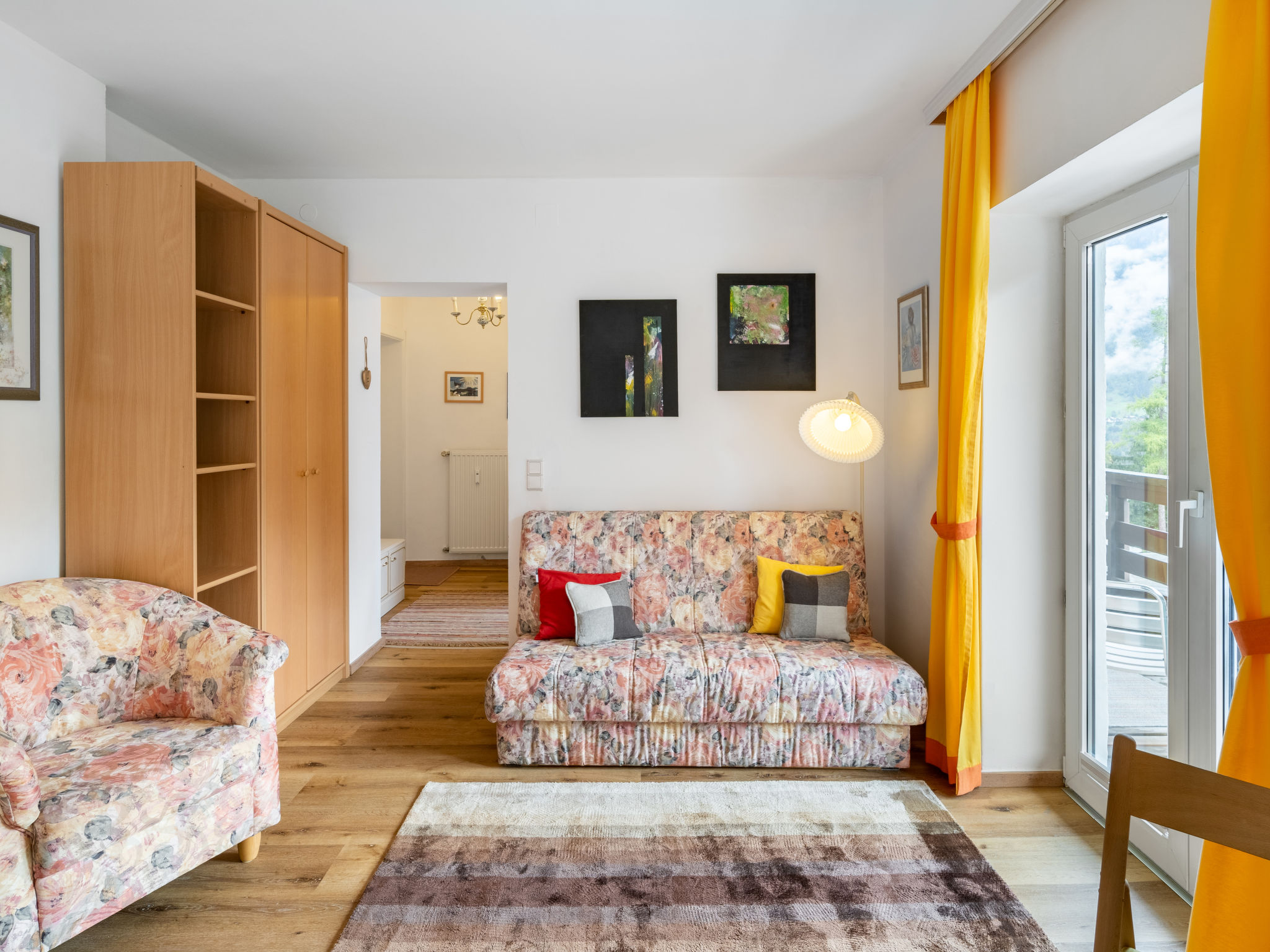 "Claudia Top 7", 1-Zimmer-Wohnung 36 m2 im 1. Stock. Geräumig und hell: Eingang. Wohn-/Schlafzimmer mit 1 Doppeldiwanbett, 1 Doppelwandschrankbett, Esstisch und Sat-TV. Ausgang zum Balkon. Kochnische (Backofen, 4 Glaskeramikherd Platten, Toaster, Wasserkocher, Mikrowelle). Dusche/WC. Balkon 7 m2. Terrassenmöbel, Liegestühle (1). Schöne Panoramasicht auf die Berge. Zur Verfügung: Internet (Wireless LAN, gratis). Bitte beachten: Nichtraucher-Unterkunft. 50403-000316-2020
