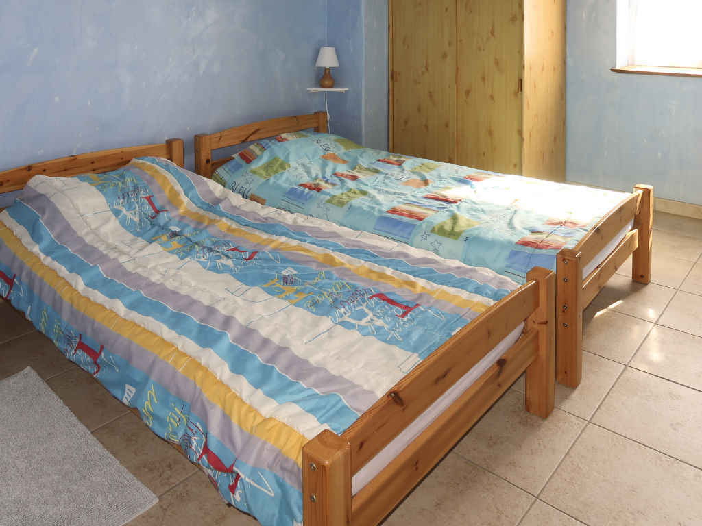 3-Zimmer-Haus, 2 Etagen, ca. 80 m². Erdgeschoss: Wohnraum mit Essplatz, Kamin (Einsatz, Holz inklusive), durch Theke abgeteilte Küche (3 Flammen, 1 Platte, Backofen, Mikrowelle, Geschirrspüler, Kühlschrank, Kaffeemaschine, Wasserkocher, Toaster), Terrassenausgang. Sep.WC. Obergeschoss: Schlafzimmer mit franz. Bett. Zweibettzimmer. Dusche/WC. Inserat einer Privatperson nach Artikel 155, IV, CGI.
