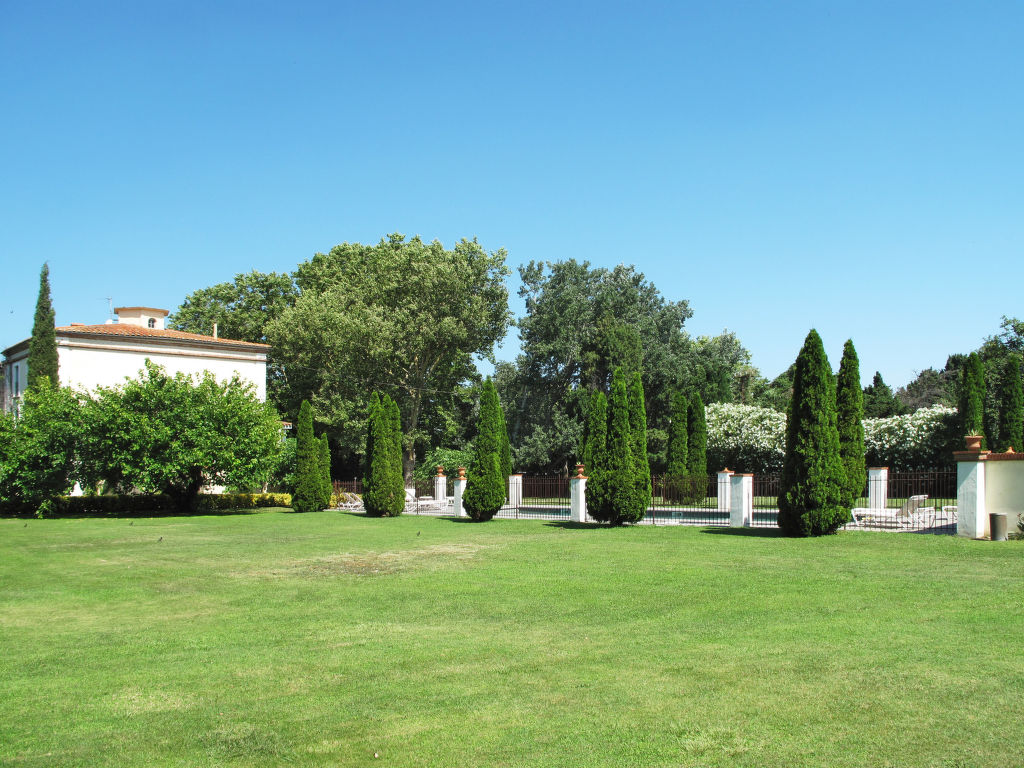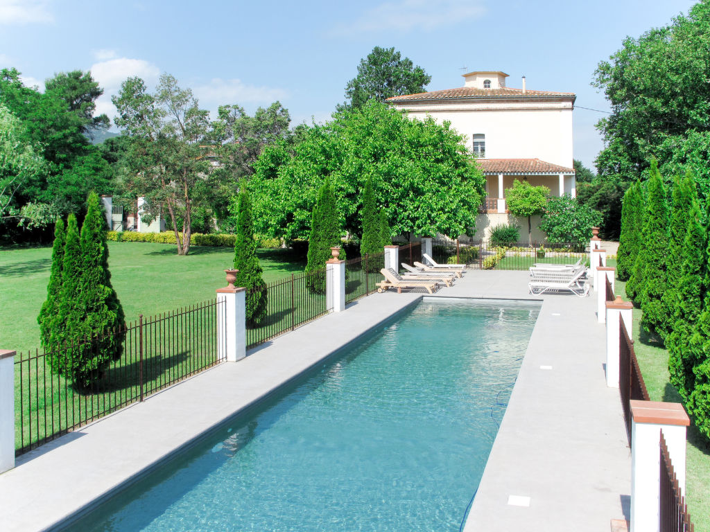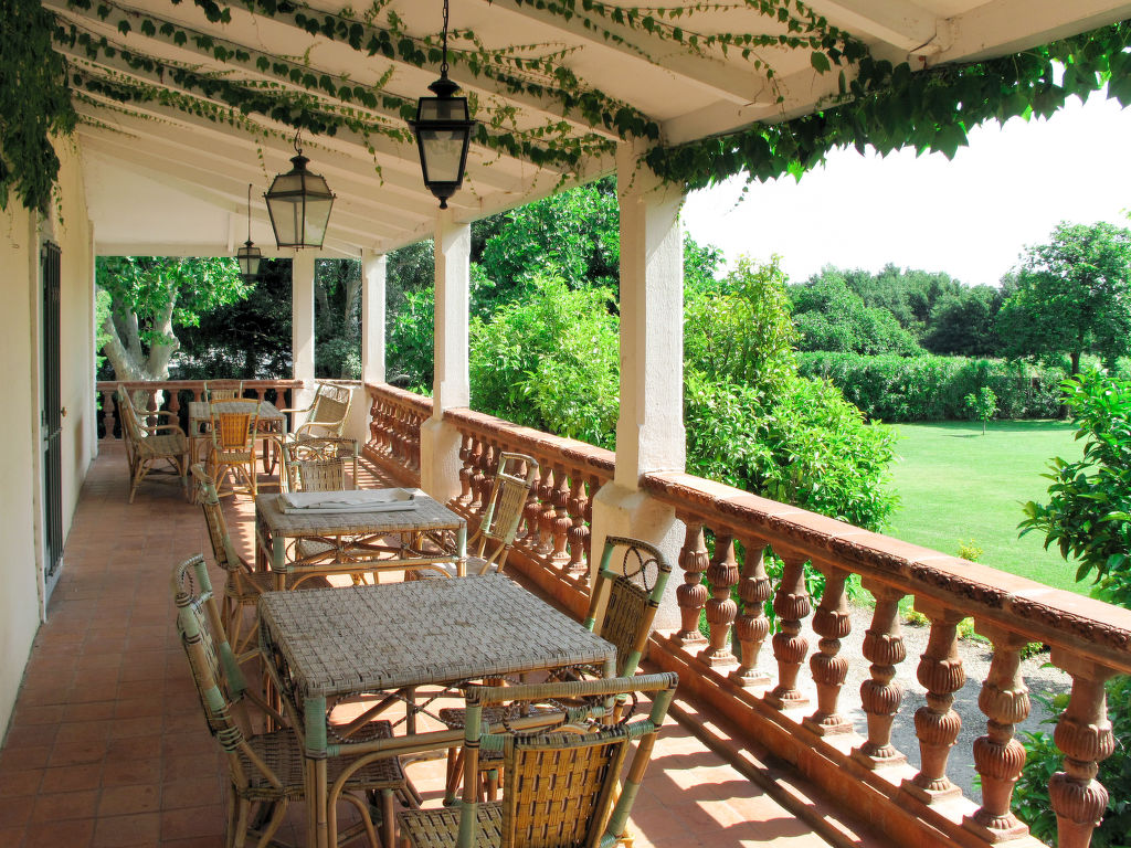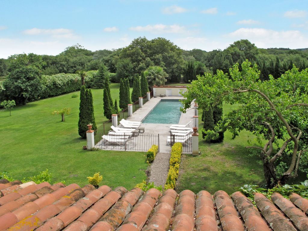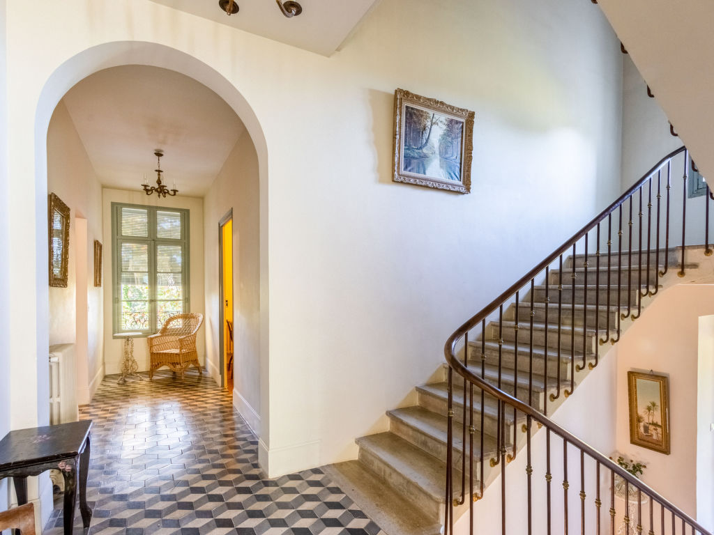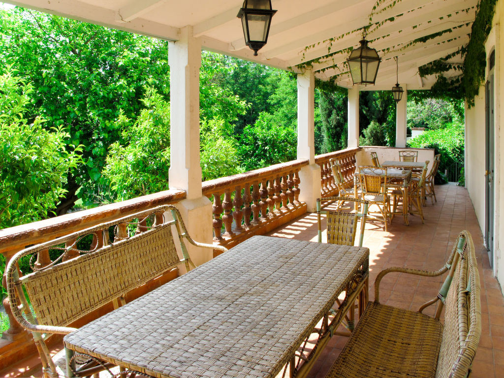 11-Zimmer-Haus, 3 Etagen, ca. 400 m². Erdgeschoss: Wohnraum mit Sitzgruppe und Kamin. Bibliothek mit kleiner Sitzgruppe. Esszimmer mit großem Holzesstisch. Große Küche (5 Flammen, Backofen, Mikrowelle, Geschirrspüler, Kühlschrank, Gefrierschrank, Kaffeemaschine, Wasserkocher, Toaster) mit Essplatz für 8 Personen und kaminähnlichem offenem Grill. Sep.WC. Halbe Etage höher: Ausgang zur großen, überdachten Terrasse (von hier auch über Treppe zum Garten). 1. Etage: Zweibettzimmer. Schlafzimmer mit franz. Bett. Bad/Dusche/Doppelwaschbecken/WC (von beiden Schlafzimmern zugänglich). Zweibettzimmer mit Dusche/WC, Ankleideraum. Schlafzimmer mit franz. Bett und Dusche/WC, Ankleideraum. 2. Etage: 2 Zweibettzimmer, jeweils mit Dusche/WC und Ankleideraum. Zweibettzimmer. Schlafzimmer mit franz. Bett. Großes Bad. Sep.WC.Hinweise: Die franz. Betten haben die Maße 1,60 x 2 m, die Einzelbetten 0,80/0,90 x 2 m. Bei Buchung zum Preis für 12 Personen stehen die beiden zuletzt genannten Schlafzimmer und das große Bad nicht zur Verfügung. Inserat einer Privatperson nach Artikel 155, IV, CGI.