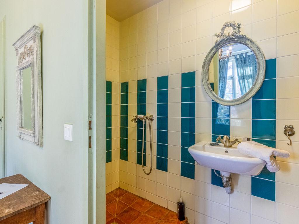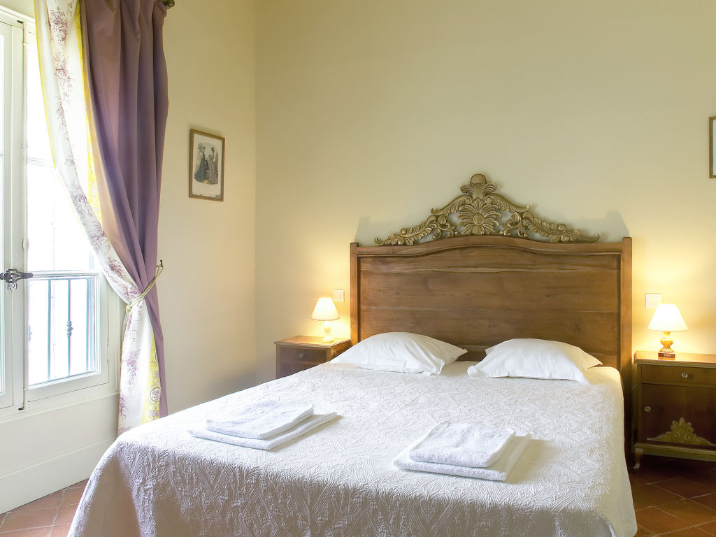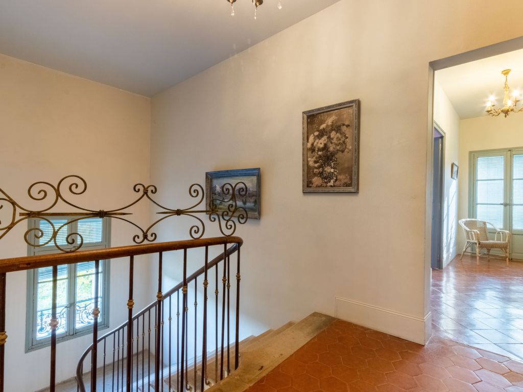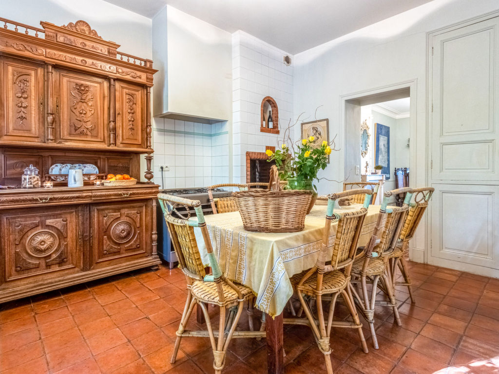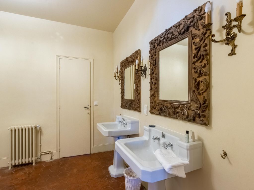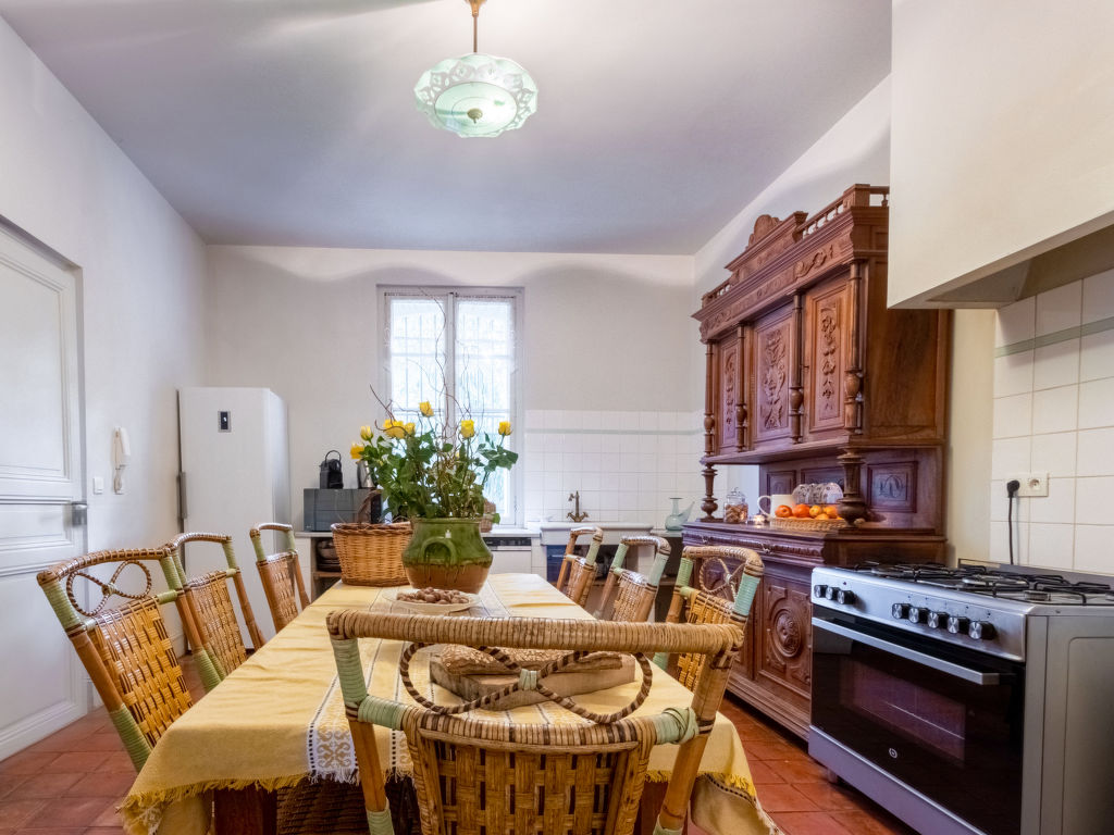 11-Zimmer-Haus, 3 Etagen, ca. 400 m². Erdgeschoss: Wohnraum mit Sitzgruppe und Kamin. Bibliothek mit kleiner Sitzgruppe. Esszimmer mit großem Holzesstisch. Große Küche (5 Flammen, Backofen, Mikrowelle, Geschirrspüler, Kühlschrank, Gefrierschrank, Kaffeemaschine, Wasserkocher, Toaster) mit Essplatz für 8 Personen und kaminähnlichem offenem Grill. Sep.WC. Halbe Etage höher: Ausgang zur großen, überdachten Terrasse (von hier auch über Treppe zum Garten). 1. Etage: Zweibettzimmer. Schlafzimmer mit franz. Bett. Bad/Dusche/Doppelwaschbecken/WC (von beiden Schlafzimmern zugänglich). Zweibettzimmer mit Dusche/WC, Ankleideraum. Schlafzimmer mit franz. Bett und Dusche/WC, Ankleideraum. 2. Etage: 2 Zweibettzimmer, jeweils mit Dusche/WC und Ankleideraum. Zweibettzimmer. Schlafzimmer mit franz. Bett. Großes Bad. Sep.WC.Hinweise: Die franz. Betten haben die Maße 1,60 x 2 m, die Einzelbetten 0,80/0,90 x 2 m. Bei Buchung zum Preis für 12 Personen stehen die beiden zuletzt genannten Schlafzimmer und das große Bad nicht zur Verfügung. Inserat einer Privatperson nach Artikel 155, IV, CGI.