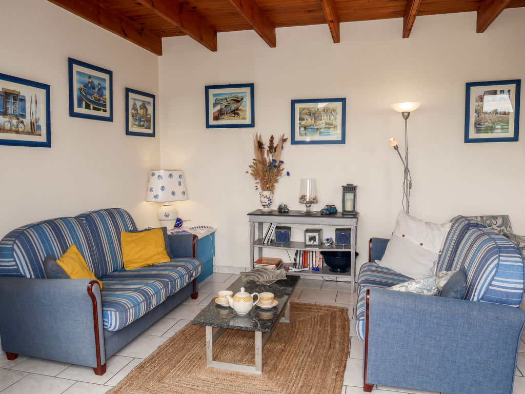 Einfamilienhaus "Pors Bae". Im Ortsteil Kermalero, 1.5 km vom Zentrum von Primelin, 7 km vom Zentrum von Audierne, 200 m vom Meer. Zur Alleinbenutzung: Grundstück 300 m2 (eingezäunt) mit Rasen, Parkplatz (für 2 Autos) auf dem Grundstück. Supermarkt 600 m, Restaurant 1 km, Sandstrand "Plage du Loc'h" 500 m, Kieselstrand 200 m. Sporthafen 7 km, Surfschule 6 km, Segelschule 7 km. Nahe gelegene Sehenswürdigkeiten: Pointe du Raz 7 km, Baie des trépassés 6 km, Audierne, Douarnenez. Wandergebiete: Cap Sizun.