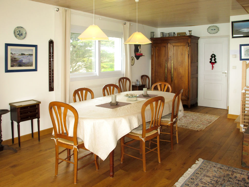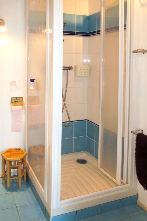7-Zimmer-Haus, 3 Etagen, ca. 160 m². Eingang in die 1. Etage (zum Hang ebenerdig): Wohnraum mit Sitzgruppe, Essplatz, offene Küche (3 Induktionsfelder, Backofen, Mikrowelle, Geschirrspüler, Kühlschrank, kleiner Gefrierschrank, Kaffeemaschine, Wasserkocher, Toaster), jeweils große Glasschiebetüren zur Terrasse und ins Freie. Sep.WC. Vom Wohnraum Treppe in die 2. Etage (Dachschräge): Weiterer Wohnraum mit Sitzgruppe. Schlafzimmer mit Ausziehbett. Einzelzimmer. Zweibettzimmer. Bad. Sep.WC. Vom Wohnraum in der 1. Etage Treppe ins Erdgeschoss (auch separat von außen zugänglich): 2 Zweibettzimmer. Dusche/WC. Inserat einer Privatperson nach Artikel 155, IV, CGI.