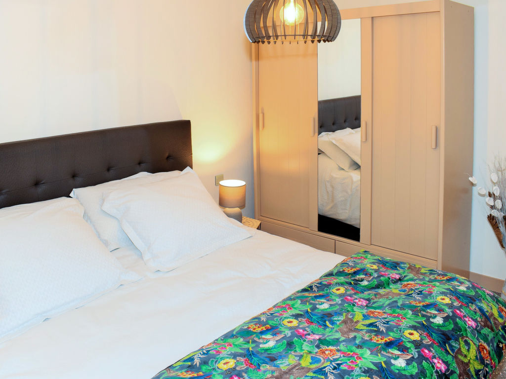 3-Zimmer-Haus, ca. 69 m². Wohnraum mit Sitzgruppe am großen Kamin (Holz inklusive), Essplatz, durch Theke abgeteilte Küche (3 Flammen, 1 Platte, Backofen, Mikrowelle, Geschirrspüler, Kühl-/Gefrierkombination, Kaffeemaschine), Terrassenausgang. Schlafzimmer mit franz. Bett (1,60 m breit), Terrassenausgang. Zweibettzimmer, Terrassenausgang. Bad. Sep.WC.