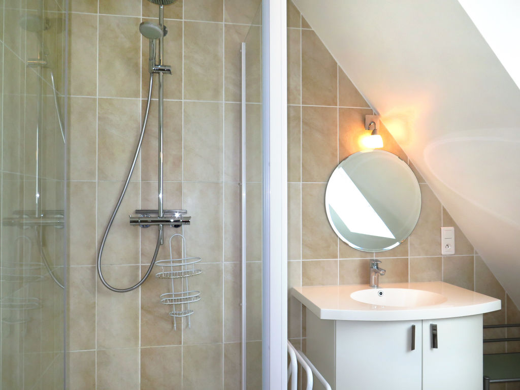 Zweifamilienhaus "La Note Bleue". 1 km vom Zentrum von Cancale, 18 km vom Zentrum von Saint Malo, in einem Wohnquartier, 300 m vom Meer, in einer Sackgasse. Zur Mitbenutzung: Grundstück 1'000 m2 (eingezäunt) mit Rasen und Bäumen, Parkplatz auf dem Grundstück. Lebensmittelgeschäft 1 km, Supermarkt 2 km, Restaurant 2.5 km, Sandstrand 2.5 km. Jacht-Hafen 1.5 km. Bitte beachten: Der Besitzer wohnt im selben Haus.