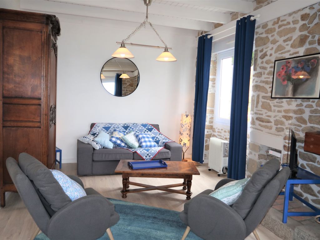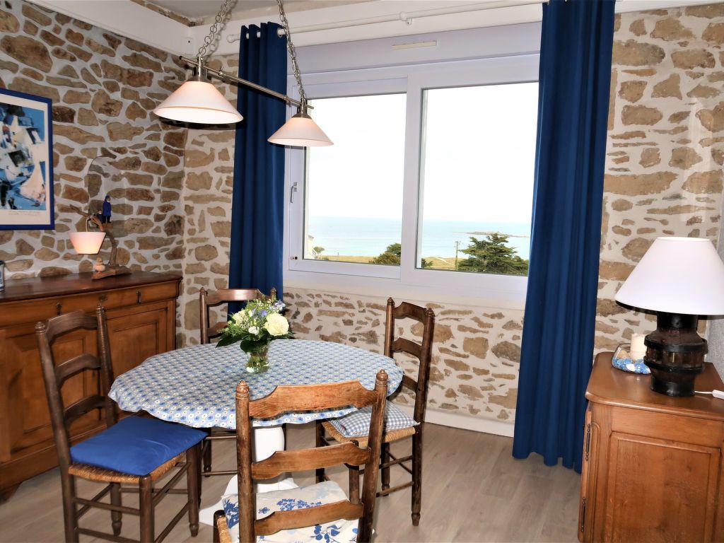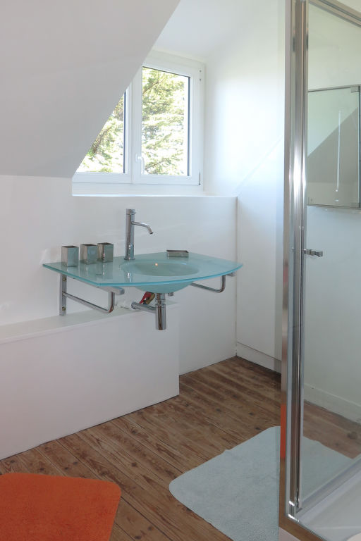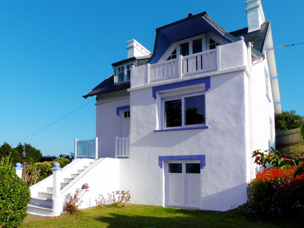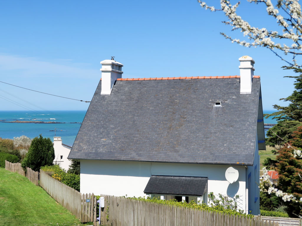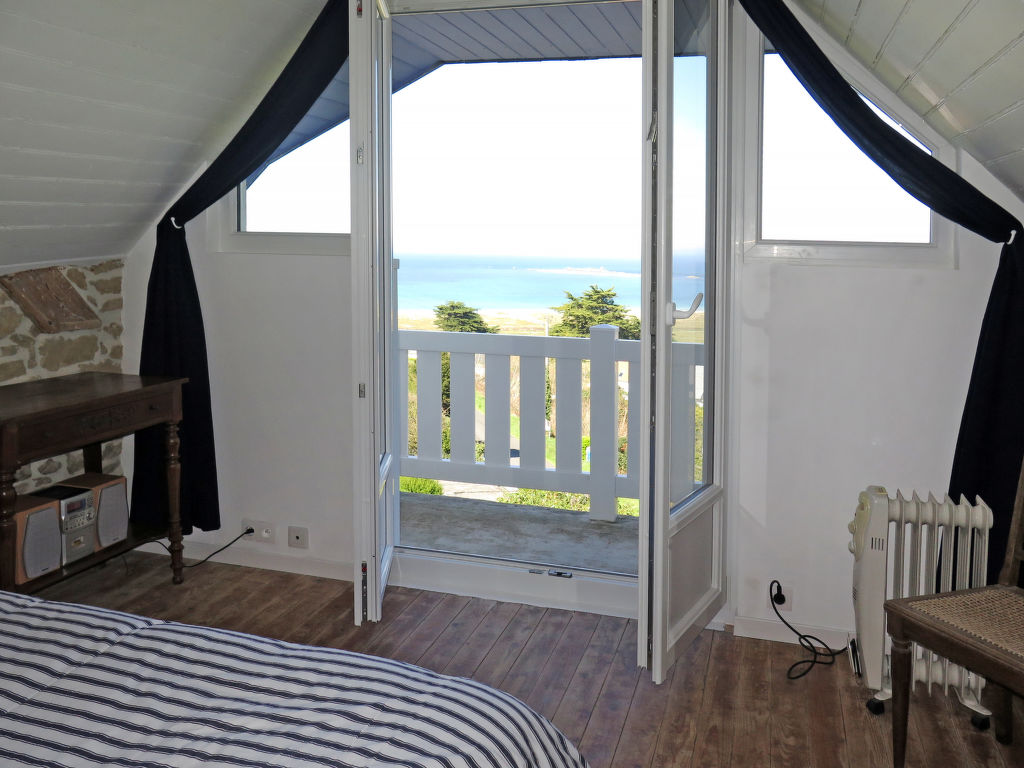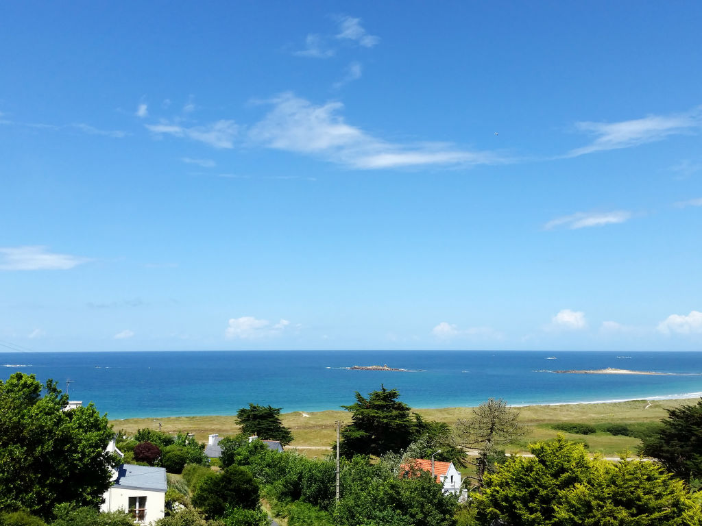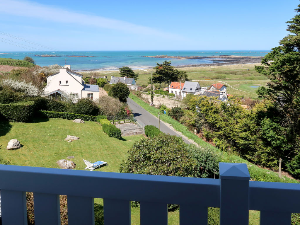 Das Ferienhaus mit herrlichem Meerblick steht im Ortsteil Le Vougot in Hanglage , ca. 300 m vom gleichnamigen Sandstrand. Ortsmitte Plouguerneau und Supermarkt 5 km. Guissény 5 km. Reiten 1,5 km. Segelschule am Sandstrand 'Le Curnic' 3 km. Zum Haus gehört ein ca. 1000 m² großer, teils von Hecke und Holzpalisaden umgebener Garten. Geschützter Freisitz in Südausrichtung. Mobiliar, 2 Sonnenliegen, gemauerter Grill. Abstellraum für Fahrräder und Surfbretter. Parkmöglichkeiten für 2 Pkw auf dem Grundstück. Meerblick vom Balkon und von allen Zimmern. Freundliche Einrichtung mit maritimer Dekoration. Teils sichtbare Natursteinmauern. Holzdielen- und Korkboden. Sat-TV (deutsche Programme). Internetzugang (WLAN, inklusive). Waschmaschine, Trockner, Bügeleisen/-brett. Elektroradiatoren.