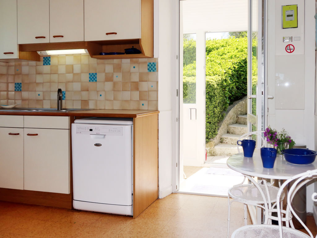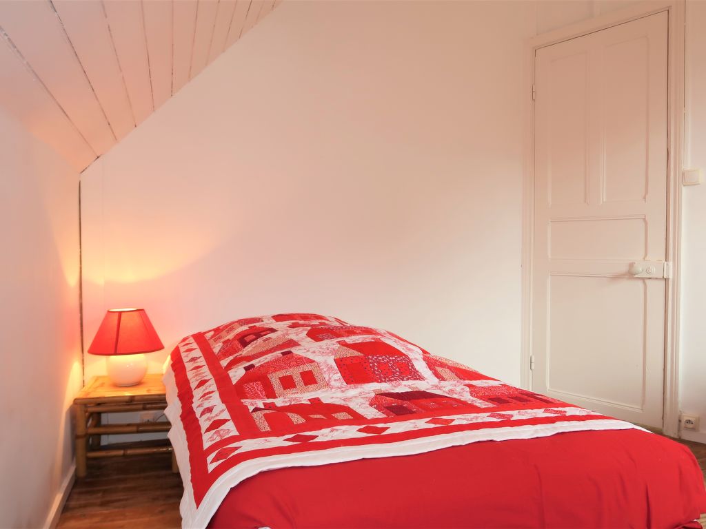 4-Zimmer-Haus, 3 Etagen, ca. 90 m². Erdgeschoss: Wohnraum mit Sitzgruppe, Holzofen und Essplatz (2 Bänke), Gartenausgang über Außentreppe. Küche (2 Induktionsfelder, Backofen, Mikrowelle, Geschirrspüler, Kühl-/Gefrierkombination, Kaffeemaschine, Wasserkocher, Toaster). Vom Wohnraum Treppe ins Obergeschoss (Dachschräge): 2 Schlafzimmer, jeweils mit franz. Bett (1,60 m breit), eines davon mit Balkonausgang. Schlafzimmer mit Einzel- und Ausziehbett. Dusche/WC. Untergeschoss: Sep.WC. Flexibilität bei der Bettenaufteilung: Es stehen mehr Schlafmöglichkeiten zur Verfügung als die maximal zugelassene Personenzahl, diese darf dennoch nicht überschritten werden. Inserat einer Privatperson nach Artikel 155, IV, CGI.