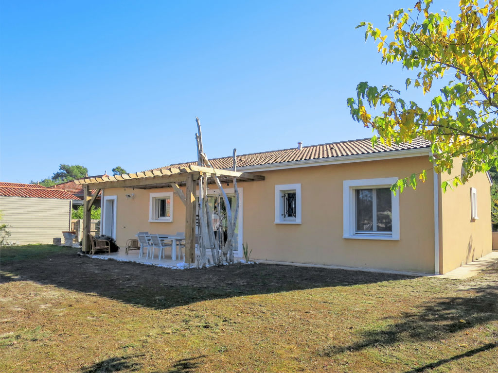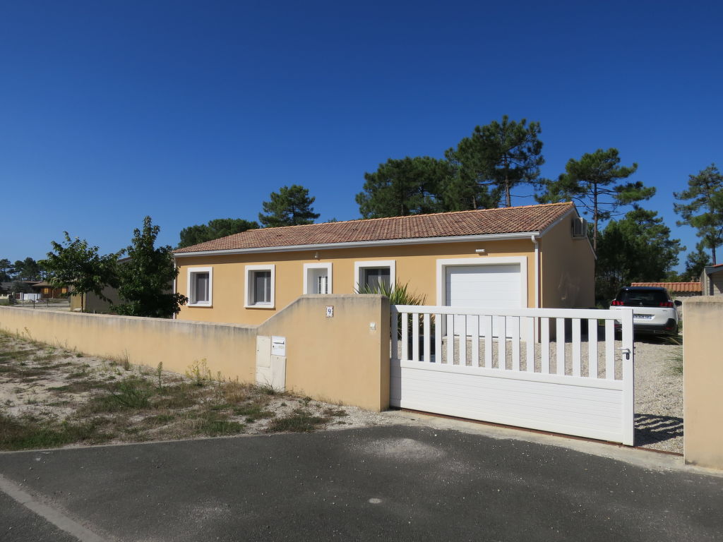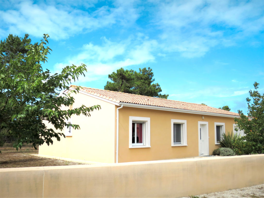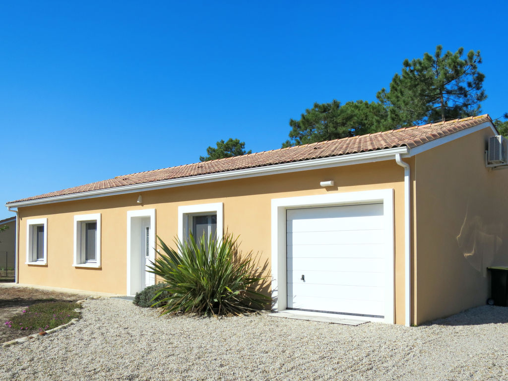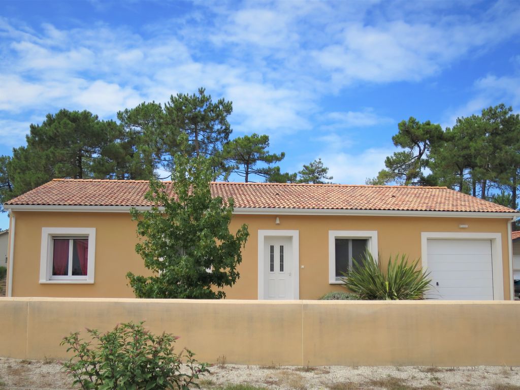 Einfamilienhaus "Les Ormes", Baujahr 2012. 1.5 km vom Zentrum von Montalivet, 21 km vom Zentrum von Lesparre, 85 km vom Zentrum von Bordeaux, in einem Wohnquartier, 1.5 km vom Meer. Zur Alleinbenutzung: naturbelassenes Grundstück 800 m2 (eingezäunt) mit Bäumen. Pergola, Parkplatz (für 2 Autos) beim Haus auf dem Grundstück. Supermarkt 1.5 km, Sandstrand "Montalivet" 1.5 km.