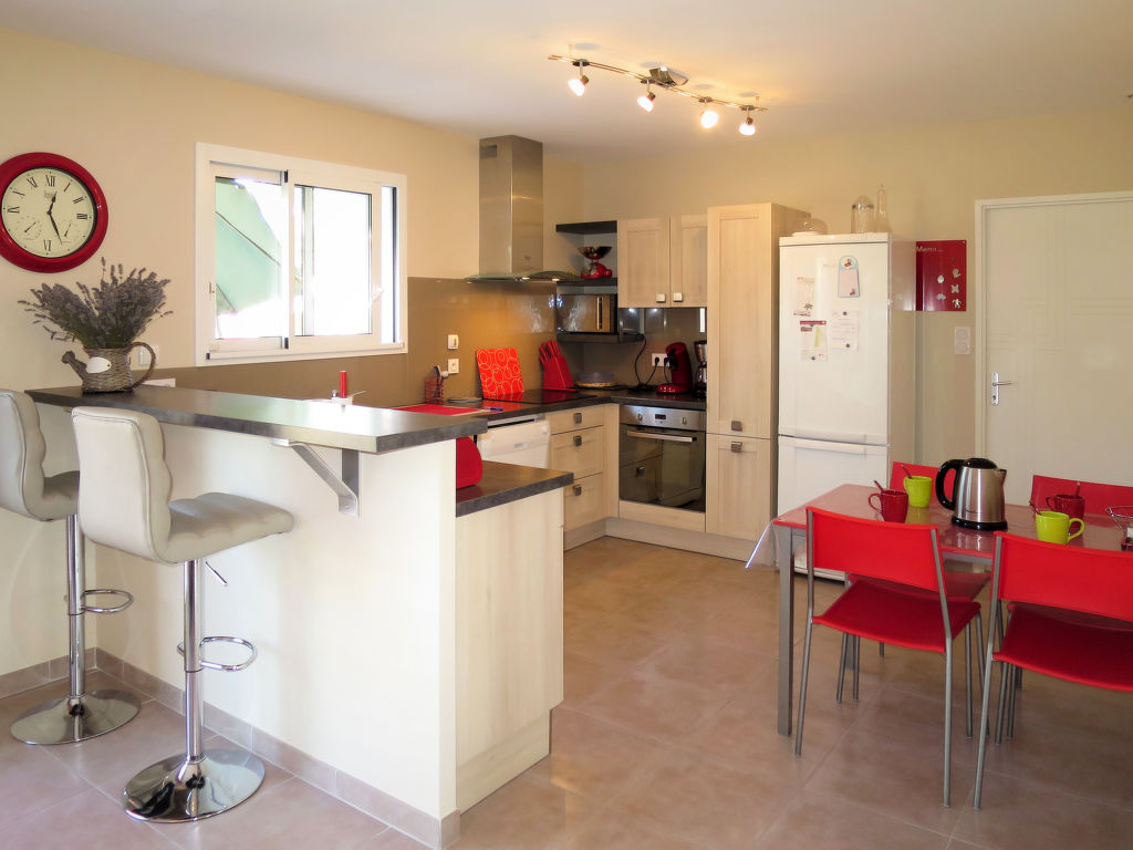 "Les Ormes (MVT225)", 4-Zimmer-Haus 110 m2. Hell, komfortabel eingerichtet: Wohn-/Esszimmer mit Esstisch und Sat-TV (Flachbildschirm), Radio, CD und DVD. Ausgang zur Terrasse. 2 Zimmer, jedes Zimmer mit 1 franz. Bett (140 cm, Länge 190 cm). 1 Zimmer mit 1 x 1 Etagenbetten (90 cm, Länge 190 cm), 1 franz. Bett (140 cm, Länge 190 cm). Offene Küche (Backofen, Geschirrspüler, 3 Induktionskochplatten, Toaster, Wasserkocher, Mikrowelle, Tiefkühler, elektrische Kaffeemaschine, Kapseln für die Kaffeemaschine (Senséo) extra) mit Esstisch und Bar. Dusche, sep. WC, Doppelwaschbecken. E-Heizung, Klimaanlage. Terrasse. Terrassenmöbel, Gartengrill, Liegestühle (6), Abstellkammer. Zur Verfügung: Waschmaschine, Wäschetrockner, Bügeleisen, Kinderhochstuhl, Babybett. Internet (Wireless LAN, gratis). Bitte beachten: Nichtraucher-Unterkunft. Maximal 1 Haustier/Hund erlaubt. Rauchmelder. Inserat einer Privatperson nach Artikel 155, IV, CGI.