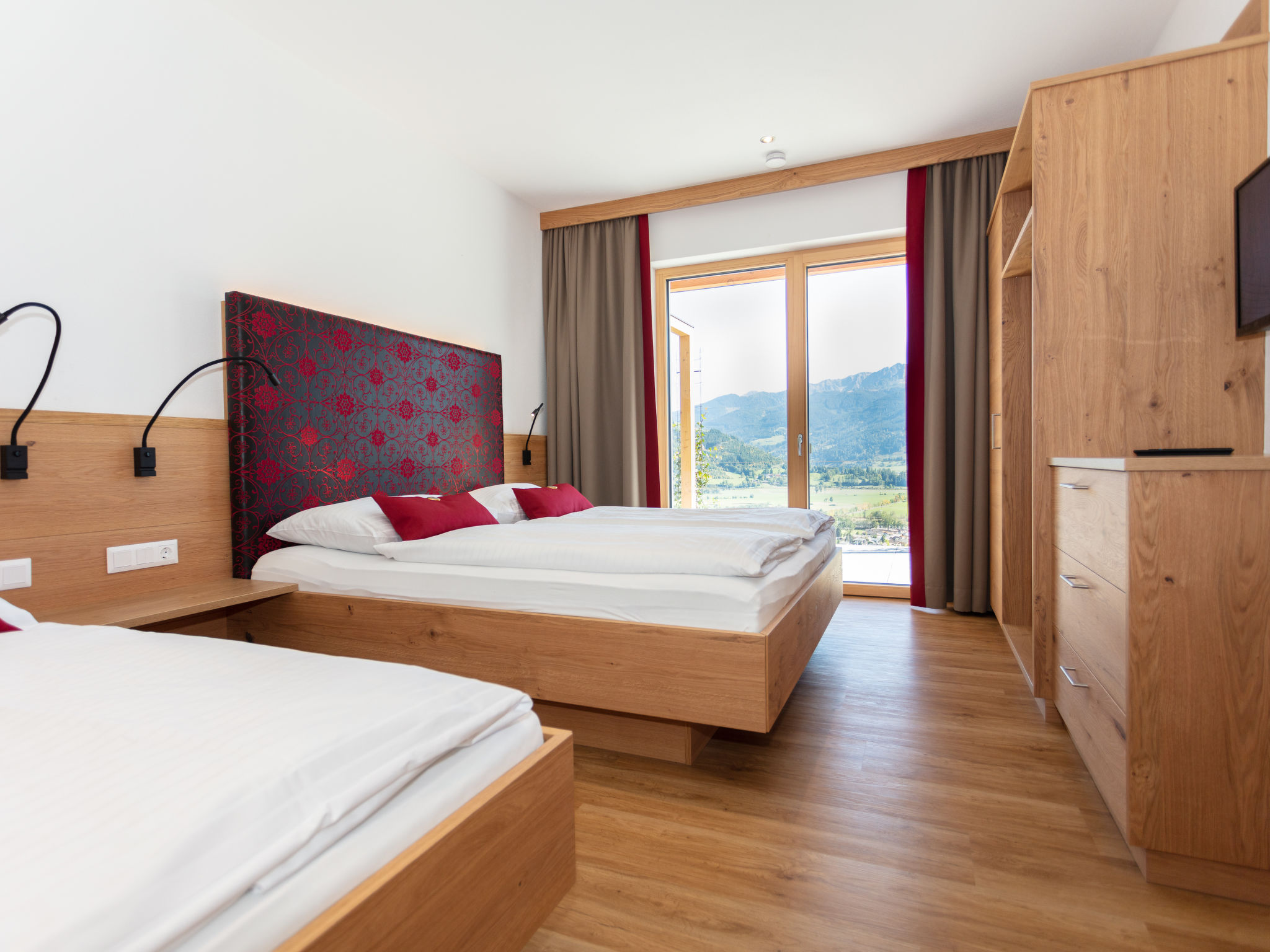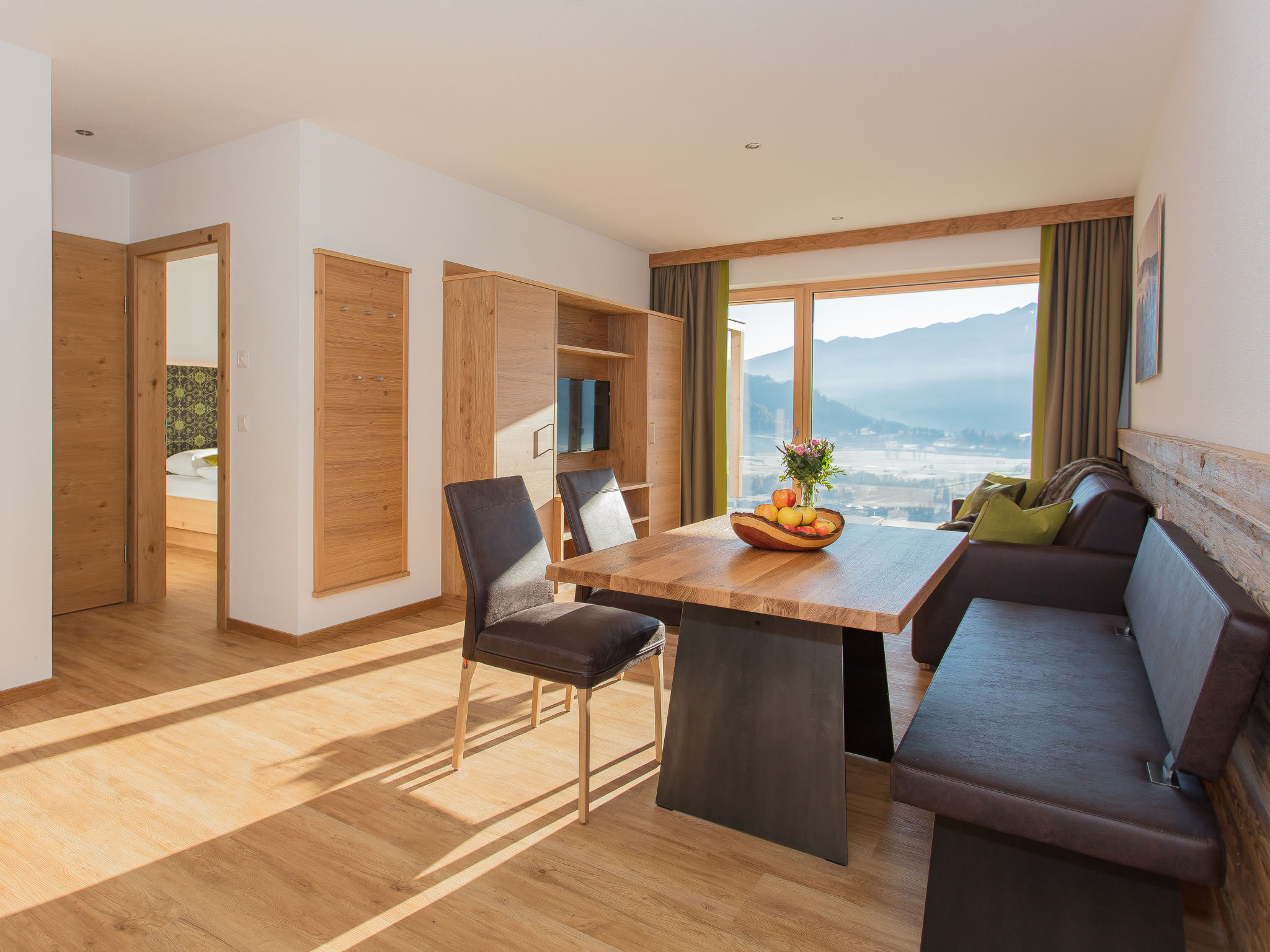 " Zeller See", 3-Zimmer-Wohnung 72 m2, im Erdgeschoss. Komfortabel und geschmackvoll eingerichtet: Eingang. 1 Doppelzimmer mit Dusche/WC und Kabel-TV (Flachbildschirm). Ausgang zum Balkon. 1 Zimmer mit 1 Bett (90 cm, Länge 190 cm), 1 Doppelbett (180 cm, Länge 200 cm), Dusche/WC und Sat-TV (Flachbildschirm). Ausgang zum Balkon. Grosses Wohn-/Esszimmer mit 1 Doppeldiwanbett, Esstisch und Sat-TV (Flachbildschirm). Ausgang zum Balkon. Offene Küche (Backofen, Geschirrspüler, 2 Glaskeramikherd Platten, Toaster, Wasserkocher, Mikrowelle, Tiefkühler, elektrische Kaffeemaschine). Grosser Balkon 19 m2. Terrassenmöbel. Sehr schöne Panoramasicht auf die Berge und die Landschaft. Zur Verfügung: Sauna, Haartrockner. Internet (Wireless LAN, gratis). Parkplatz (überdacht). Bitte beachten: geeignet für Familien. Nichtraucher-Unterkunft. 50628-001444-2020