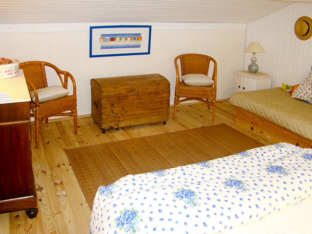 "Septhommes (DOU300)", 2-Zimmer-Haus 85 m2 auf 2 Stockwerken. Objekt geeignet für 2 Erwachsene + 2 Kinder. Zweckmässig und gemütlich eingerichtet: Wohn-/Esszimmer mit Esstisch und TV (Flachbildschirm). Ausgang zur Terrasse. Offene Küche (4 Kochplatten, Backofen, Toaster, Wasserkocher, Mikrowelle, elektrische Kaffeemaschine). Dusche/WC. Obergeschoss: abgeschrägte Galerie mit 2 Betten (90 cm, Länge 190 cm). 1 abgeschrägtes Zimmer mit 1 franz. Bett (140 cm, Länge 190 cm). Terrasse überdacht. Terrassenmöbel, Liegestühle (4). Zur Verfügung: Waschmaschine, Bügeleisen, Kinderhochstuhl, Babybett. Bitte beachten: Nichtraucher-Haus. Rauchmelder.