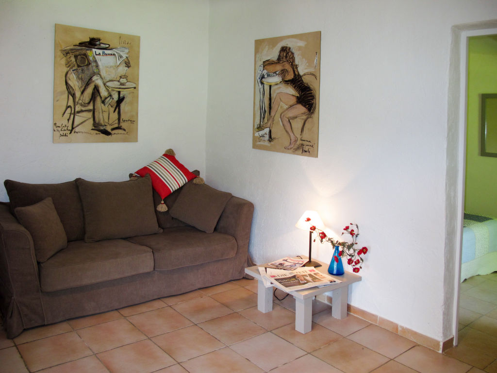 "Mas Alouette (SNC100)", 2-Zimmer-Doppelhaushälfte 44 m2. Objekt geeignet für 2 Erwachsene + 2 Kinder. Gemütlich eingerichtet: Wohn-/Schlafzimmer mit Panoramafenster mit 1 Doppeldiwanbett (140 cm), Esstisch und Sat-TV. Ausgang zur Terrasse. 1 Zimmer mit 2 Betten (90 cm, Länge 200 cm). Kochnische (4 Flammen, Toaster, Wasserkocher, Mikrowelle, elektrische Kaffeemaschine). Dusche/WC. G-Heizung. Terrasse, Laube. Terrassenmöbel. Sicht auf den Garten und die Landschaft. Zur Verfügung: Waschmaschine. Internet (Wireless LAN, gratis). Maximal 1 Haustier/Hund erlaubt. WLAN nur auf der Terrasse. Inserat einer Privatperson nach Artikel 155, IV, CGI.