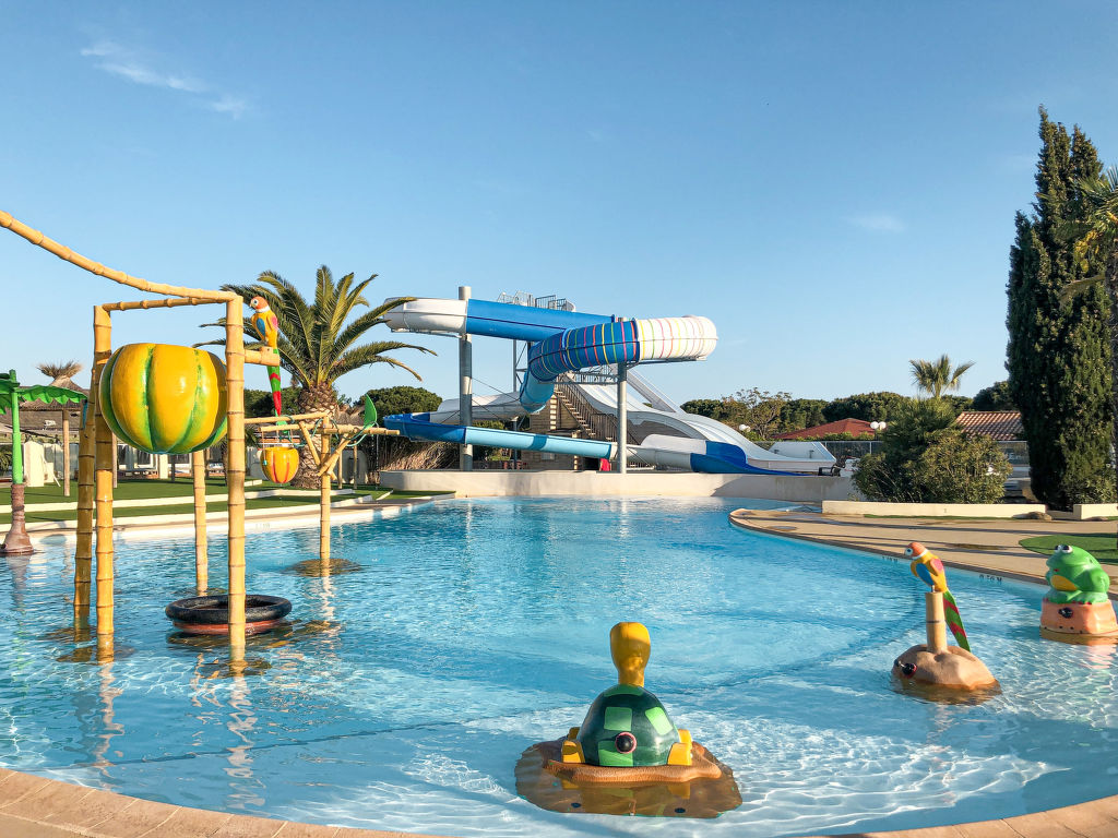 Die weitläufige, familienfreundliche Ferienanlage DOMAINE DE LA DRAGONNIERE liegt im grünen Hinterland, zwischen Vias (6 km) und Portiragnes (2 km). Zum Strand und nach Portiragnes-Plage 6 km. Ca. 200 m entfernt verläuft die Straße von Béziers nach Agde. Der kleine Regionalflughafen von Béziers ist 1,4 km entfernt. Die Anlage: Die knapp 780 Mobilhomes und Chalets verteilen sich auf einem 30 ha großen, durch Wege und Grünflächen aufgelockerten Gelände. Freizeiteinrichtungen: Im zentralen Bereich zur Saison 2017 neu angelegte, ca. 3.000 m² große Lagune (1,30 m tief, natürliche Wasseraufbereitung) mit 6.000 m² feinsandigem Strand, Sonnenschirmen und Bar 'Le Havana'. Zur Saison 2021 neu gebautes Piratenschiff in der Lagune. Große in der gesamten Saison geöffneten Badelandschaft mit 2 Pools (200 m², 0,80-2,60 m tief und 350 m², 0,40-2,50 m tief), mit Aquabikes, Kinderbecken (80 m², 30 cm tief), 4 Rutschen sowie 60 m² großes nicht beheiztes Becken (0,80-1,10 m tief). Hallenbad (geöffnet von ca. 12.06. – 12.09., ca. 100 m², 0,50-2 m tief, 28°C) mit Whirlpool. Von ca. 15.05.-15.09. steht eine weitere Badelandschaft mit Pool (410 m², 1,20-1,60 m tief), 2 Rutschen, Kinderbecken (410 m², 50-90 cm tief) mit Kleinkinderbecken (80 m²), Planschbecken (100 m², 8-12 cm tief, beschattet, überdacht) zur Verfügung. Hier auch Restaurant 'La Paillotte' mit Sandstrand (geöffnet Juli/August, Liegestuhlverleih, für VSM 104/106/120-124 hier jeweils 2 Liegestühle im Mietpreis enthalten). Wellnessbereich mit Dampfbad, Sauna (gegen Bezahlung) sowie Massage (gegen Bezahlung, auf Anfrage). Außerdem im Freien: Multisportfeld (3x Beach-Fußball, 2x Beach-Volleyball, Handball, Basketball), 2 Padel-Tennisplätze, Crossfitgeräte auf ca. 500 m² großem Gelände, Bouleplatz. Kinderspielplatz (teilüberdacht). Miniclub (von 6-12 Jahre, deutschsprachiges Personal), Kinderbetreuung (von 1-6 Jahre, halbtags, gegen Bezahlung), Babyclub (von 2-5 Jahren, im Beisein eines Elternteils). Im Juli/August Jugendclub (von 13-17 Jahren) sowie täglich Animationen/Abendveranstaltungen. Serviceeinrichtungen: Täglich besetzte Rezeption mit deutschsprachigem Personal. Bäckerei, Grill-Imbiss (von ca. 16.06.-15.09.), kleiner Supermarkt, Restaurant, Bar, kleine Snackbar und vietnamesische Gerichte zum Mitnehmen. Waschsalon. Im Juli/August Arzt und Friseur. Transfer zum Strand von Portiragnes-Plage (gegen Bezahlung). Unterbringung: Alle Mobilhomes und Chalets haben jeweils einen eigenen Grundstücksanteil sowie 1 Pkw-Stellplatz am Mietobjekt oder in der Nähe. Weitere Parkmöglichkeiten auf zentralem Parkplatz vor der Anlage (€ 6,90/Tag), hier 2. Pkw-Stellplatz für VSM 104-106/120-123 inklusive. Bei VSM 104/106 und den zur Saison 2017 neu installierten VSM 120-123 handelt es sich um hochwertigere, teilweise mit Holz verkleidete Mobilhomes. VSM 104 besteht aus 2 Mobilhomes, die über die Terrasse miteinander verbunden sind. Alle Mobilhomes und Chalets haben Terrasse mit Mobiliar und 2 Liegestühlen (VSM 105: 4 Liegestühle), VSM 104/105/106/120-124 zusätzlich mit Plancha und Hängematte. VSM 104/106 sind gut, modern und ansprechend eingerichtet, VSM 120-124 ansprechend, VSM 107/108 freundlich, VSM 100-102 zweckmäßig und VSM 105/130 feriengerecht. Jeweils Kochnische mit 4 Flammen, Mikrowelle, Geschirrspüler, Kühl-/Gefrierkombination und Kaffeemaschine, in VSM 104-106/120-124 zusätzlich Kaffeekapselmaschine. TV, in VSM 102/105/108 Sat-TV (deutsche Programme). Internetzugang (WLAN, gegen Bezahlung, bei VSM 104/106/120-124 gesamte Saison inklusive). In VSM 120-122 Klimaanlage mit Kühl-/Heizfunktion, in VSM 100/101/104/106/107/108/123/124 nur im Wohnraum Klimaanlage mit Kühl-/Heizfunktion, in VSM 102/105/130 Elektroheizung (in VSM105 nur im Wohnraum Klimaanlage). Die Einzel- oder Etagenbetten sind jeweils 0,80 m breit. Hinweis: Bei Buchung vor dem 01.11.2020 für Saison 2021 gilt der Preis von Saison 2020. Bei Buchung von VSM 130 erfolgt die Unterbringung je nach Verfügbarkeit in einem der Typen VSM 100-102 oder 107.