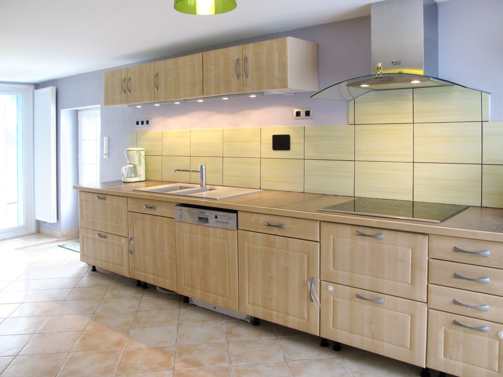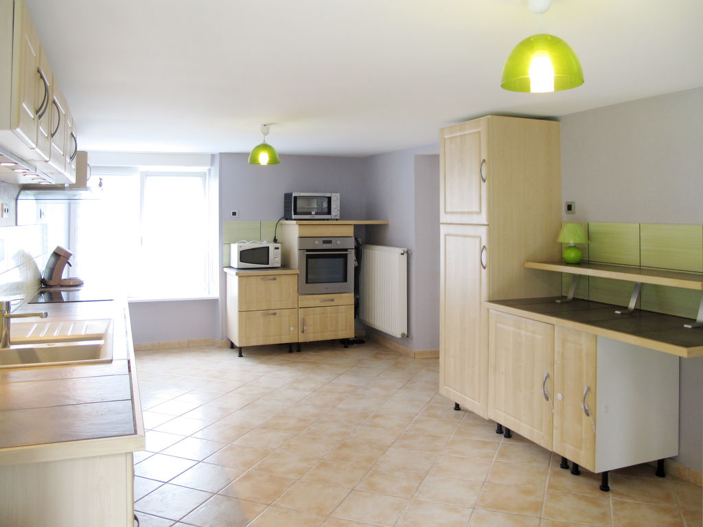 6-Zimmer-Haus, 2 Etagen, ca. 140 m². Erdgeschoss: Kleiner Wohnraum mit Sitzcouch und Sessel, Terrassenausgang. Esszimmer mit Kamin (nur Dekoration) und Terrassenausgang. Große Küche (4 Ceranfelder, Backofen, Mikrowelle, Geschirrspüler, Kühlschrank, Gefrierschrank, Kaffeemaschine, Wasserkocher, Toaster), Terrassenausgang. Dusche/WC. Sep.WC. Vom Wohnraum Wendeltreppe ins Obergeschoss: 3 Zweibettzimmer. Schlafzimmer mit franz. Bett und darüber Hochbett. Bad/WC. Inserat einer Privatperson nach Artikel 155, IV, CGI.