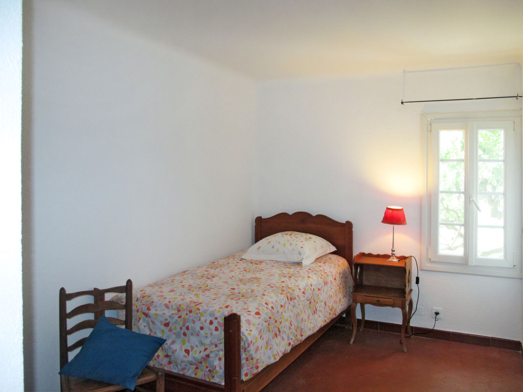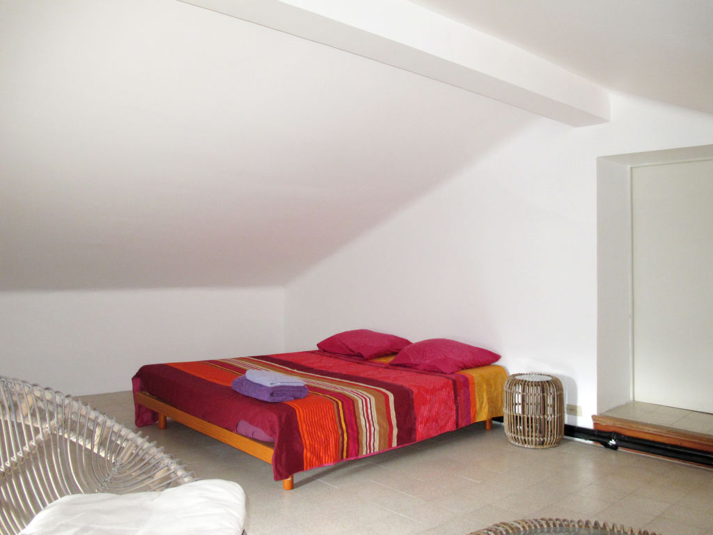 6½-Zimmer-Haus, 3 Etagen, ca. 200 m². Erdgeschoss: Wohnraum mit Sitzcouch und 2 Sessel, Ausgang zur Veranda. Esszimmer mit Essplatz und Holzofen. Küche (5 Flammen, Backofen, Mikrowelle, Geschirrspüler, Kühl-/Gefrierkombination, Kaffeemaschine, Wasserkocher, Toaster) mit Essplatz für 4 Personen. Dusche. Sep.WC. Alle Zimmer mit Ausgang ins Freie. Vom Esszimmer Treppe in die 1. Etage: 2 Einzelzimmer. Schlafzimmer mit franz. Bett. Bad. Sep.WC. Vom Flur schmale, steile Treppe (ohne Geländer) ins Dachgeschoss (Dachschräge, eingeschränkte Stehhöhe): Schlafzimmer mit franz. Bett (1,60 m breit), Klimaanlage. Inserat einer Privatperson nach Artikel 155, IV, CGI.