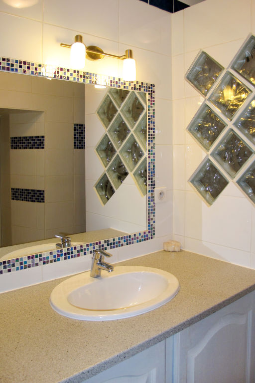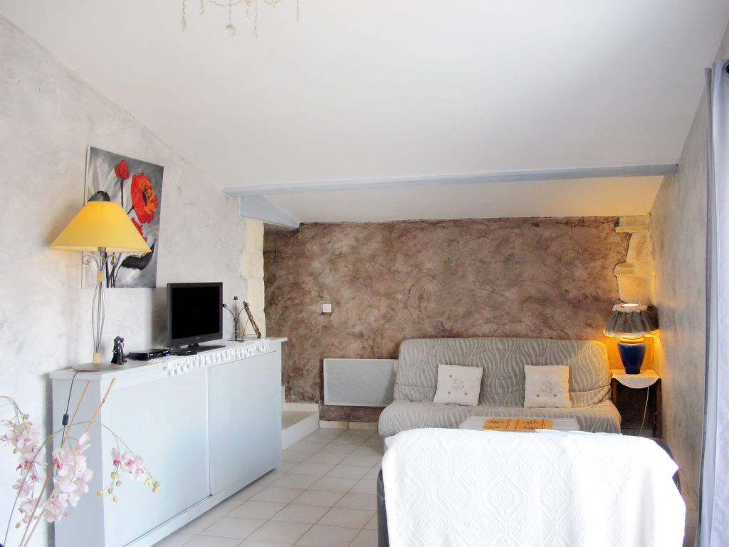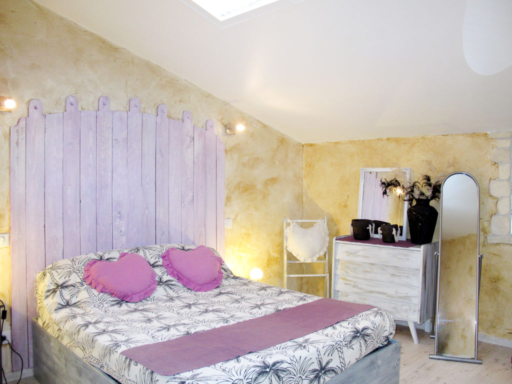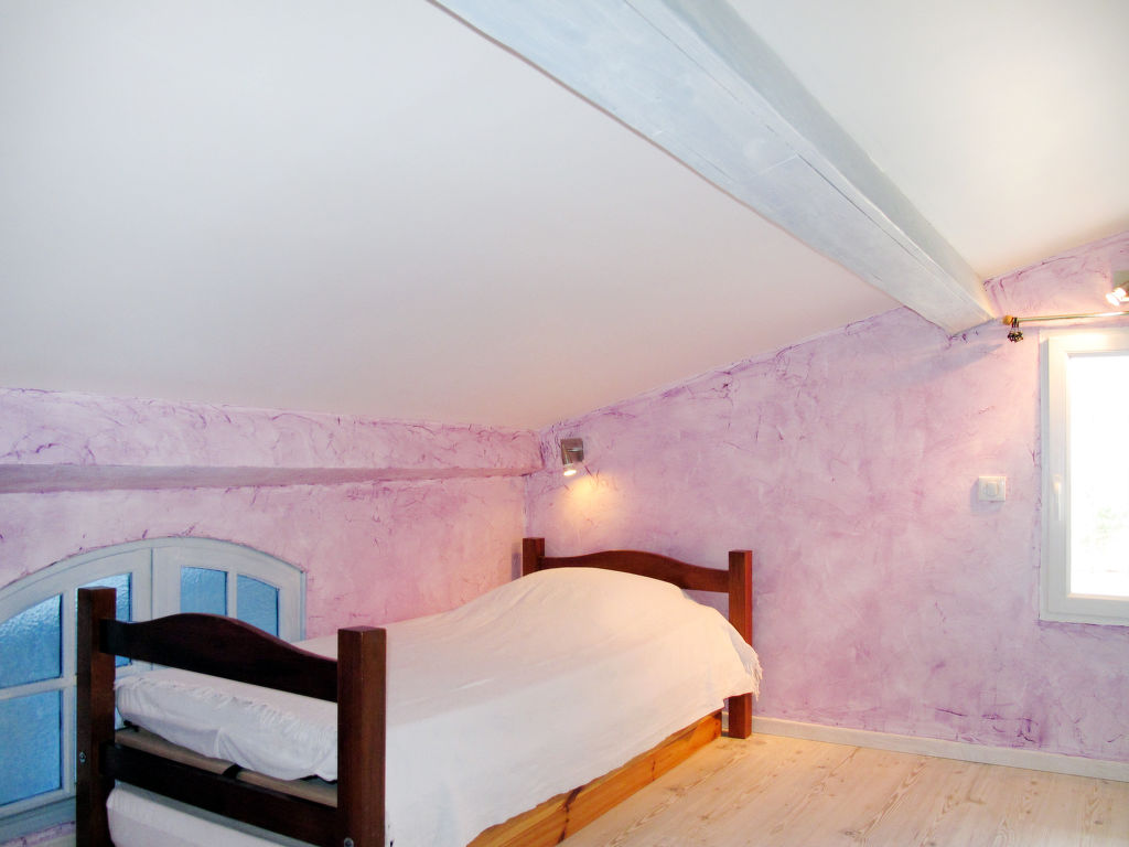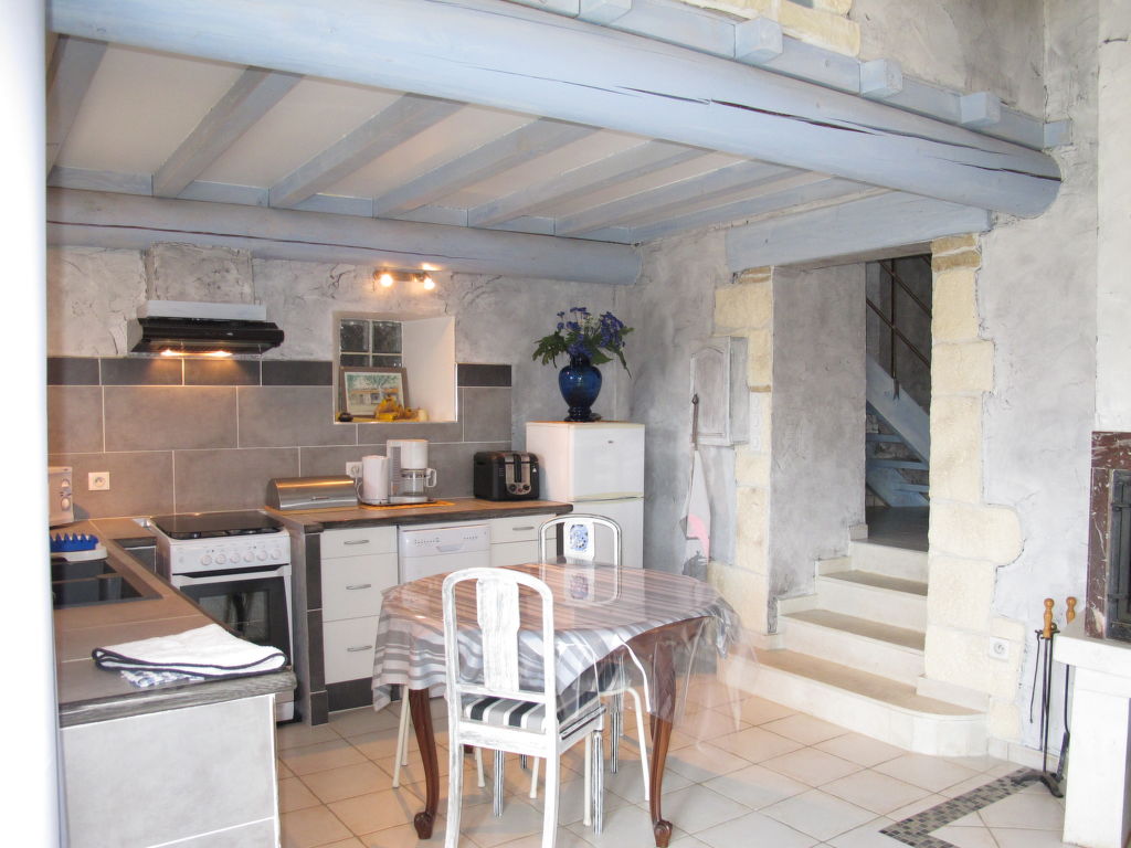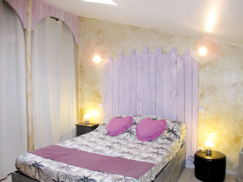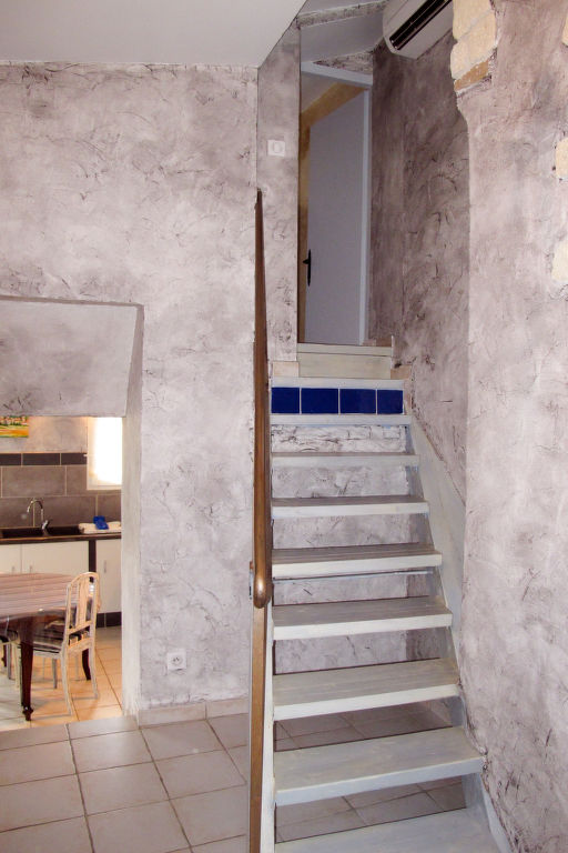 3-Zimmer-Hausteil, 2 Etagen, ca. 90 m². Zugang über Außentreppe (11 Stufen) ins Hochparterre: Wohn-/Schlafraum mit Bettcouch, Sitzcouch, Kamin (Einsatz), Essplatz, offene Küche (3 Flammen, 1 Platte, Backofen, Mikrowelle, Geschirrspüler, Kühl-/Gefrierkombination, Kaffeemaschine, Wasserkocher, Toaster), Terrassenausgang. Eine halbe Etage höher: Schlafzimmer (niedriger Türsturz) mit franz. Bett. Dusche/WC. Obergeschoss (Dachschräge, eingeschränkte Stehhöhe): Schlafzimmer mit Einzelbett und Ausziehbett. Flexibilität bei der Bettenaufteilung: Es stehen mehr Schlafmöglichkeiten zur Verfügung als die maximal zugelassene Personenzahl, diese darf dennoch nicht überschritten werden. Inserat einer Privatperson nach Artikel 155, IV, CGI.