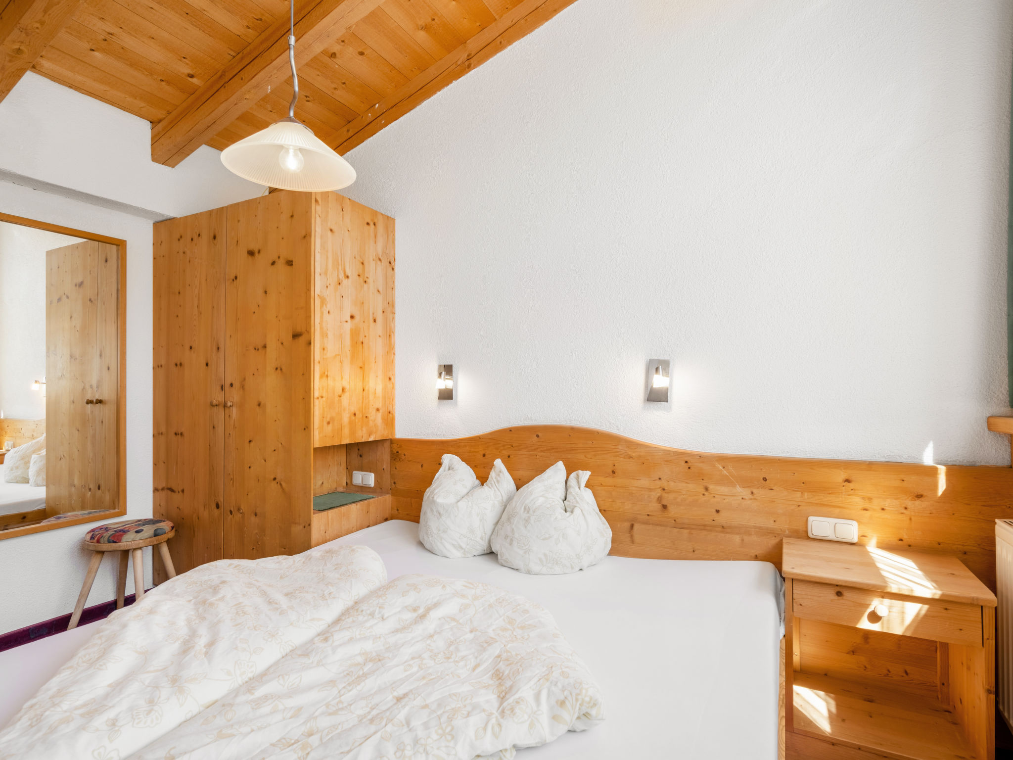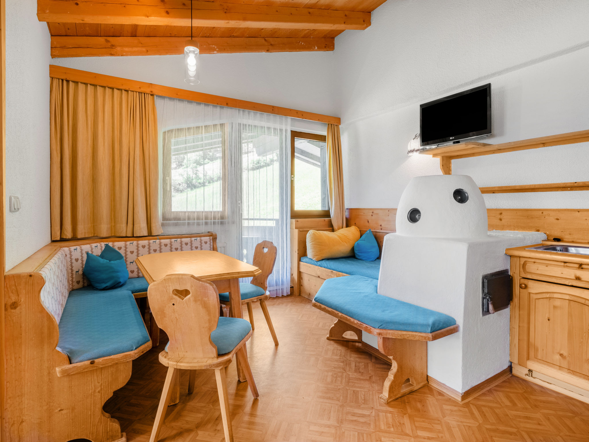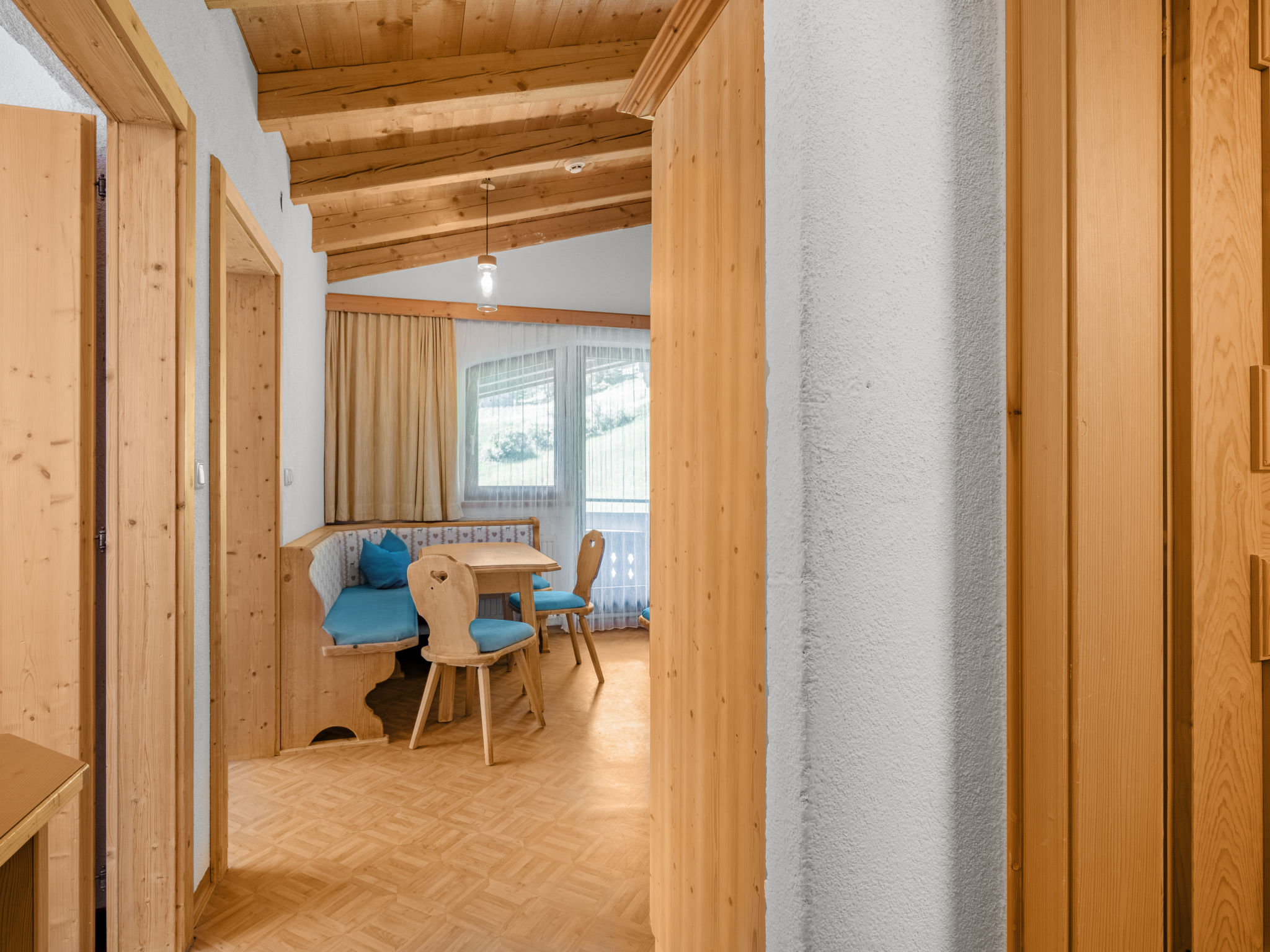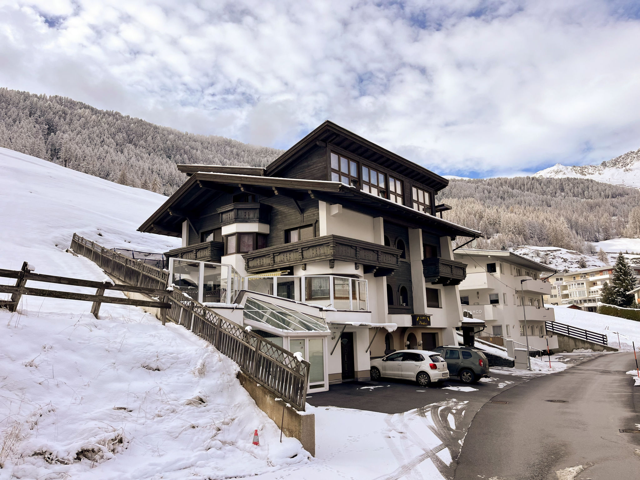 Haus NADINE steht in sonniger Panoramalage oberhalb von Sölden, im Ortsteil Innerwald. Gasthöfe und Café im Umkreis von ca. 100-300 m. Ortsmitte Sölden 2,5 km. Schrägaufzug Innerwald - Ortsmitte ca. 300 m. Supermarkt 1 km, weitere Geschäfte 2,5 km. Freizeit Arena mit Hallenbad 2,7 km. Zur Talstation der Gaislachkoglbahn 1,5 km. Parkmöglichkeit beim Haus, öffentlicher Parkplatz ca. 150 m. Im Haus kleine Sauna (nach Absprache nutzbar, € 6 pro Person, Mindestberechnung 3 Personen). Brötchenservice. Die Wohnungen SOE 401/405-408 haben Balkon. Die Wohnungen im Dachgeschoss (SOE 406-408) haben große Panoramafenster und rustikale Balkendecken. Die Wohnung SOE 409 liegt in einem Anbau. Jeweils angenehme, freundliche Einrichtung, Teppich- und Laminatböden, Sat-TV und Internetzugang (WLAN, € 10 pro Aufenthalt). Jeweils mit Öl-Zentralheizung, SOE 407 zusätzlich mit elektrisch beheiztem Kachelofen. Hinweis: Der Vermieter erlaubt im Zeitraum Anfang Mai bis Ende Oktober die Mitnahme eines Haustiers. In den übrigen Saisonzeiten ist die Mitnahme eines Haustiers nicht erlaubt. Winter-Infos: Die beschneite Skiabfahrt vom Gaislachkogl führt am Haus vorbei. Zur Talstation der Gaislachkoglbahn 1,5 km, zur Doppelsesselbahn, die zur Mittelstation der Gaislachkoglbahn führt, ca. 150 m. Kleiner Schlepplift und Übungshänge ca. 200 m. Skiraum mit Schuhtrockner.
