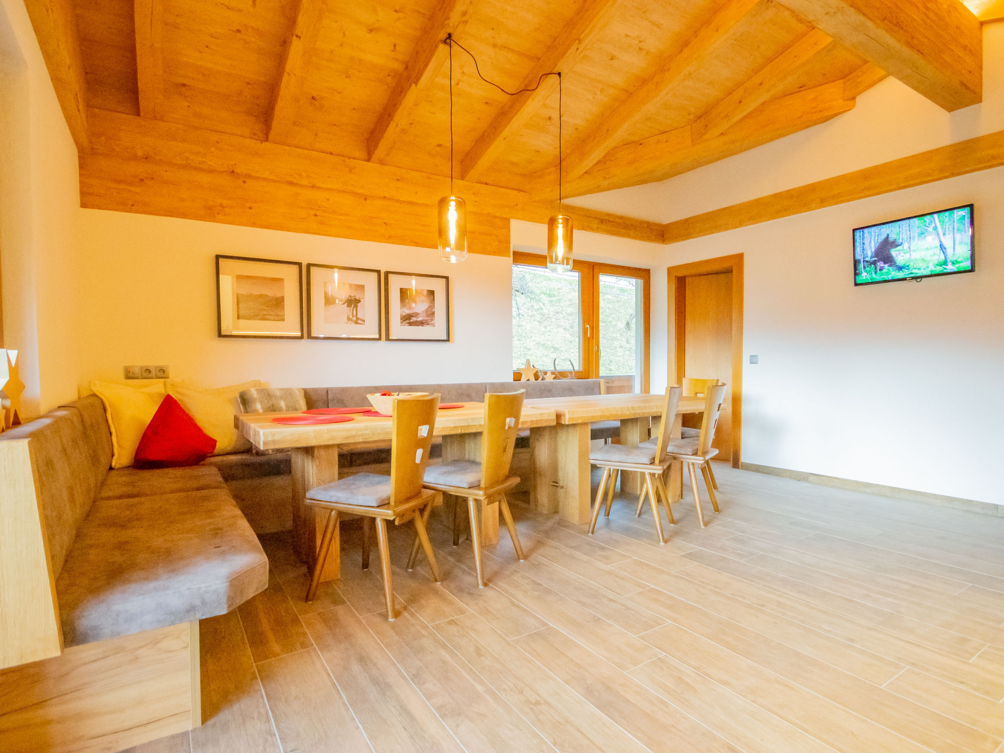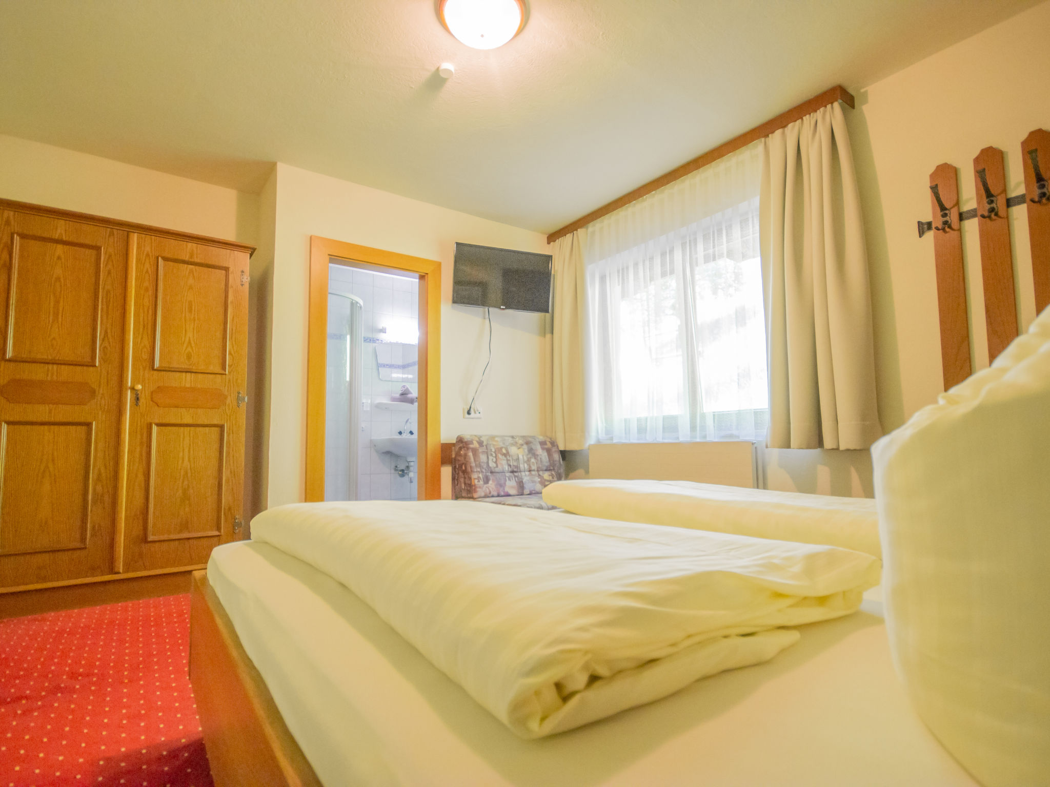 "Brandegg Top 3", 12-Zimmer-Wohnung auf 2 Stockwerken. Eingang. 4 Doppelzimmer, jedes Zimmer mit Dusche/WC und TV. Ausgang zum Balkon. 1 Zimmer mit 1 Bett, Dusche/WC und TV. Ausgang zum Balkon. Wohnküche (Backofen, Geschirrspüler, 4 Glaskeramikherd Platten, Mikrowelle, Tiefkühler, elektrische Kaffeemaschine) mit Essecke und TV (Flachbildschirm). Ausgang zum Balkon. Obergeschoss: 3 Doppelzimmer, jedes Zimmer mit Dusche/WC und TV. Ausgang zum Balkon. 1 Zimmer mit 2 Betten, 1 Doppelbett, Dusche/WC und TV. Ausgang zum Balkon. 1 Zimmer mit 1 Bett, Dusche/WC und TV. Wohnküche (Backofen, Geschirrspüler, 4 Glaskeramikherd Platten, Mikrowelle, Tiefkühler, elektrische Kaffeemaschine) mit TV (Flachbildschirm). Ausgang zum Balkon.