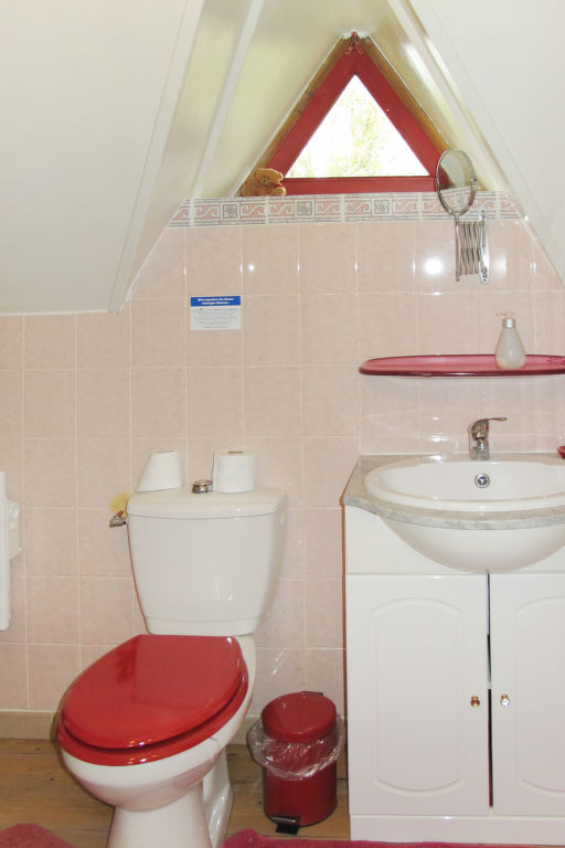 5-Zimmer-Haus, 2 Etagen, ca. 140 m². Über Außentreppe in die 1. Etage: Wohnraum mit Sitzgruppe, Kamin (nur Dekoration) und Essplatz, Balkonausgang. Küche (4 Ceranfelder, Backofen, Mikrowelle, Geschirrspüler, Kühl-/Gefrierkombination, Kaffeemaschine, Wasserkocher, Toaster) mit Essplatz für 6 Personen. Schlafzimmer mit franz. Bett. Schlafzimmer mit Einzelbett (1,20 m breit). Dusche. Sep.WC. Obergeschoss (Dachschräge): Schlafzimmer mit franz. Bett. Schlafzimmer mit franz. Bett und 2 Einzelbetten. Dusche/WC. Flexibilität bei der Bettenaufteilung: Es stehen mehr Schlafmöglichkeiten zur Verfügung als die maximal zugelassene Personenzahl, diese darf dennoch nicht überschritten werden. Inserat einer Privatperson nach Artikel 155, IV, CGI.