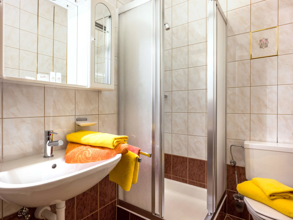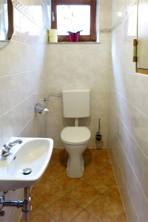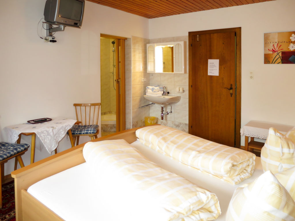 Das Gästehaus GISELA steht am Ortsrand von Bruck, ca. 500 m von der Ortsmitte entfernt. Zur Spieljochbahn in Fügen 9 km. 5 Parkplätze auf dem Grundstück. Sauna für 4 Personen (inklusive), Dusche/WC. Partyraum mit Bartheke, großer Eckbank und 2 Tischen (nur von außen zugänglich). Brötchenservice. Der Besitzer bewohnt eine der beiden Wohnungen im Hochparterre. In Hochparterre und 1. Etage jeweils umlaufender Balkon mit Mobiliar. Feriengerechte Einrichtung und gute Ausstattung. FGZ 360 mit Teppich-, Linoleum- und Laminatböden, in FGZ 361 Linoleumböden. Sat-TV, Radio. Internetzugang (WLAN, inklusive). Heizung. Hinweis: Rauchen ist im gesamten Haus nicht gestattet. Winter-Infos: Zur Spieljochbahn in Fügen 9 km. Skibushaltestelle ca. 200 m. Eine Langlaufloipe führt am Haus vorbei. Ski- und Schuhraum mit Skischuhtrockner.