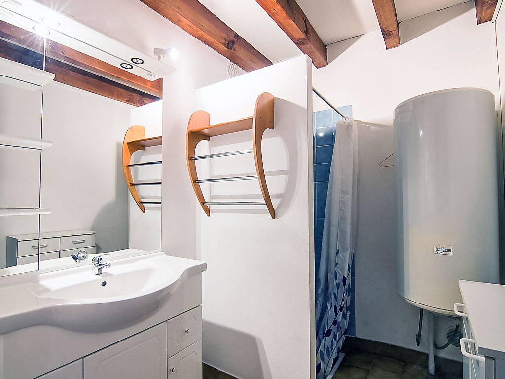 3-Zimmer-Reihenhaus 50 m2 auf 2 Stockwerken. Zweckmässig und rustikal eingerichtet: Wohn-/Esszimmer mit TV und Internationale TV-Sender (Flachbildschirm). Ausgang zur Terrasse. Kochnische (4 Kochplatten, Mini-Backofen, Mikrowelle). Dusche, sep. WC. Obergeschoss: 1 abgeschrägtes Zimmer mit 2 Betten (90 cm, Länge 190 cm). 1 abgeschrägtes Zimmer mit 1 Bett (90 cm, Länge 190 cm), 1 franz. Bett (1 x 140 cm, Länge 190 cm). Terrasse. Terrassenmöbel, Liegestühle (1). Zur Verfügung: Internet (Wireless LAN, gratis). Bitte beachten: Maximal 1 Haustier/Hund erlaubt. Rauchmelder. Inserat einer Privatperson nach Artikel 155, IV, CGI.