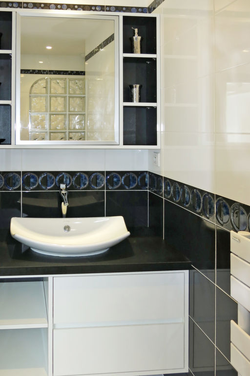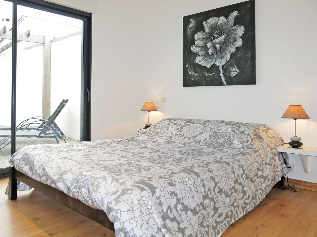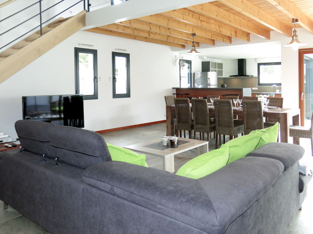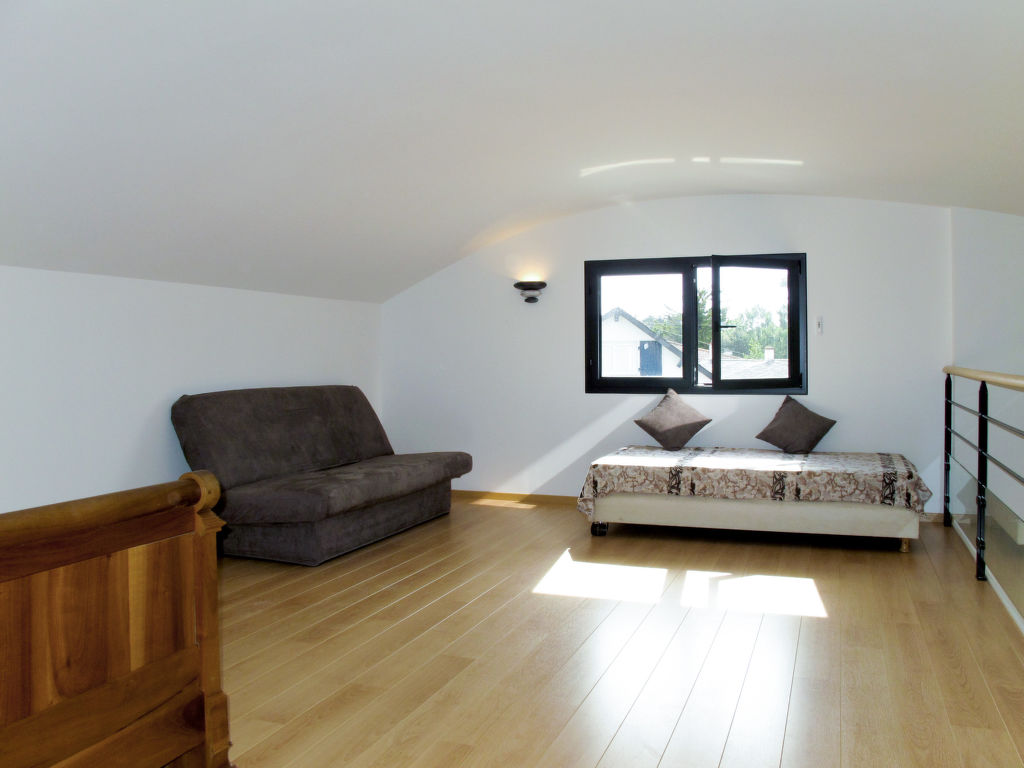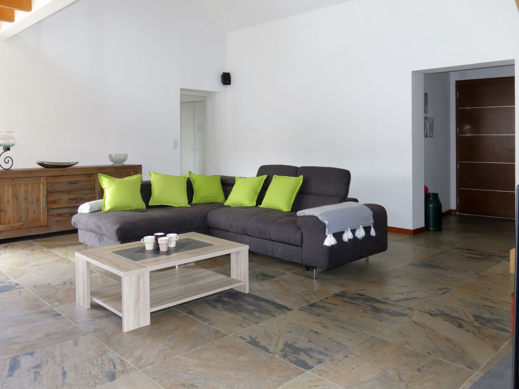4½-Zimmer-Haus, 2 Etagen, ca. 150 m². Erdgeschoss: Wohnraum mit Sitzgruppe, Essplatz, durch Theke abgeteilte Küche (4 Flammen, Backofen, Mikrowelle, Geschirrspüler, Kühl-/Gefrierkombination, Kaffeemaschine, Wasserkocher, Toaster) mit Essplatz für 4 Personen, 3 Terrassenausgänge. Schlafzimmer mit franz. Bett (1,60 m breit), Dusche und Terrassenausgang. 2 Schlafzimmer, jeweils mit franz. Bett. Dusche, Doppelwaschbecken. 2x sep.WC. Vom Wohnraum Treppe ins Obergeschoss: offene Galerie mit 2 Einzelbetten (eines davon 1,20 x 1,80 m) und Doppelbettcouch. Flexibilität bei der Bettenaufteilung: Es stehen mehr Schlafmöglichkeiten zur Verfügung als die maximal zugelassene Personenzahl, diese darf dennoch nicht überschritten werden. Inserat einer Privatperson nach Artikel 155, IV, CGI.