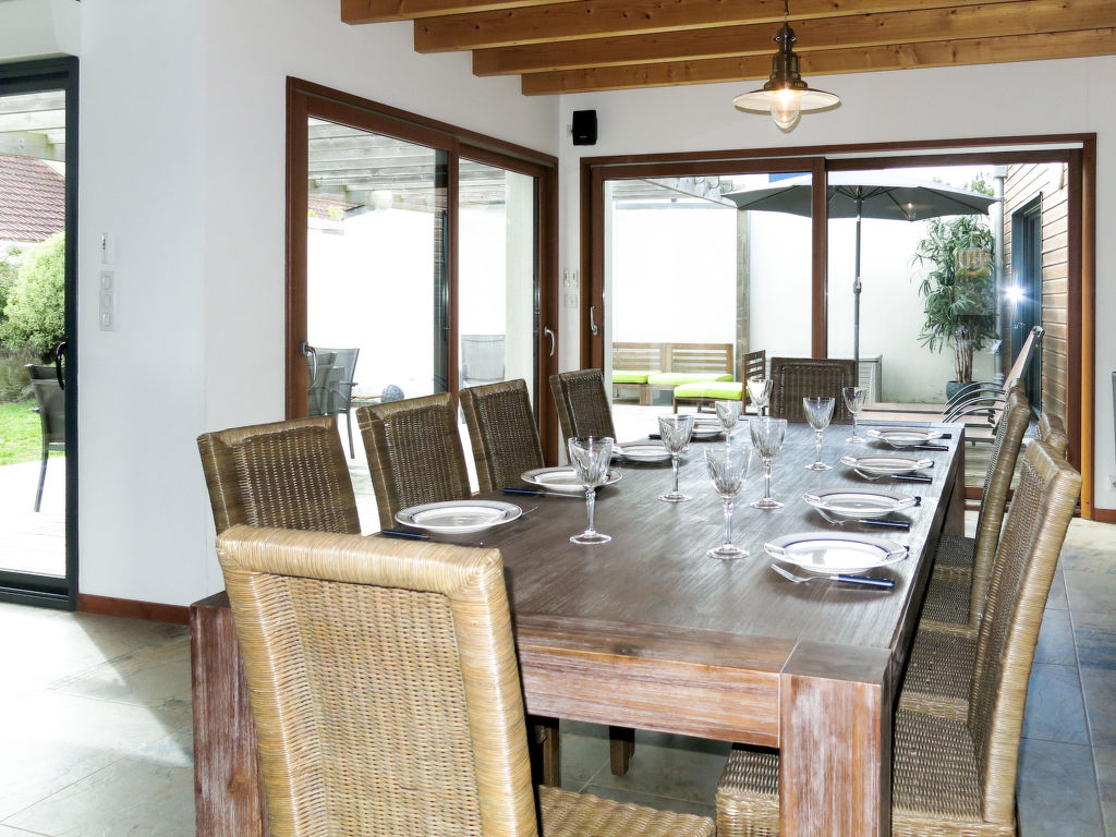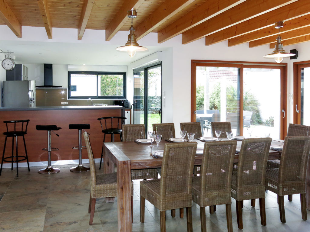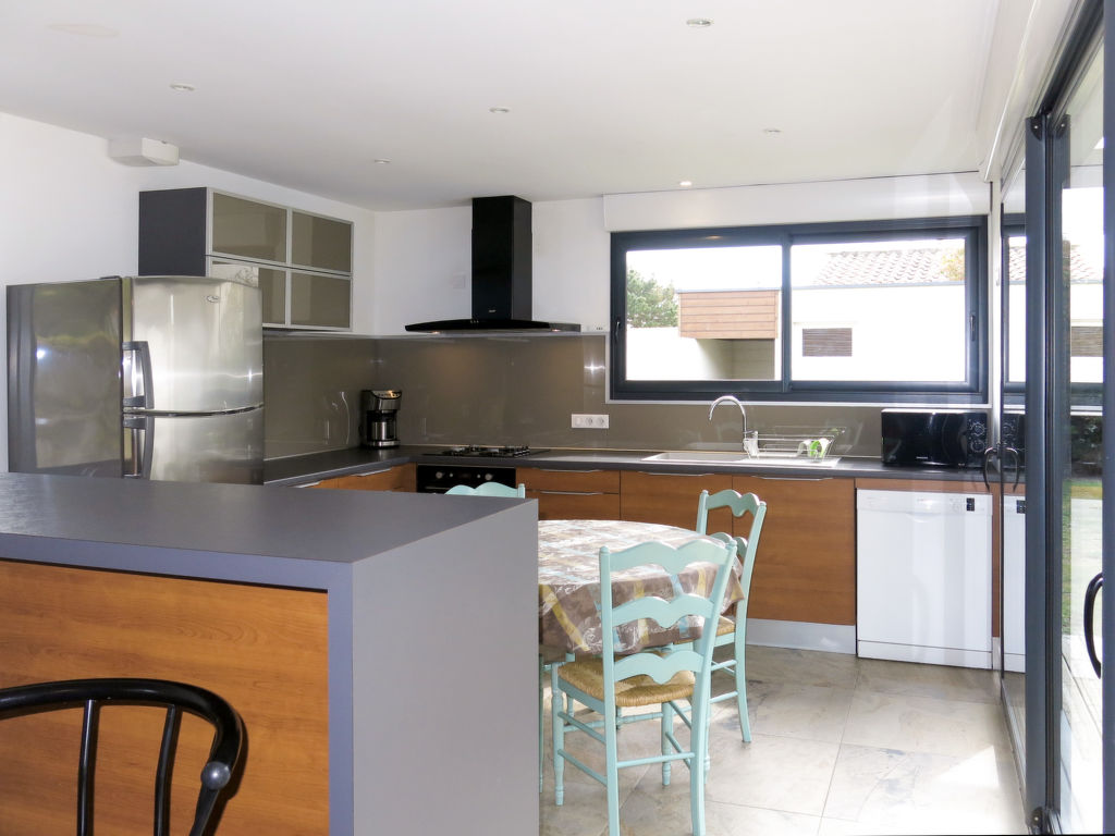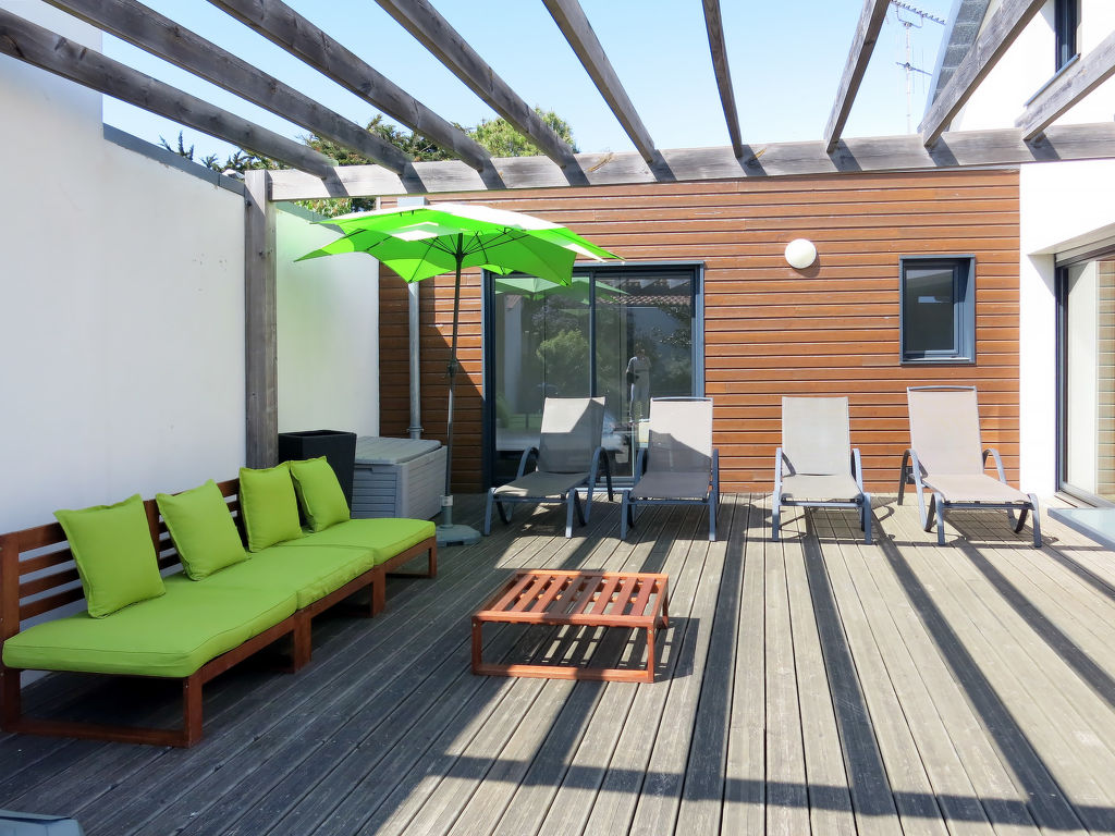 Das attraktive Ferienhaus liegt am Ende einer Stichstraße, im Ortsteil Sion-sur-l'Océan, 2,5 km von der Ortsmitte von Saint Hilaire-de-Riez entfernt. Sandstrand mit Segelschule ca. 400 m. Supermarkt 1 km. Restaurant ca. 400 m. Zufahrt ca. 100 m über Kiesweg. Zum Ferienhaus gehört ein ca. 670 m² großes, durch hohe Mauern abgeschlossenes Grundstück: vor dem Haus Kiesfläche mit Carport für 2 Pkw, hinter dem Haus hübsch begrüntes Rasengrundstück mit großer Holzterrasse, Gartenmöbeln, 4 Sonnenliegen, Sonnenschirm und Grill. Das Haus ist gut und freundlich eingerichtet. Fliesen-, Parkett- und Holzdielenböden. TV (7 deutsche Programme), DVD, Stereoanlage. Internetzugang (WLAN, inklusive). Abstellraum mit Waschmaschine, Bügeleisen/-brett. Elektroheizung (Fußbodenheizung).