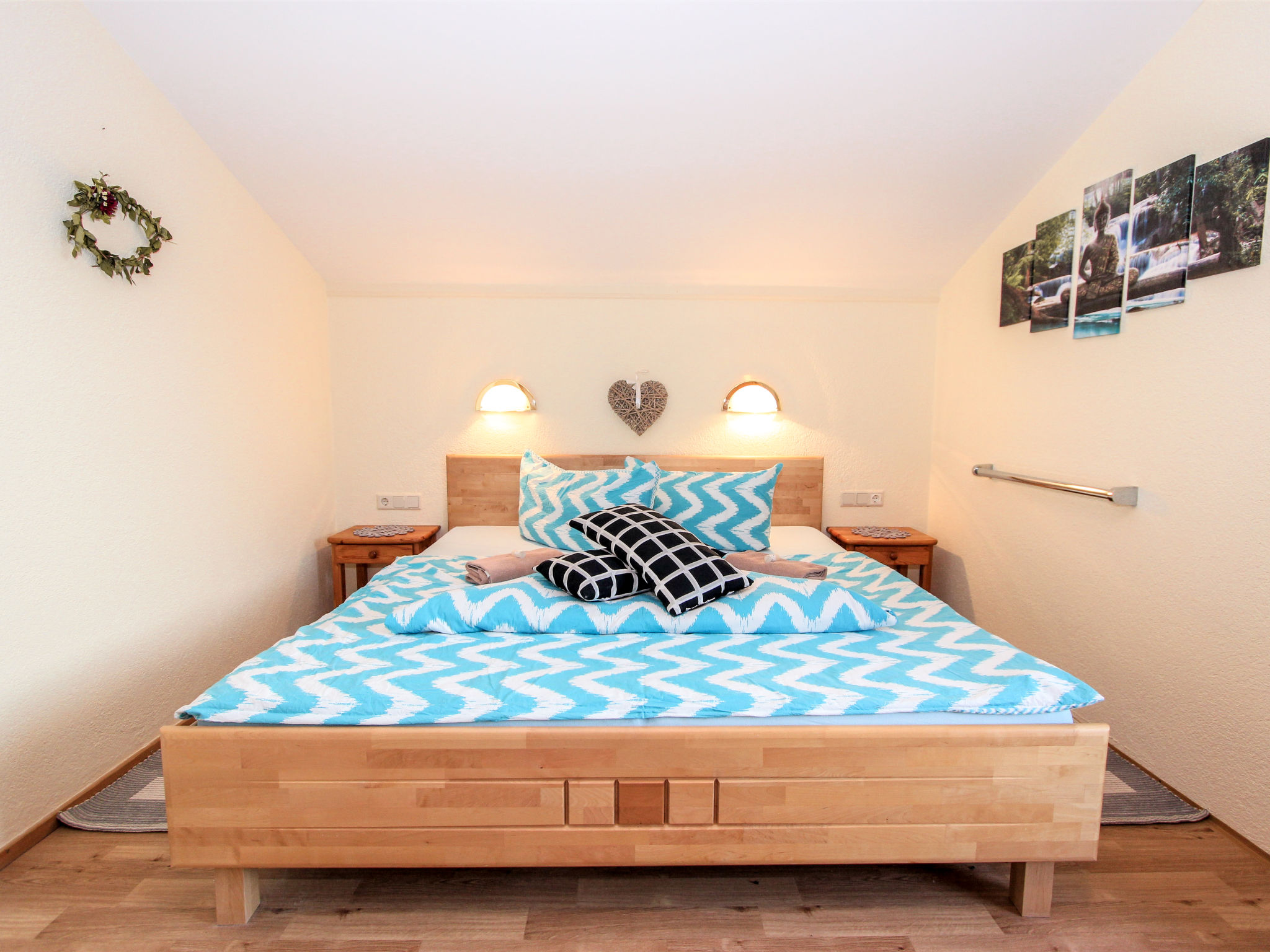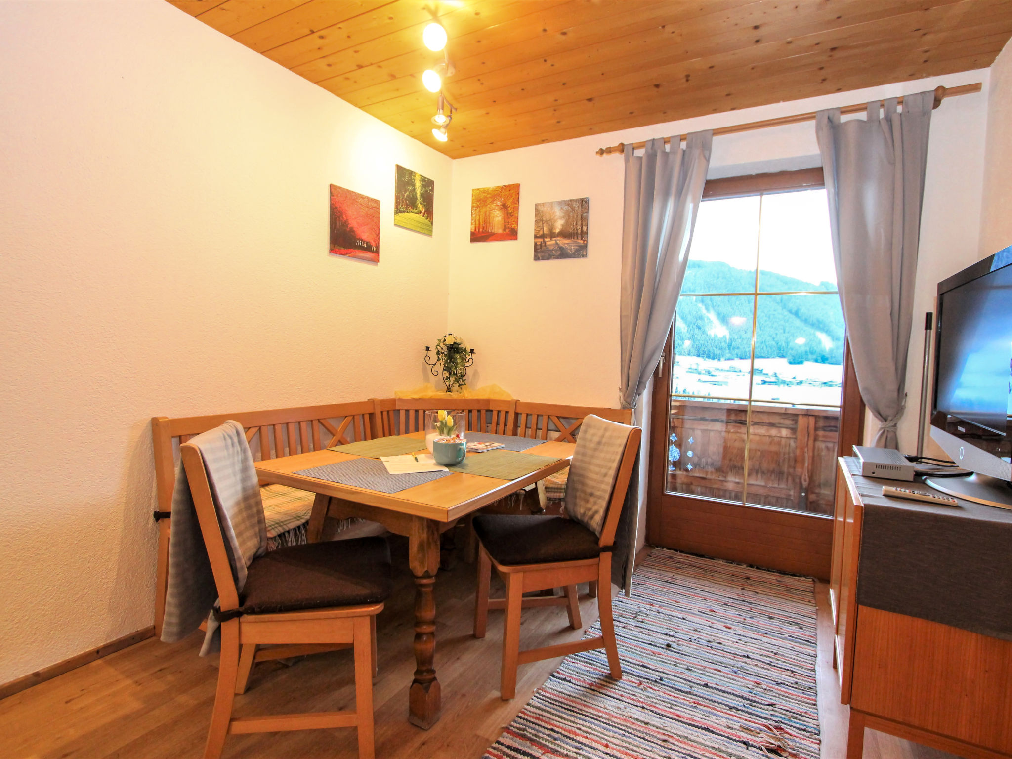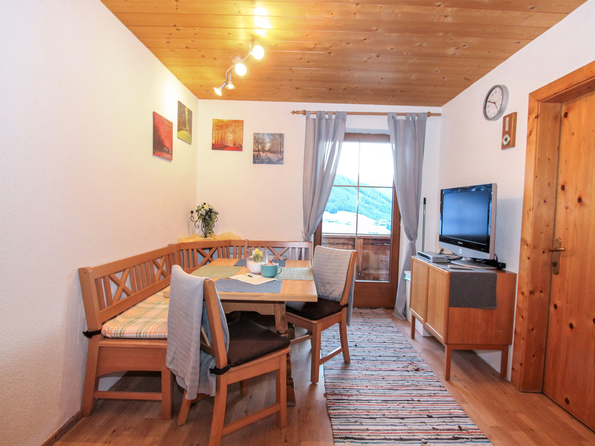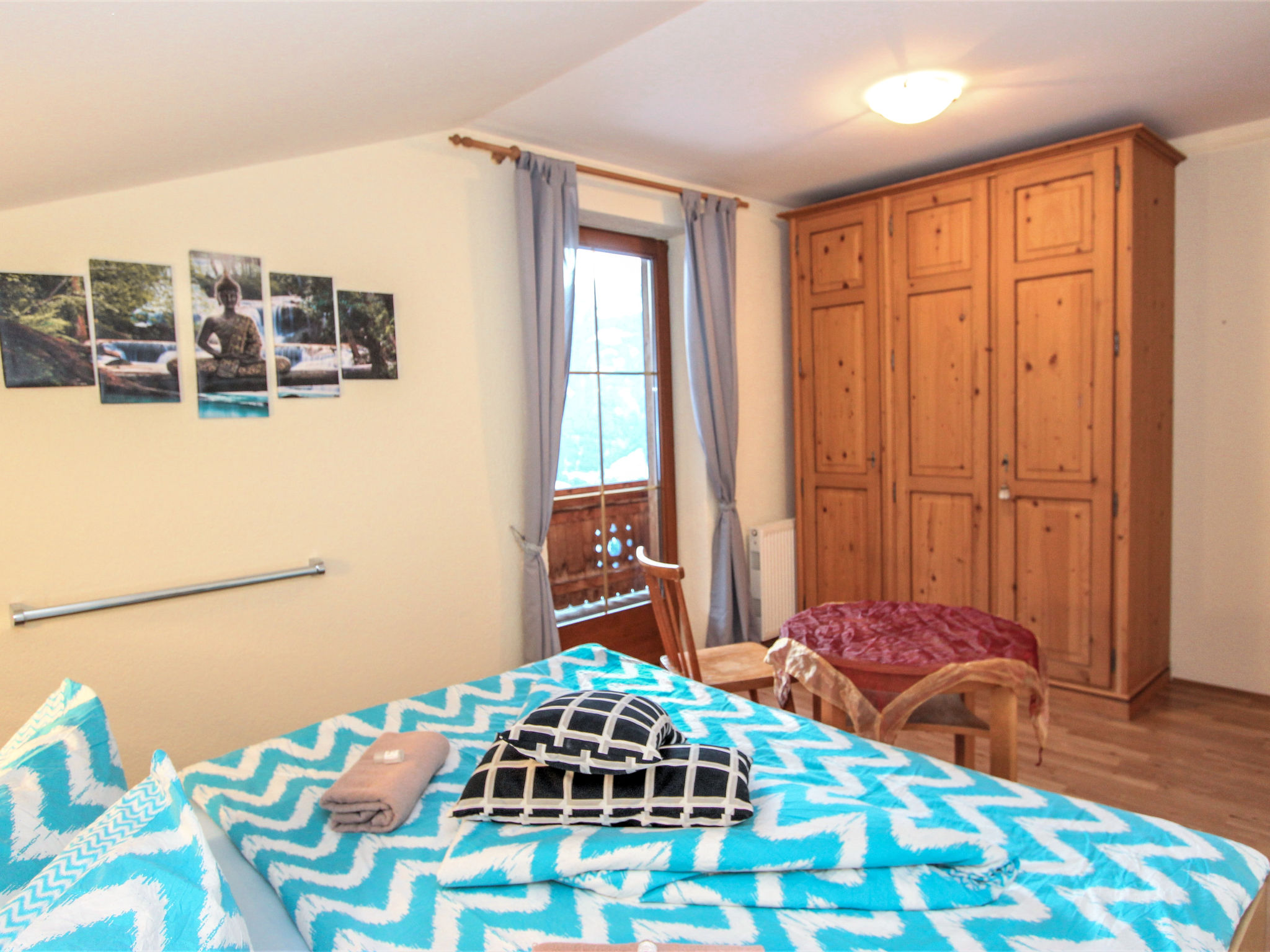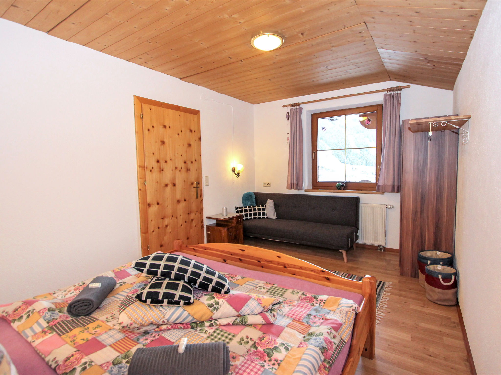 "Laura", 3-Zimmer-Wohnung 70 m2 im 2. Stock. Gemütlich eingerichtet: Eingang. 1 Doppelzimmer. Ausgang zum Balkon. 1 Zimmer mit 1 Diwanbett und 1 Doppelbett. Wohnküche (Backofen, Geschirrspüler, 4 Glaskeramikherd Platten, Mikrowelle, Tiefkühler) mit Essecke und Sat-TV (Flachbildschirm). Ausgang zum Balkon. Dusche/WC. Grosser Balkon, Südlage. Balkonmöbel. Herrliche Panoramasicht auf die Berge und das Tal. Zur Verfügung: Haartrockner. Internet (Wireless LAN). Bitte beachten: Nichtraucher-Unterkunft. 2 Haustiere/Hunde erlaubt.
