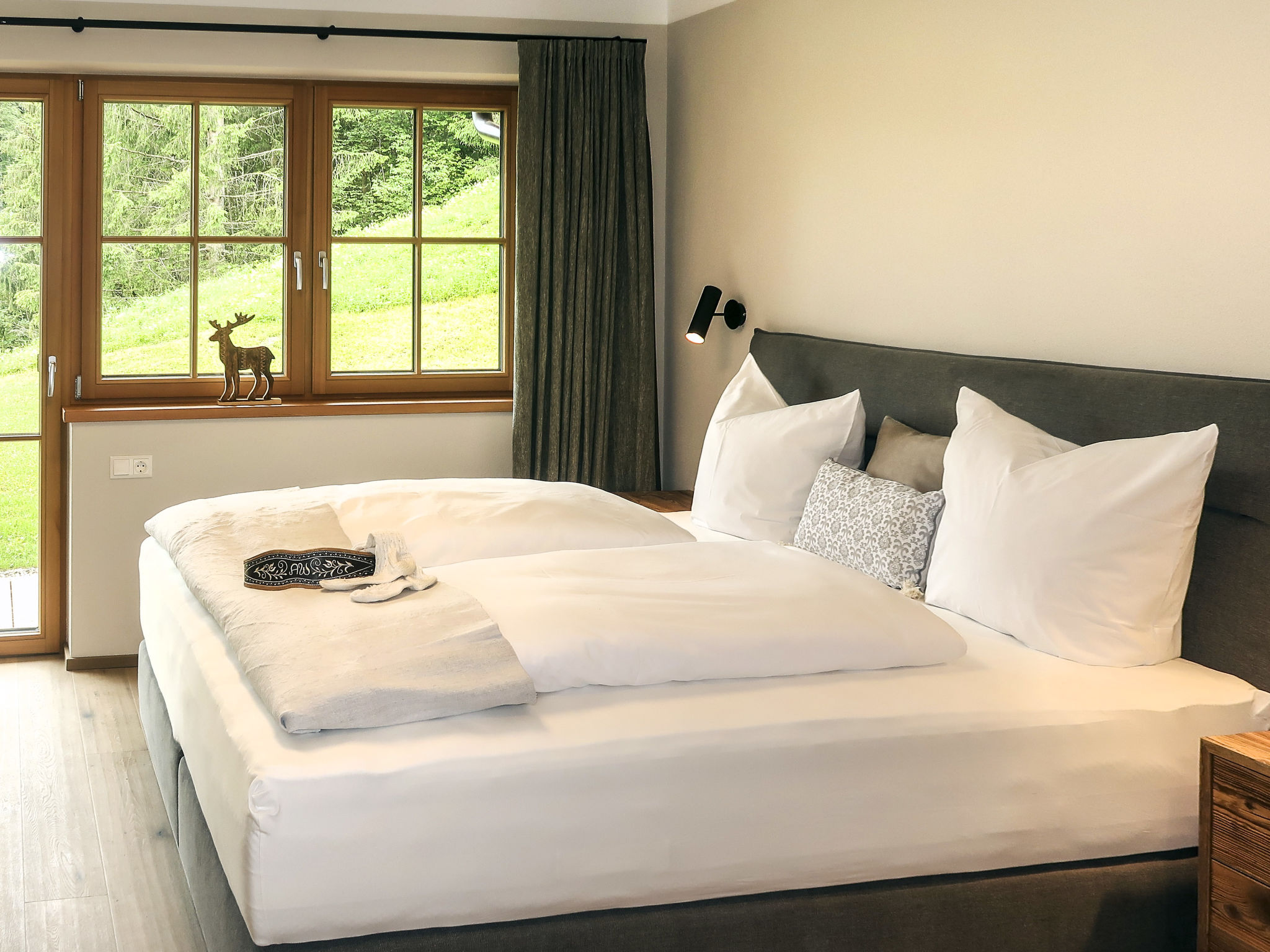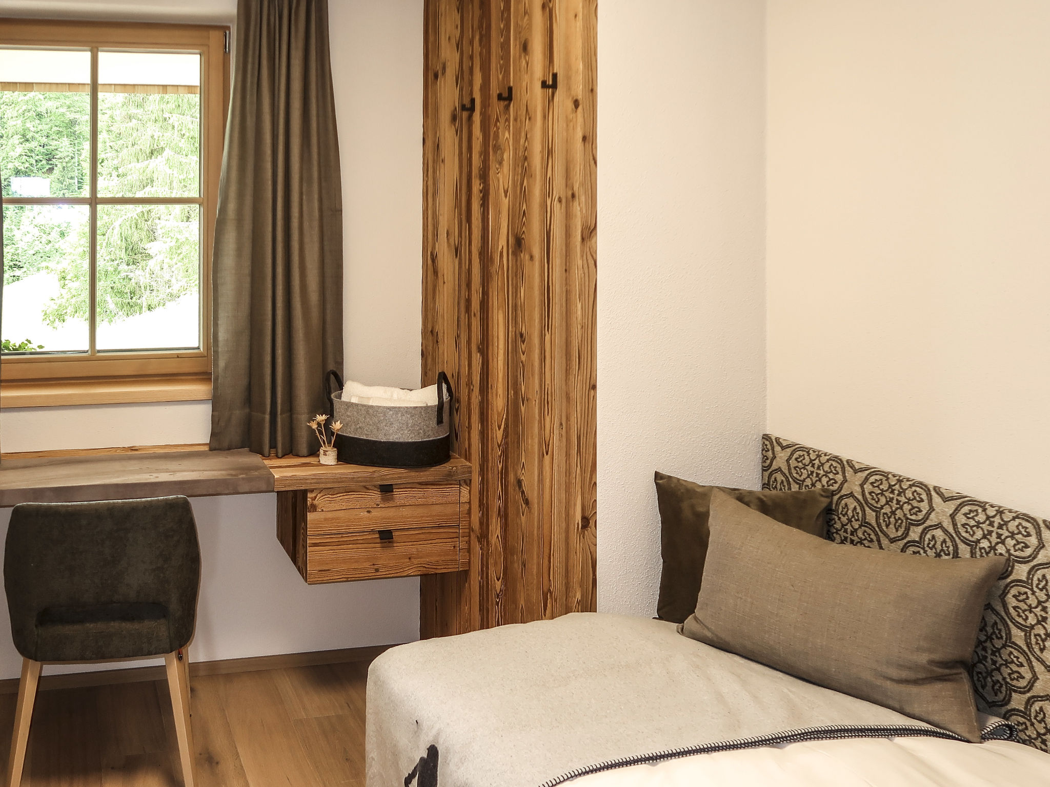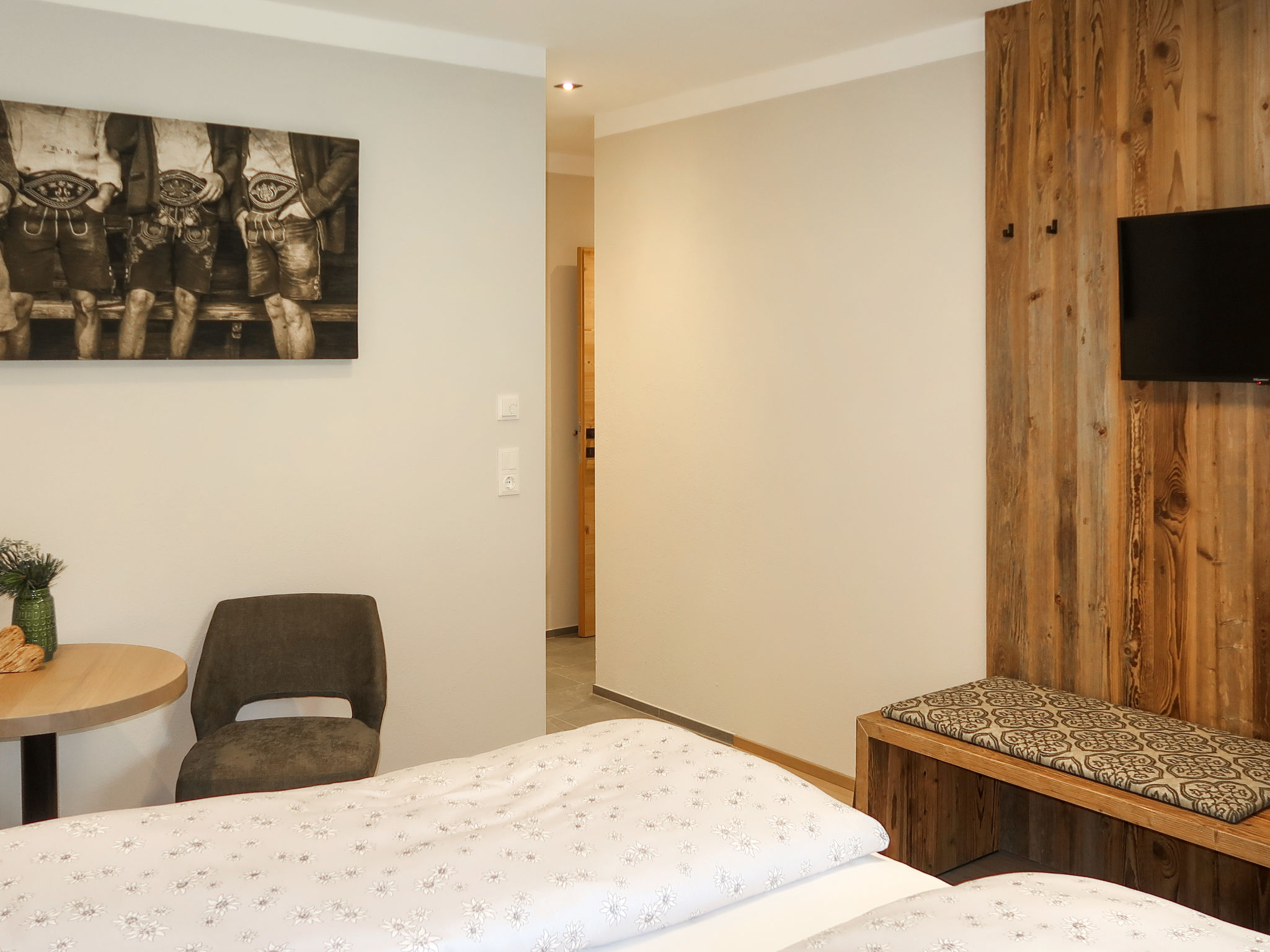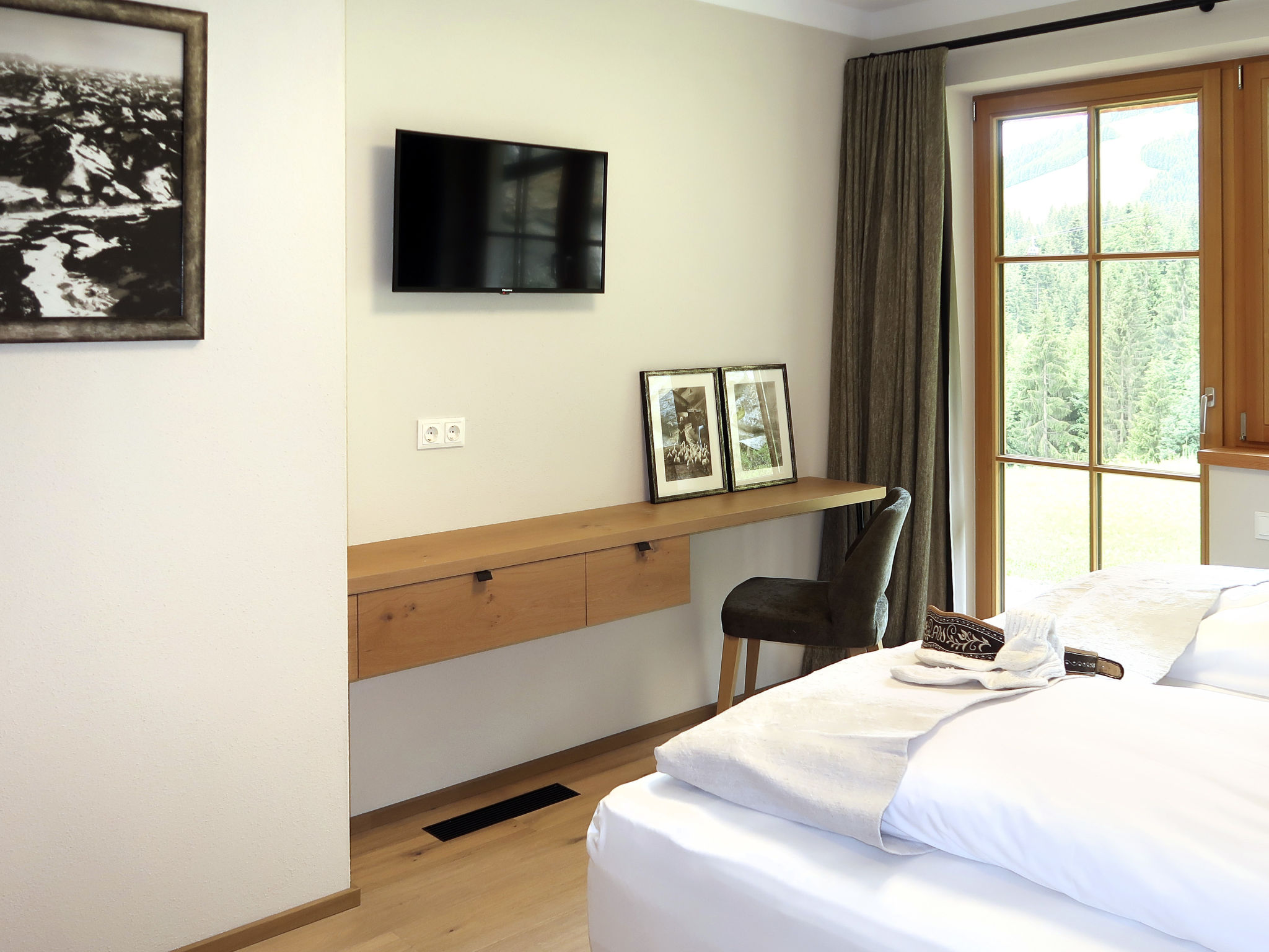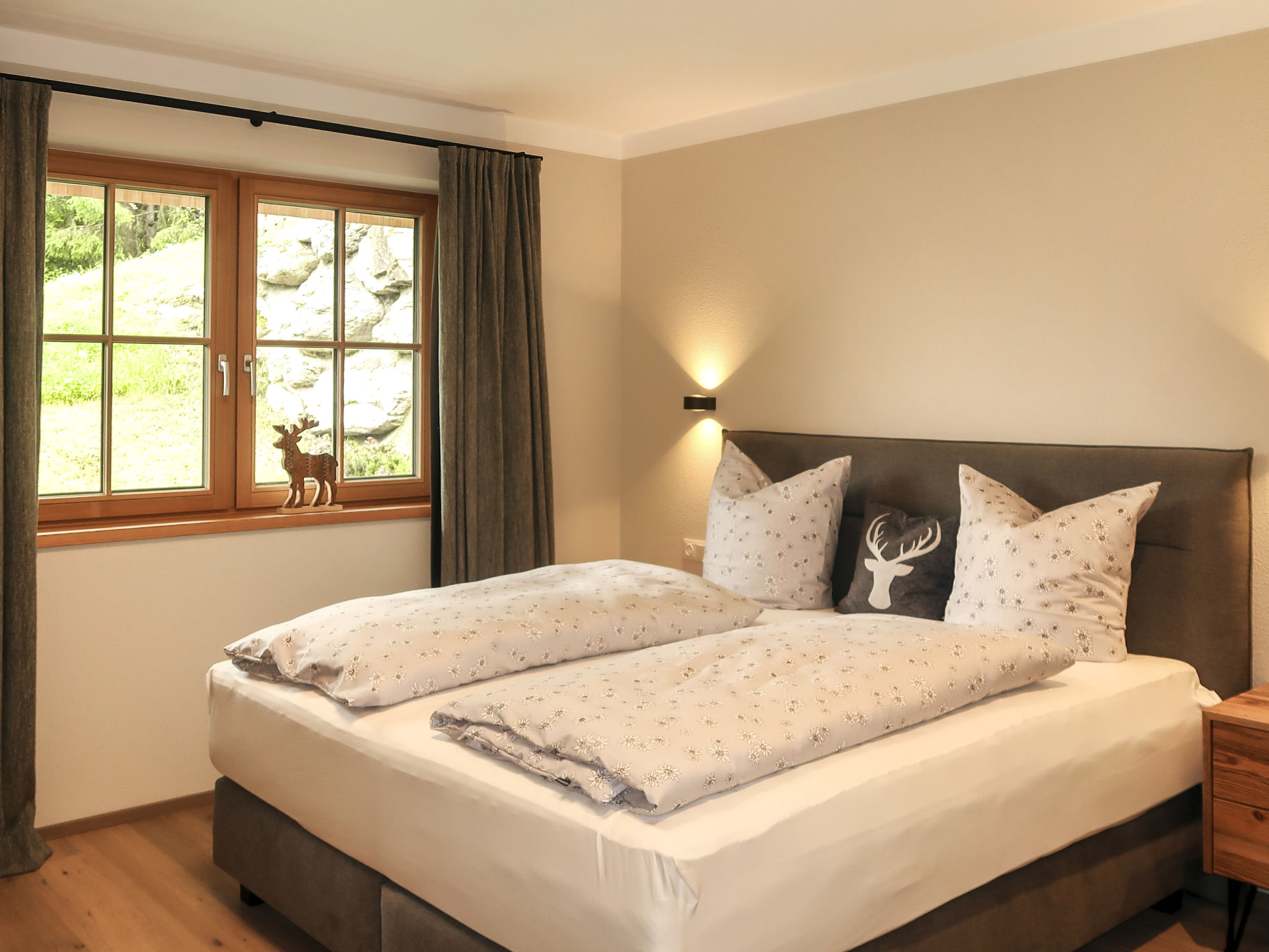 "Edelweiß", ansprechende, helle, komfortable 4-Zimmer-Wohnung im EG (90 qm). Separater Eingang. Moderne, sehr hochwertige und geschmackvolle Einrichtung. Große Wohnküche (Herd mit Ceranfeld (4 Platten), Backofen, Geschirrspüler, Kaffeemaschine, Nespresso-Kapselmaschine, Wasserkocher, Toaster) mit Essecke, Sat-TV, Couch und Ausgang zur 18 qm großen Terrasse (Lounge-Möbel, Elektrogrill und 2 Liegestühle). Von hier aus einzigartiger Blick ins Tal und auf die Bergwelt, Skipiste und Schatzbergbahn. Doppelzimmer mit Sat-TV und Ausgang zur Terrasse. Doppelzimmer mit Sat-TV und eigenem Bad (Dusche/WC). Zimmer mit Einzelbett, Schreibtisch und Sat-TV. Bad (Dusche/WC). Haartrockner. Separates WC. Abstellkammer. Fußbodenheizung. Holzböden. Ideale Unterkunft für "Home-office"-Tätigkeiten bzw. einen "Workation"-Aufenthalt. Zur Verfügung: Leistungsfähiges Business-WLAN (gratis), Kinderhochstuhl, Babybett. Bitte beachten: Nichtraucher-Unterkunft.