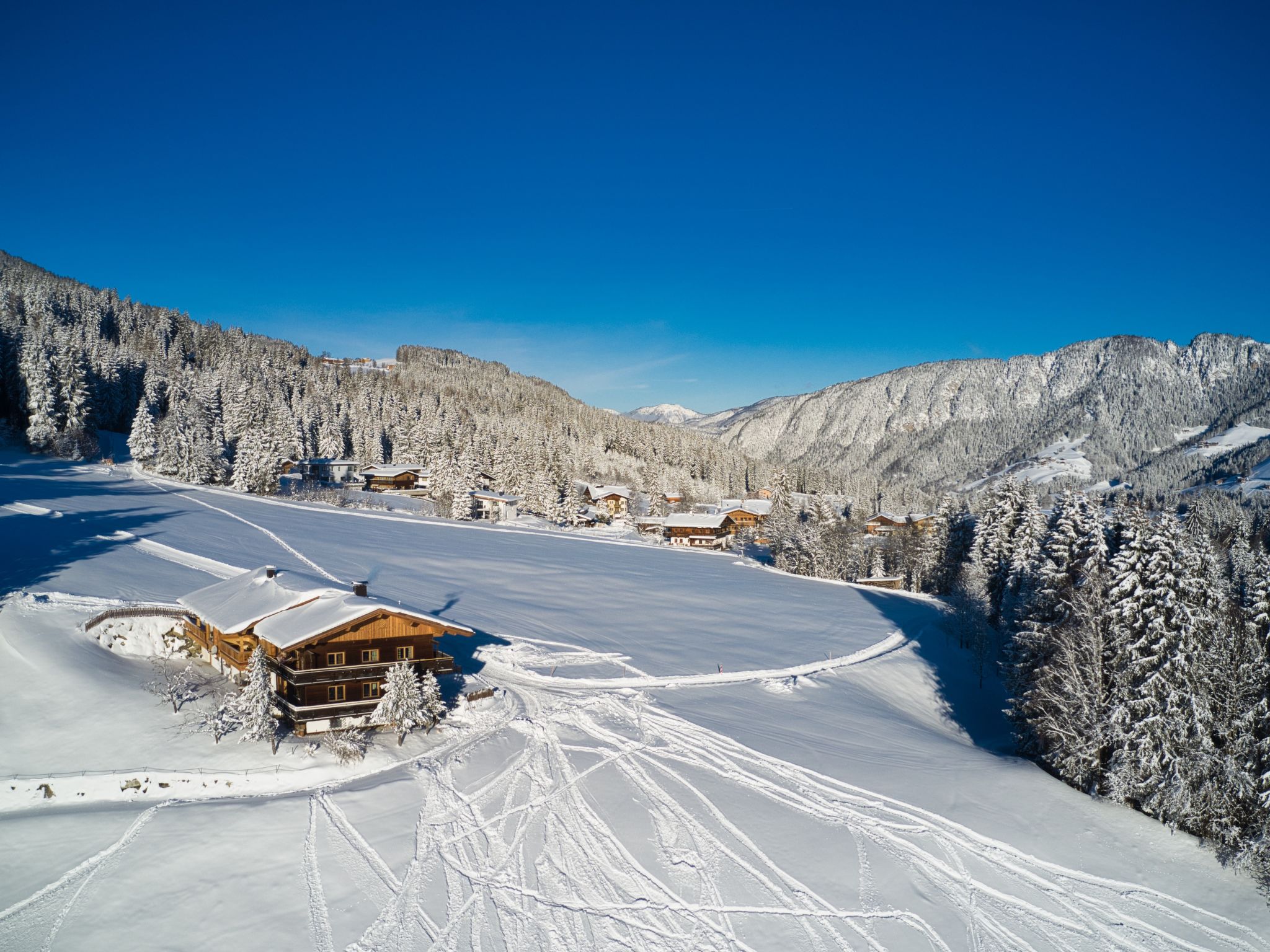 Das Chalet "Edelweiß" steht allein in spektakulärer Aussichtslage ca. 1,8 km oberhalb der Ortsmitte von Auffach. 6 km nach Oberau, 17 km nach Wörgl. 31 km nach Kufstein. In Auffach: Supermarkt, Restaurants, Bergbahn (zum Schatzberg, Einstieg in das Skigebiet Skijuwel Alpbachtal-Wildschönau), Skibushaltestelle (Gratisbus zu weiterem Skigebiet am Markbachjoch). Skischule ca. 1,5 km. Freibad ca. 7 km. Drachental mit Alpin Coaster und Drachenclub (Kinderprogramm) ca. 5,5 km. Grundstück (1000 qm) zur Mitbenutzung. Parkplätze (2) am Haus. Die Zufahrt zum Chalet erfolgt über eine Bergstrasse. Im Winter können Schneeketten erforderlich sein. Allradfahrzeug empfohlen. Schlittelbahn ca. 100 m, Langlaufloipe ca. 150 m. Vom Chalet aus spektakulärer Blick ins Tal, auf die umliegenden Berge und auf die Piste (Talabfahrt Schatzbergbahn). Bei geeigneter Schneelage: Zufahrt mit den Ski direkt bis zum Haus möglich. Einstellmöglichkeit für Ski (inklusive Skischuh-Trockner) und Fahrräder im Haus.