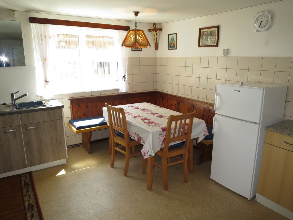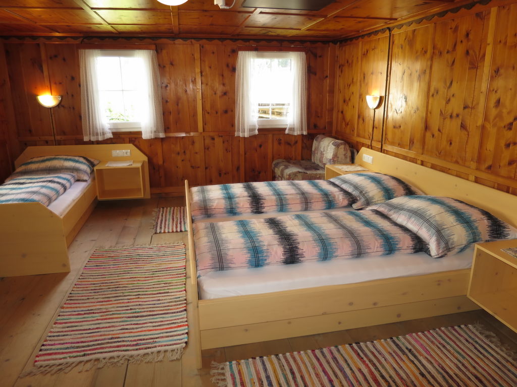 "Fatlar (KPL686)", 5-Zimmer-Haus 150 m2 auf 2 Stockwerken. Rustikal eingerichtet: Wohn-/Esszimmer mit Schwedenofen, Esstisch, Essecke und Sat-TV. 1 Zimmer mit 1 Bett und 1 Doppelbett. Küche (Backofen, 4 Glaskeramikherd Platten, Toaster, Wasserkocher, Mikrowelle, Tiefkühler, elektrische Kaffeemaschine) mit Esstisch. 3 Duschen/WC. E-Heizung. Obergeschoss: 2 Zimmer, jedes Zimmer mit 1 Bett und 1 Doppelbett. 1 Zimmer mit 1 Bett. Holzböden. Das Wohnzimmer ist eine Bauernstube. Terrasse. Terrassenmöbel, Liegestühle (2). Zur Verfügung: Internet (Wireless LAN, gratis). Die möblierte Terrasse steht den Gästen nur im Sommer zur Verfügung. Bei Belegung mit weniger Personen als der maximalen Personenzahl stehen nicht alle Wohneinheiten zur Verfügung.