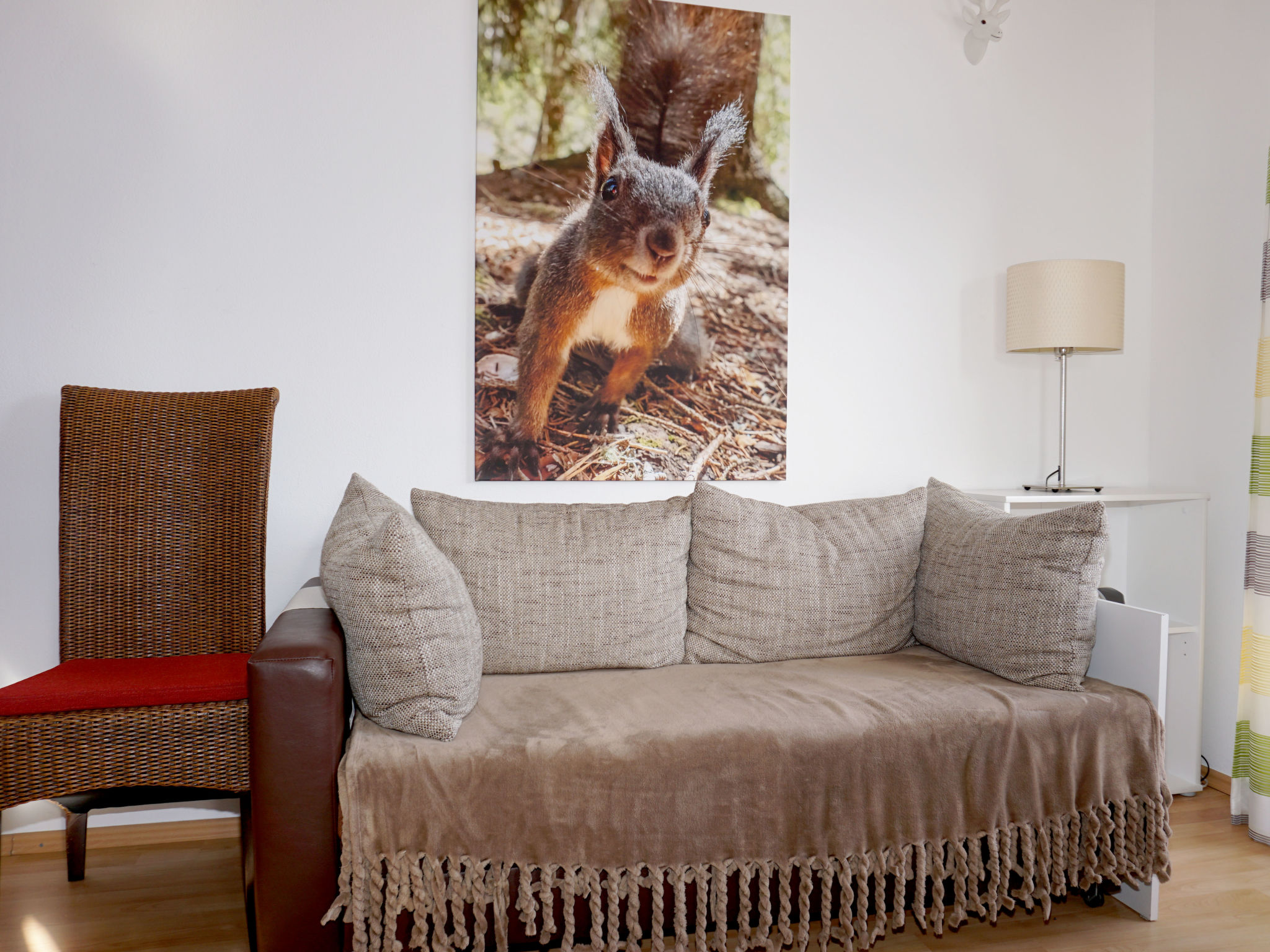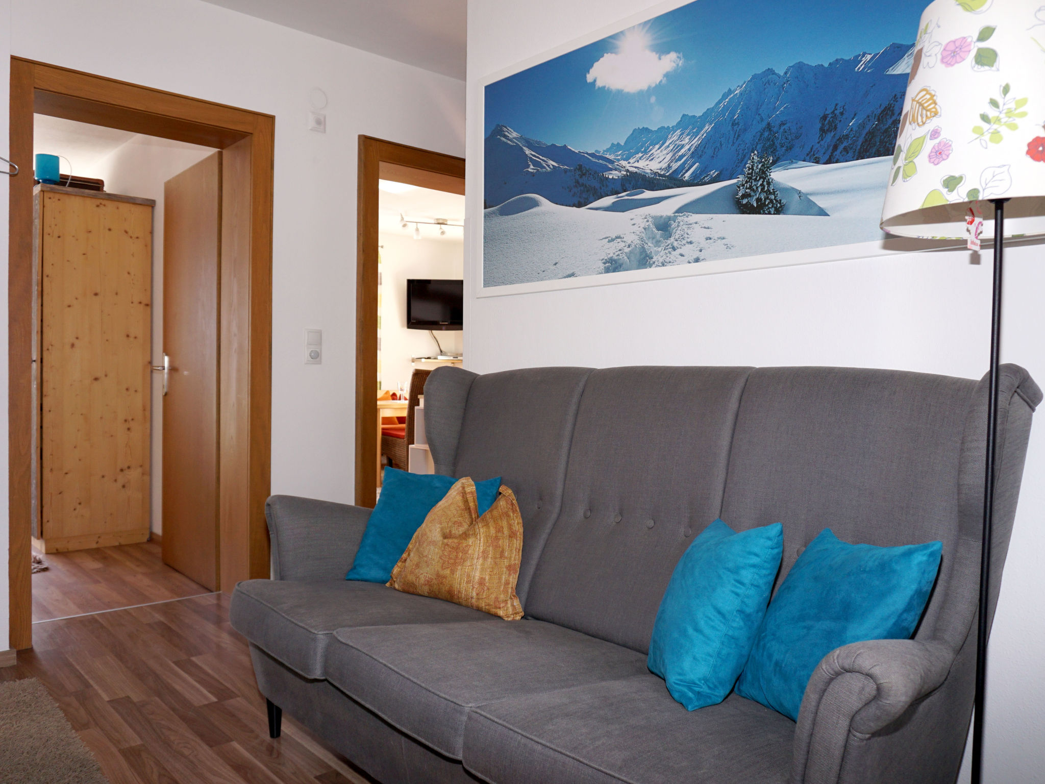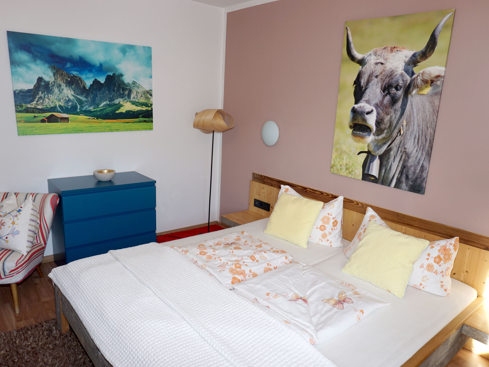 "Walter", 3-Zimmer-Wohnung 75 m2 im 1. Stock. Schön und gemütlich eingerichtet: Eingang. 1 Doppelzimmer. 1 Zimmer mit 1 Bett und 1 Doppelbett. Wohnküche (Backofen, 4 Glaskeramikherd Platten, Toaster, Wasserkocher, Mikrowelle, Tiefkühler, elektrische Kaffeemaschine) mit Esstisch, TV. Ausgang zum Balkon. Dusche/WC. 2 Balkone, Südlage. Balkonmöbel. Herrliche Panoramasicht auf die Berge. Zur Verfügung: Internet (Wireless LAN, gratis). Parkplatz (1 Auto).