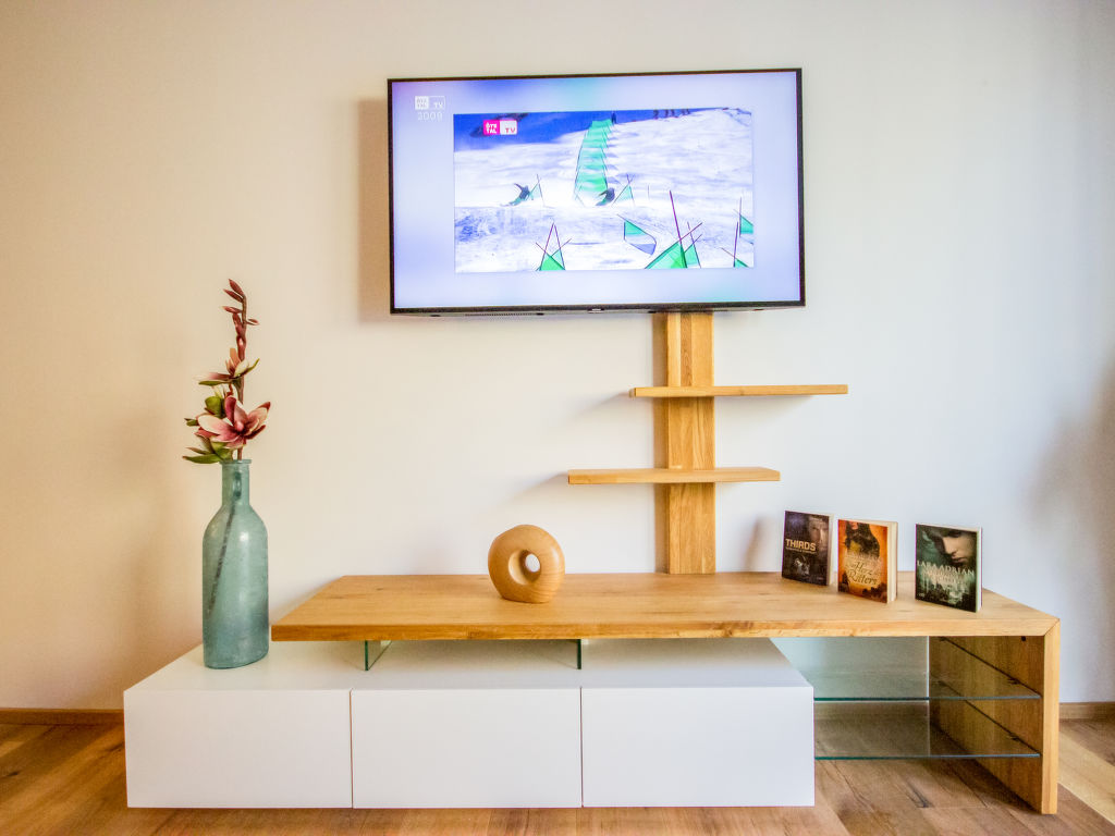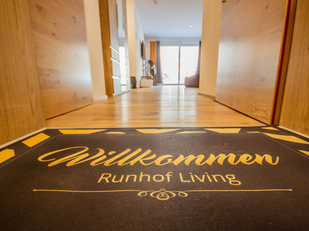 "Runhof Living", 2-Zimmer-Wohnung 70 m2, im Erdgeschoss. Eingang. 1 Doppelzimmer mit TV. Ausgang zur Terrasse. Wohn-/Esszimmer mit 1 Doppeldiwanbett und TV. Ausgang zur Terrasse. Küche (Backofen, Geschirrspüler, 4 Induktionskochplatten, Toaster, Wasserkocher, Tiefkühler, elektrische Kaffeemaschine) mit Esstisch. Bad/Dusche, sep. WC. Parkettböden. Terrassenmöbel. Schöne Sicht auf die Landschaft. Zur Verfügung: Haartrockner. Internet (Wireless LAN). Garage beim Haus. Bitte beachten: Nichtraucher-Unterkunft. 1 Haustier/Hund erlaubt. Rauchmelder.