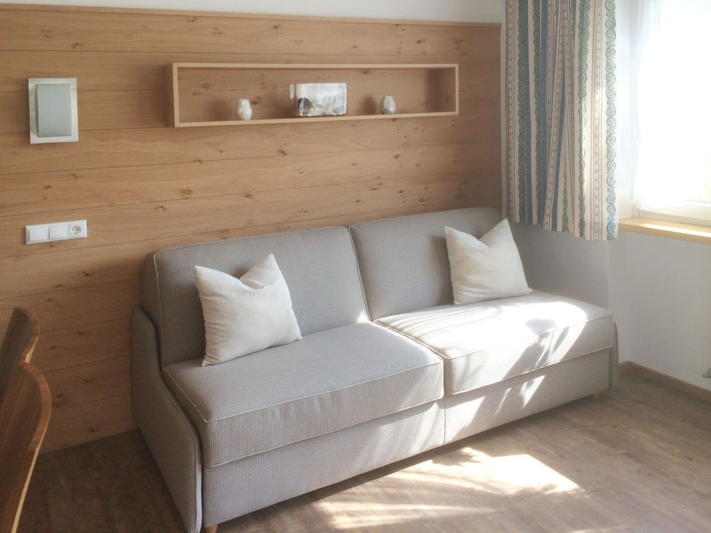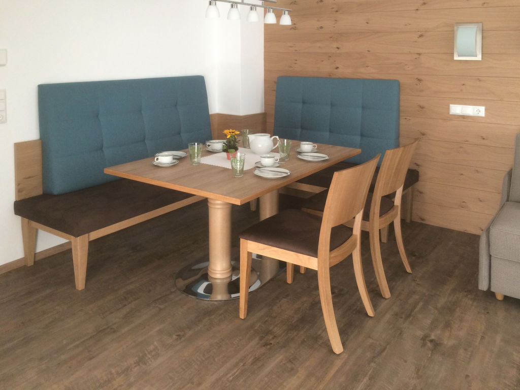 2-Zimmer-Wohnung, 1. oder 2. Etage, ca. 45 m². Wohn-/Schlafraum mit Doppelbettcouch und Essplatz (Eckbank). Küche (3 Platten, Backofen, Kühlschrank, Kaffeemaschine, Wasserkocher). Schlafzimmer mit Doppelbett, Einzelbett. Bad/WC. Bei Belegung mit weniger Personen als der maximalen Personenzahl stehen nicht alle Wohneinheiten zur Verfügung.
