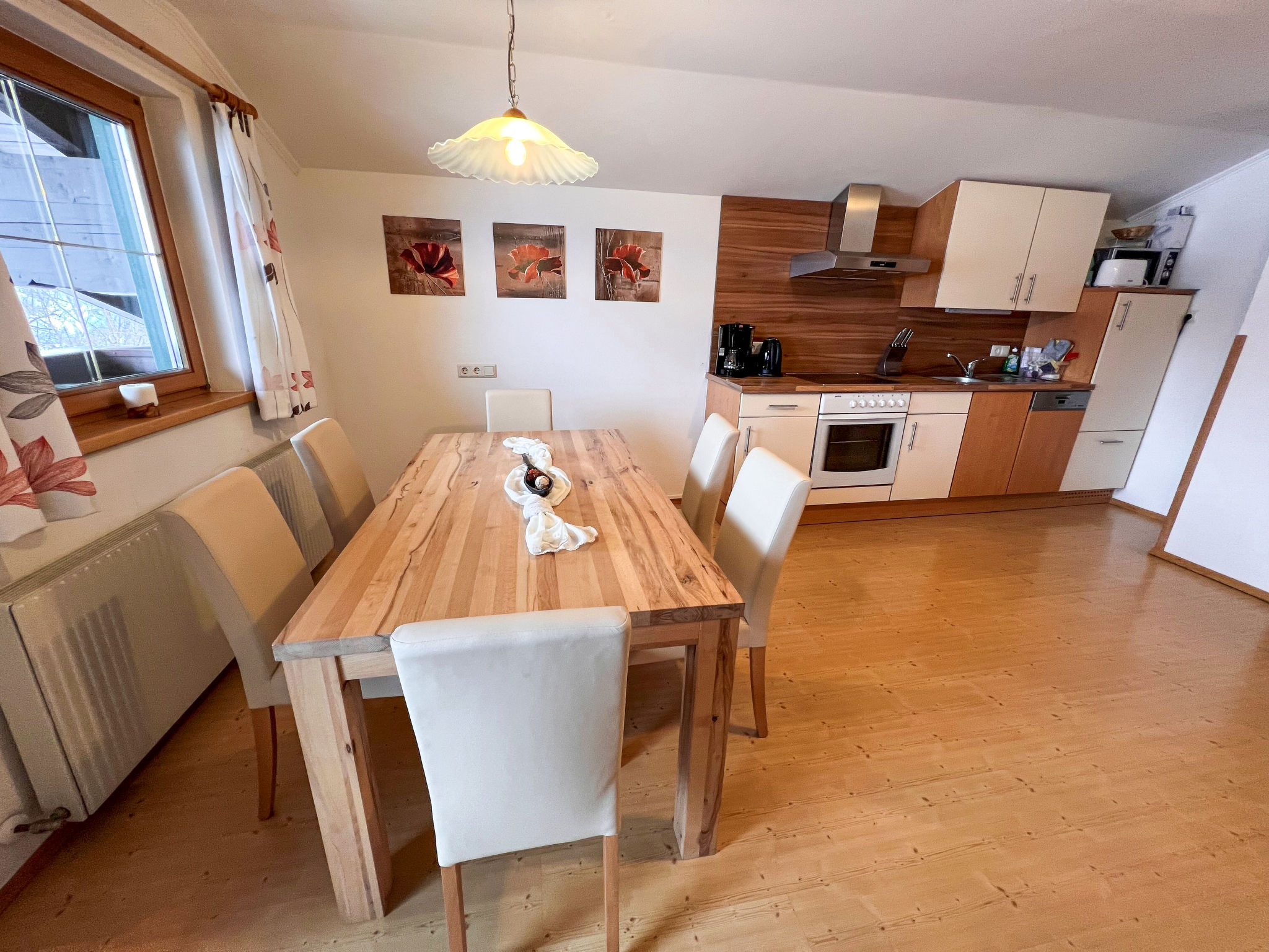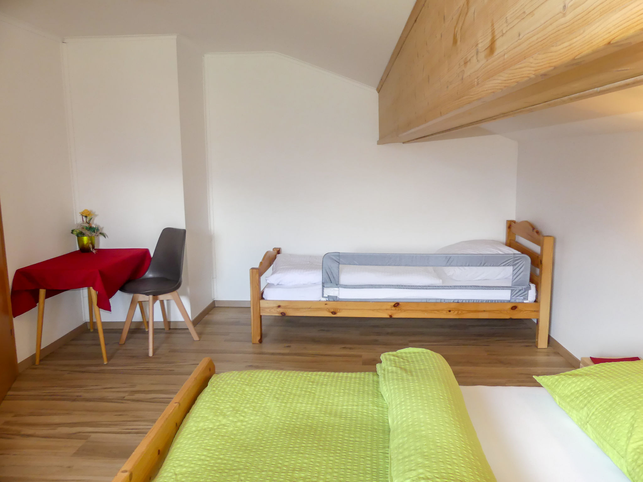"Haslinghof Wohnung Claudia", 4-Zimmer-Wohnung 80 m2 im 2. Stock. Zweckmässig und geschmackvoll eingerichtet: 2 abgeschrägte Doppelzimmer. 1 abgeschrägtes Doppelzimmer mit Dusche/WC. Wohnküche (Backofen, Geschirrspüler, 4 Glaskeramikherd Platten, Toaster, Wasserkocher, elektrische Kaffeemaschine) mit Esstisch, Kabel-TV und Flachbildschirm. Ausgang zum Balkon. Dusche/WC. Holzböden. Panoramasicht. Zur Verfügung: Kinderhochstuhl, Babybett. Internet (Wireless LAN, gratis). Parkplatz (2 Autos) beim Haus. Bitte beachten: Nichtraucher-Unterkunft. Bei Belegung mit weniger Personen als der maximalen Personenzahl stehen nicht alle Wohneinheiten zur Verfügung. 50616-001082-2020