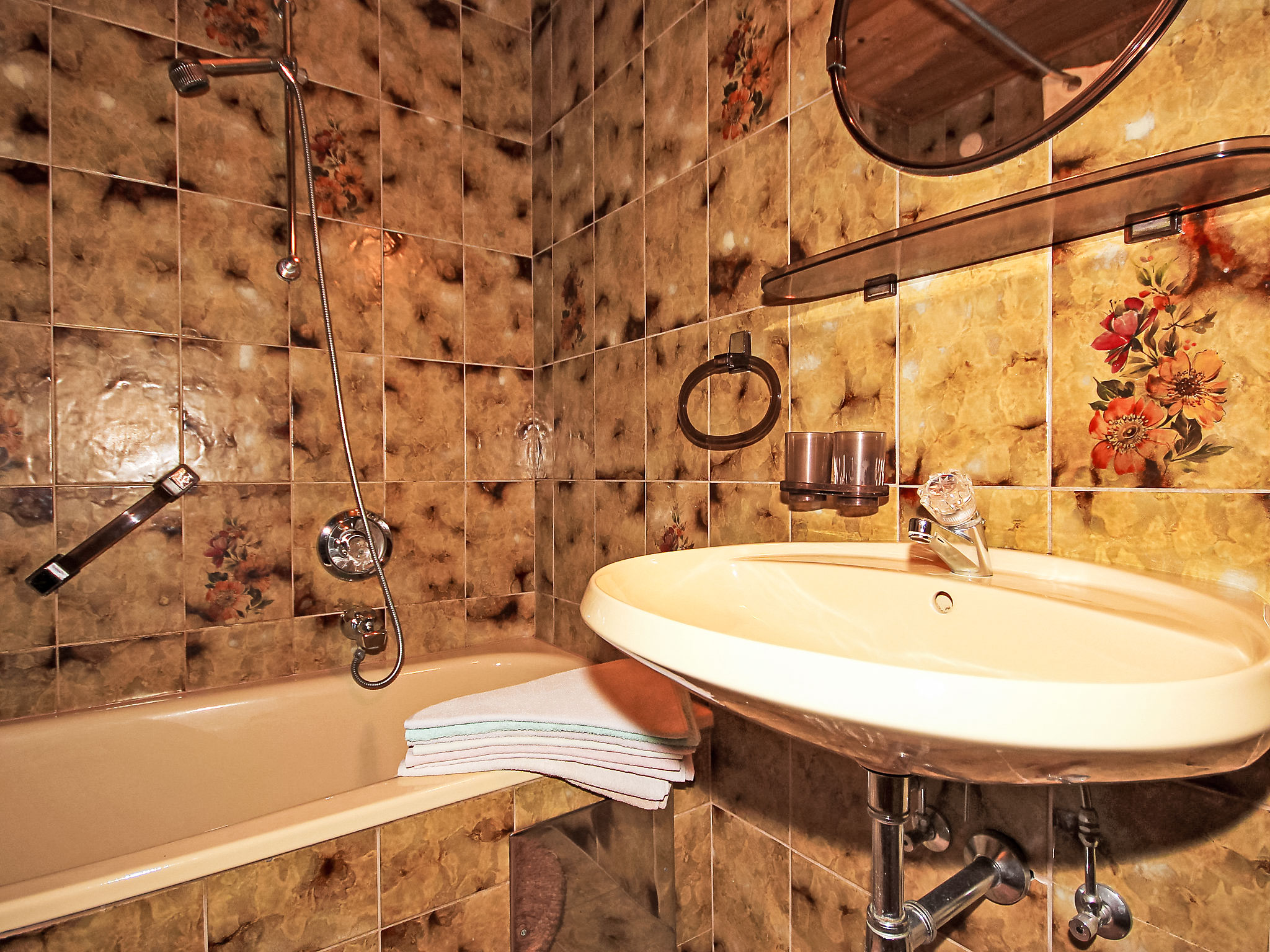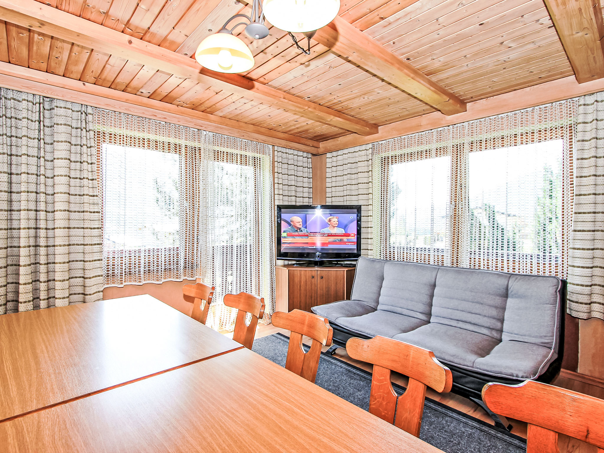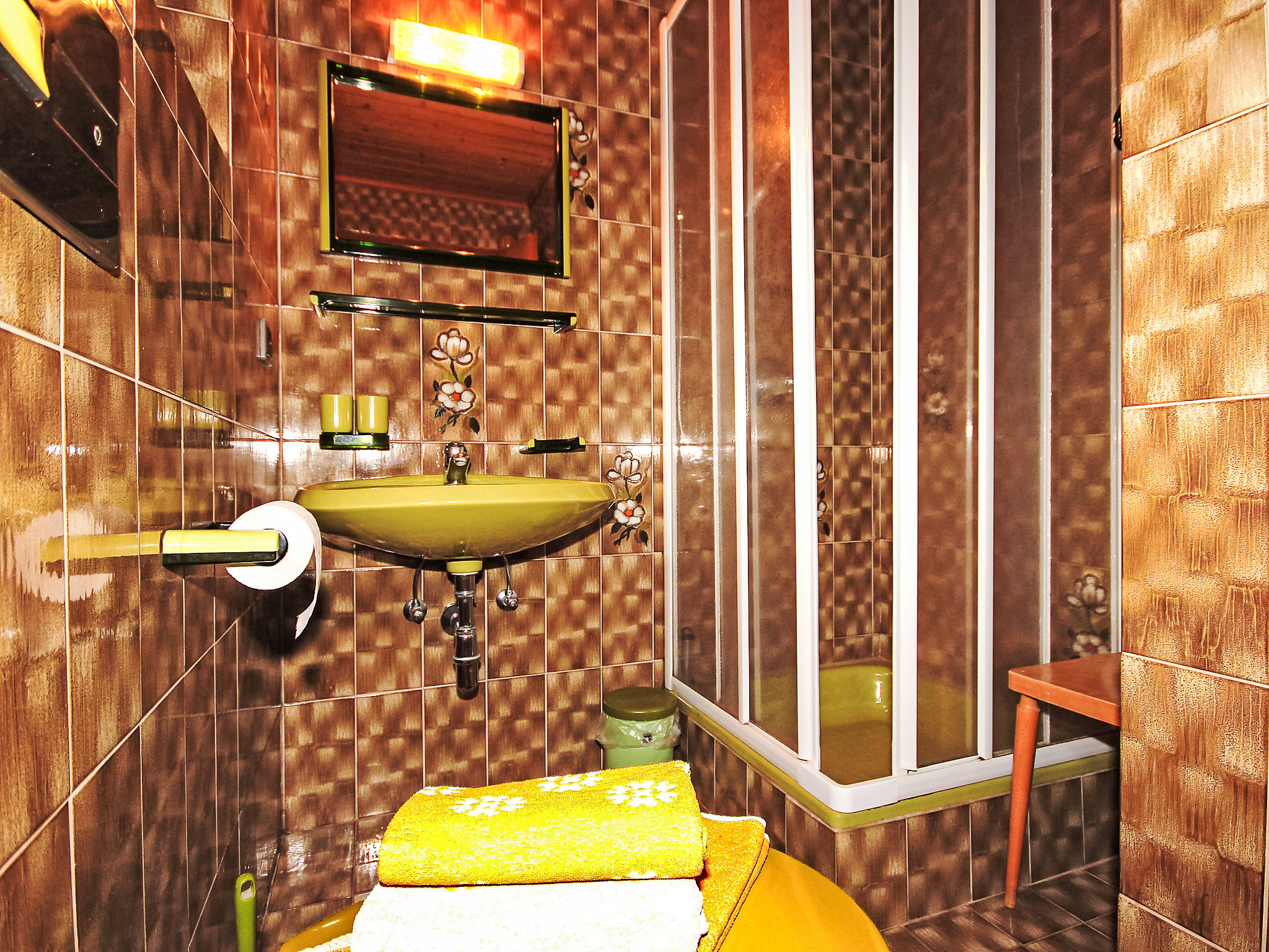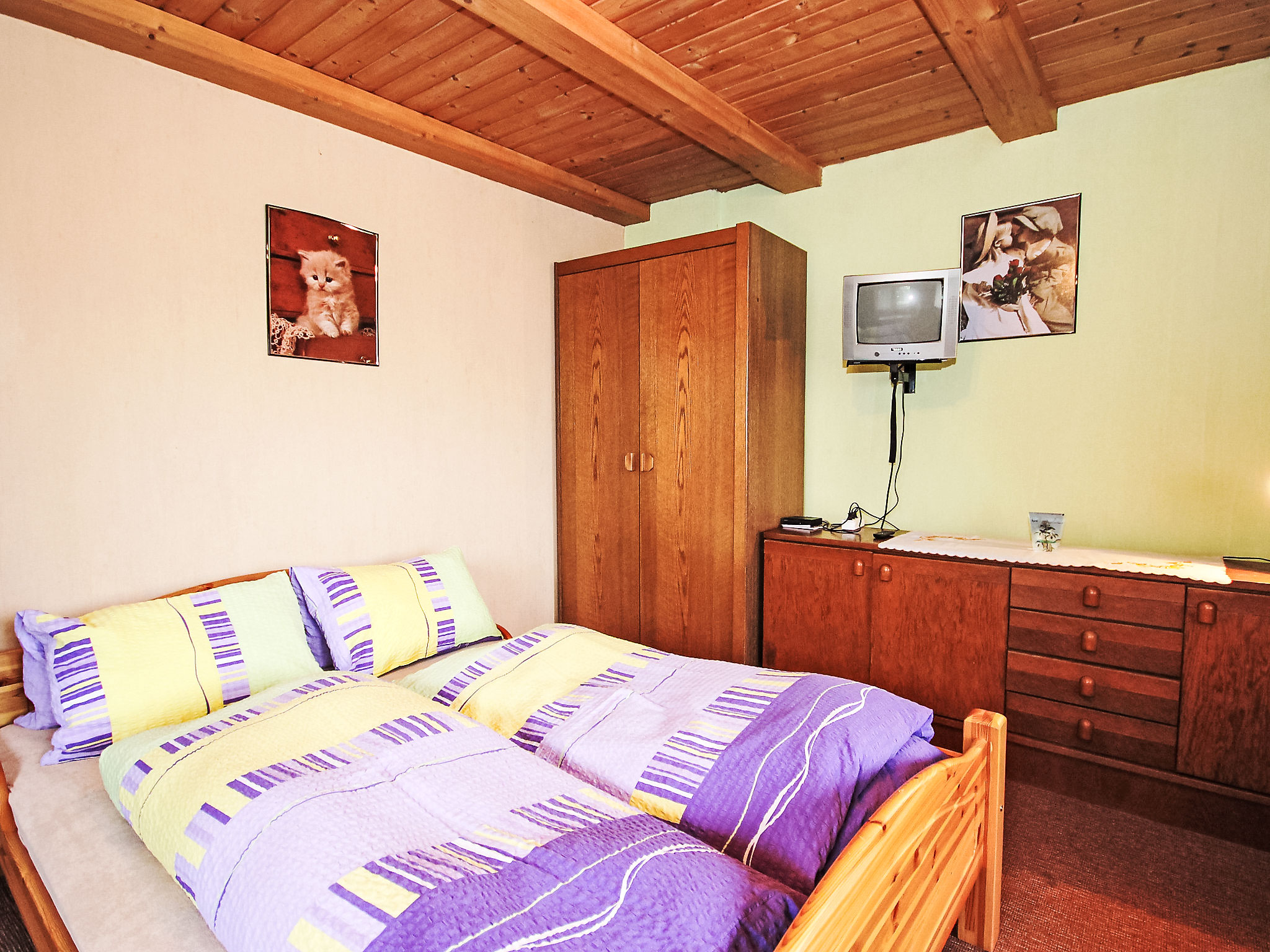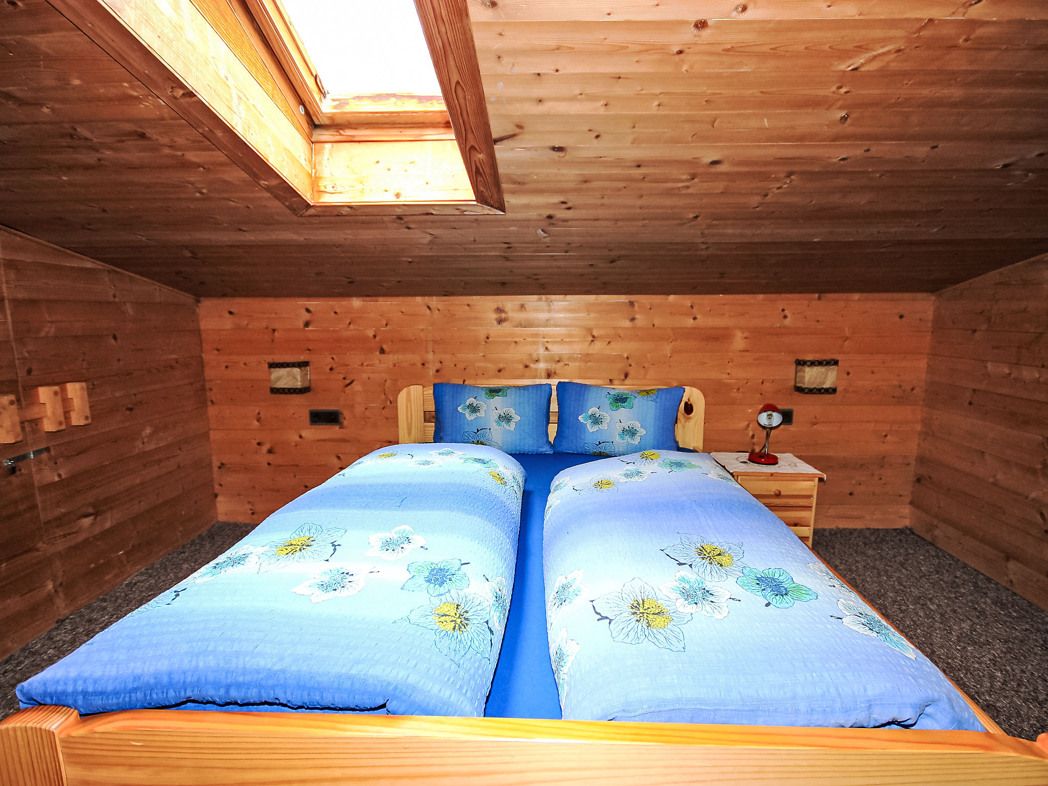 7-Zimmer-Haus 230 m2 auf 3 Stockwerken. Teilweise abgeschrägt, einfach und zweckmässig eingerichtet: Eingang. 1 Doppelzimmer. 1 Zimmer mit 1 Doppeldiwanbett, 1 Doppelbett und Sat-TV. Küche (4 Kochplatten, Backofen) mit Esstisch. Bad/WC. Obergeschoss: grosses Esszimmer mit 1 Diwanbett und Sat-TV. Ausgang zum Balkon. 1 Doppelzimmer. 1 Zimmer mit 1 Doppeldiwanbett und Sat-TV. 1 Zimmer mit 1 franz. Bett (160 cm), Dusche/WC. Küche (Backofen, Geschirrspüler, 4 Glaskeramikherd Platten, Mikrowelle, Tiefkühler) mit Esstisch. Ausgang zum Balkon, zur Terrasse. Bad/WC. Dachgeschoss: 1 abgeschrägtes grosses Zimmer, Deckenhöhe 200 - 100 cm mit 1 Doppeldiwanbett, 1 Doppelbett und Sat-TV. Küche (4 Kochplatten, Backofen) mit Esstisch. Ausgang zum Balkon. Bad, sep. WC. 2 Balkone, Terrasse. Terrassenmöbel, Sitzplatz. Sehr schöne Panoramasicht auf die Berge und die Landschaft. Zur Verfügung: Internet (Wireless LAN, extra). 2 Haustiere/Hunde erlaubt. Das Haus darf mit maximal 14 Personen belegt werden (inklusive Gitterbett). 2 Zusatzbetten für eine 15. oder 16. Person sind gegen Gebühr möglich. Bei Belegung mit weniger Personen als der maximalen Personenzahl stehen nicht alle Schlafzimmer zur Verfügung.