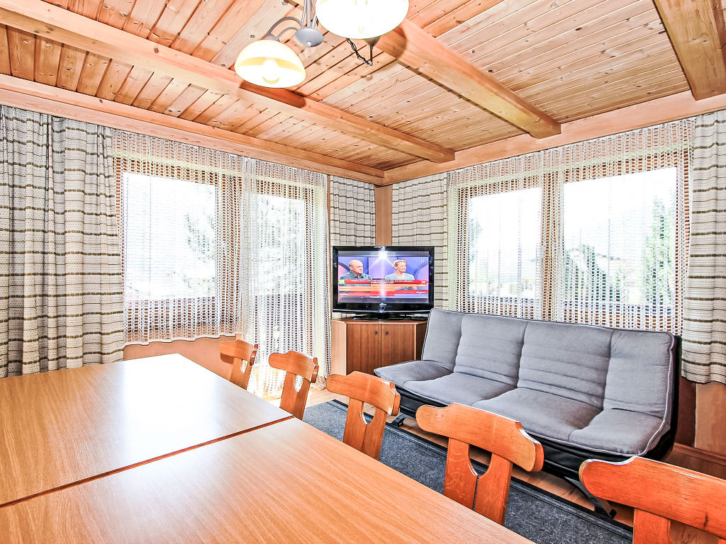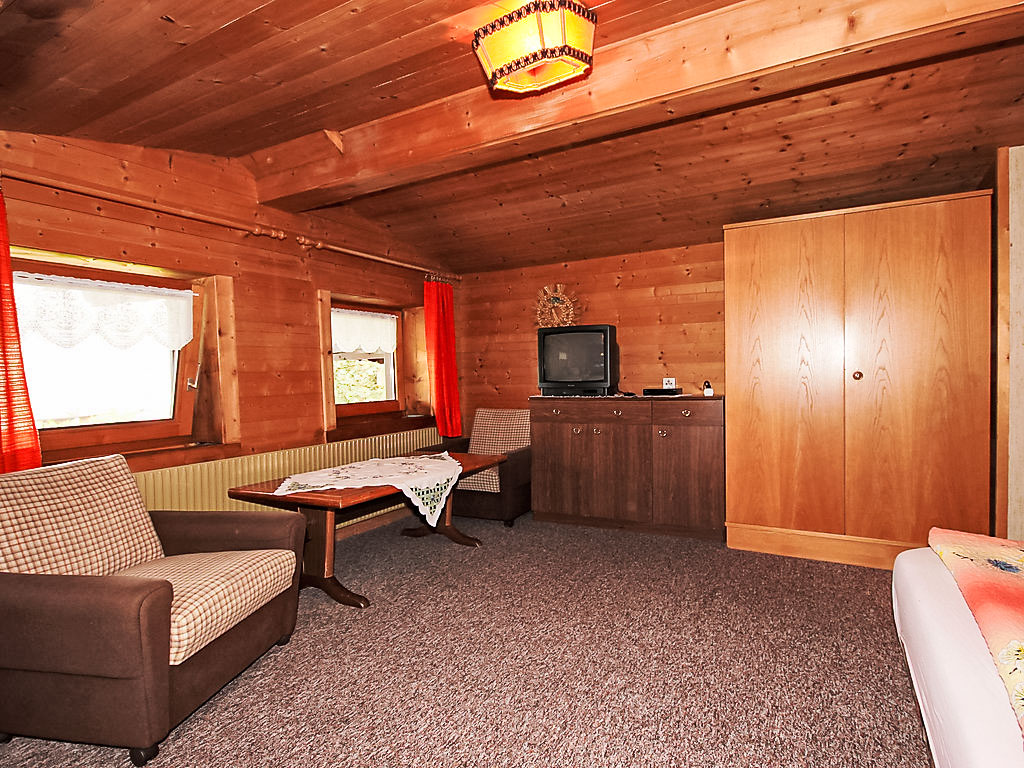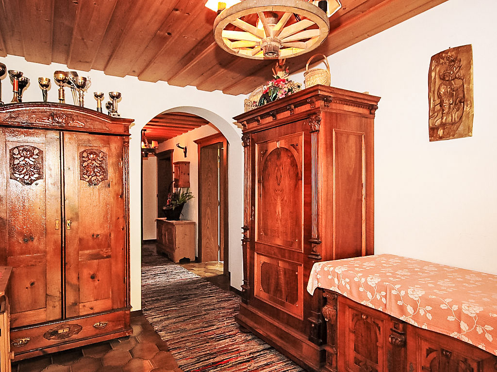 7-Zimmer-Haus 230 m2 auf 3 Stockwerken. Teilweise abgeschrägt, einfach und zweckmässig eingerichtet: Eingang. 1 Doppelzimmer. 1 Zimmer mit 1 Doppeldiwanbett, 1 Doppelbett und Sat-TV. Küche (4 Kochplatten, Backofen) mit Esstisch. Bad/WC. Obergeschoss: grosses Esszimmer mit 1 Diwanbett und Sat-TV. Ausgang zum Balkon. 1 Doppelzimmer. 1 Zimmer mit 1 Doppeldiwanbett und Sat-TV. 1 Zimmer mit 1 franz. Bett (160 cm), Dusche/WC. Küche (Backofen, Geschirrspüler, 4 Glaskeramikherd Platten, Mikrowelle, Tiefkühler) mit Esstisch. Ausgang zum Balkon, zur Terrasse. Bad/WC. Dachgeschoss: 1 abgeschrägtes grosses Zimmer, Deckenhöhe 200 - 100 cm mit 1 Doppeldiwanbett, 1 Doppelbett und Sat-TV. Küche (4 Kochplatten, Backofen) mit Esstisch. Ausgang zum Balkon. Bad, sep. WC. 2 Balkone, Terrasse. Terrassenmöbel, Sitzplatz. Sehr schöne Panoramasicht auf die Berge und die Landschaft. Zur Verfügung: Internet (Wireless LAN, extra). 2 Haustiere/Hunde erlaubt. Das Haus darf mit maximal 14 Personen belegt werden (inklusive Gitterbett). 2 Zusatzbetten für eine 15. oder 16. Person sind gegen Gebühr möglich. Bei Belegung mit weniger Personen als der maximalen Personenzahl stehen nicht alle Schlafzimmer zur Verfügung.