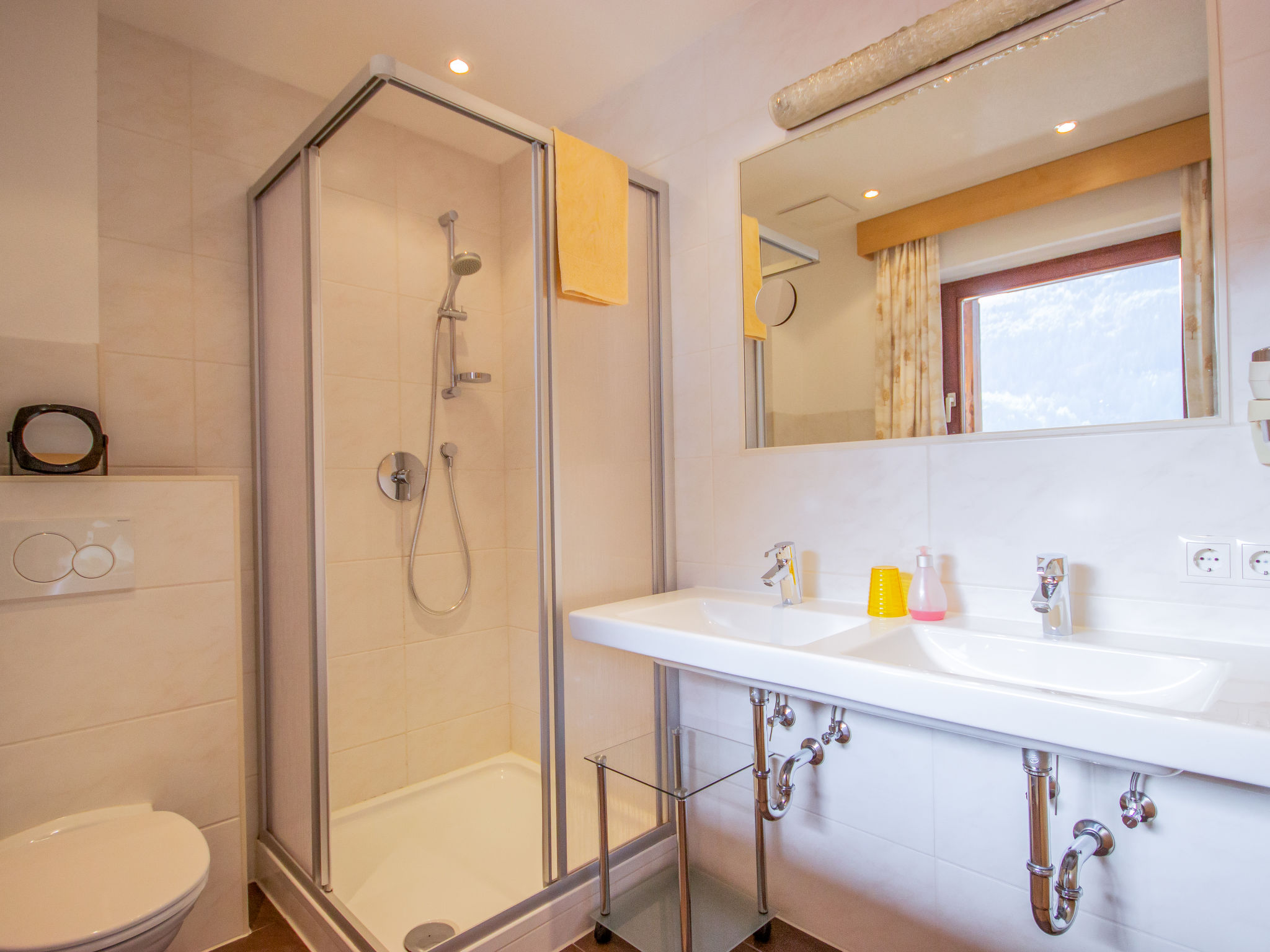 6-Zimmer-Wohnung 136 m2 im 1. Stock. Geräumig, geschmackvoll eingerichtet: 2 Doppelzimmer, jedes Zimmer mit Kabel-TV (Flachbildschirm). 2 Zimmer, jedes Zimmer mit 1 Bett, 1 Doppelbett und Kabel-TV (Flachbildschirm). Wohn-/Esszimmer mit 1 Doppeldiwanbett und Sat-TV (Flachbildschirm). Offenes Wohn-/Schlafzimmer mit 1 Doppeldiwanbett und Sat-TV (Flachbildschirm). Offene Küche (Backofen, Geschirrspüler, 4 Glaskeramikherd Platten, Mikrowelle, elektrische Kaffeemaschine). 4 Duschen/WC, sep. WC, Doppelwaschbecken. Komfortable Einrichtung im Landhausstil. 2 Balkone. Herrliche Panoramasicht auf die Skipiste und die Ortschaft. Zur Verfügung: Telefon, Safe, Haartrockner. Internet (Wireless LAN, gratis). Parkplatz (3 Autos). Bitte beachten: Nichtraucher-Unterkunft. Alle Betten sind Boxspringbetten und können wahlweise als Doppel- oder Einzelbetten genutzt werden.