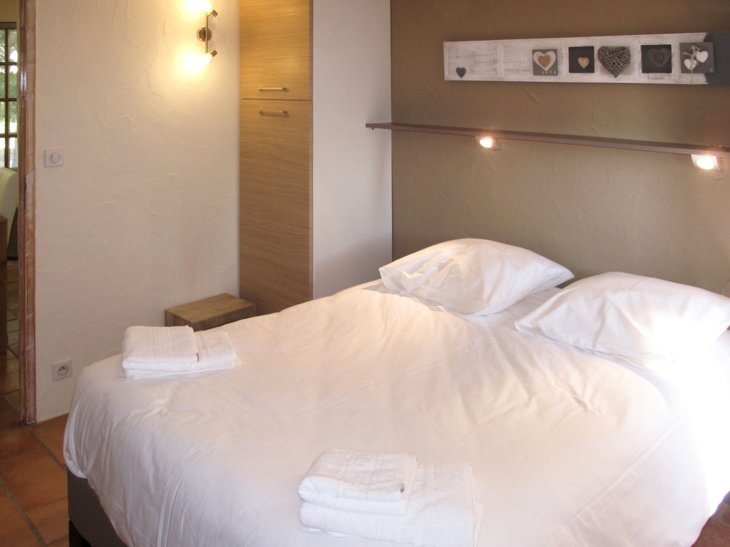 "Les Garrigues d.l. Vallée d.B. (MSL170)", 3-Zimmer-Reihenhaus 50 m2 auf 2 Stockwerken. Hell, geschmackvoll eingerichtet: Wohn-/Esszimmer mit Esstisch, Sat-TV und Klimaanlage. 1 Zimmer mit 1 franz. Bett. Kochnische (Backofen, Geschirrspüler, 4 Glaskeramikherd Platten, Toaster, Wasserkocher, Mikrowelle, elektrische Kaffeemaschine). Sep. WC. Obergeschoss: 1 abgeschrägtes Zimmer mit 2 Betten. Dusche. E-Heizung. Terrasse überdacht. Terrassenmöbel. Schöne Sicht auf die Landschaft. Zur Verfügung: Fliegengitter, Kinderhochstuhl, Babybett. Internet (Wireless LAN, gratis). Parkplatz (1 Auto). Bitte beachten: Nichtraucher-Unterkunft. Maximal 1 Haustier/Hund erlaubt. Rauchmelder, Feuerlöscher. Bei Belegung mit weniger Personen als der maximalen Personenzahl stehen nicht alle Schlafzimmer zur Verfügung.