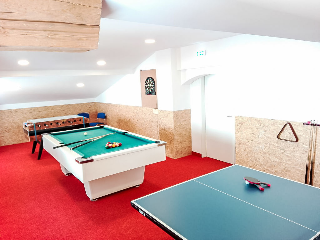 17-Zimmer-Haus 630 m2. Gemütlich eingerichtet: Esszimmer mit Bar. Grosse Küche (4 Kochplatten, Backofen, Geschirrspüler, Mikrowelle, Tiefkühler, Grill, elektrische Kaffeemaschine). 2 sep. WC's. Obergeschoss: 1 Zimmer mit 1 Bett und Waschbecken. 1 Zimmer mit 1 x 2 Etagenbetten, 1 Doppelbett und Waschbecken. 1 Zimmer mit 4 Betten. 1 Zimmer mit 3 Betten und 1 x 2 Etagenbetten, Waschbecken. 1 Zimmer mit 4 Betten und Waschbecken. 1 offenes Zimmer mit Sat-TV und DVD. 4 Duschen, 2 sep. WC's. 2. Obergeschoss: 2 Doppelzimmer, jedes Zimmer mit Dusche/WC. 1 Zimmer mit 1 Bett und Dusche/WC. 1 Zimmer mit 2 Betten und Waschbecken. 2 Doppelzimmer, jedes Zimmer mit Waschbecken. 2 Zimmer, jedes Zimmer mit 1 Bett, 1 Doppelbett und Waschbecken. 2 Zimmer, jedes Zimmer mit 3 Betten und Waschbecken. 1 Zimmer mit 2 x 2 Etagenbetten, Waschbecken. 4 Duschen, 2 sep. WC's. Zur Verfügung: Internet (Wireless LAN, extra). 2 Haustiere/Hunde erlaubt.