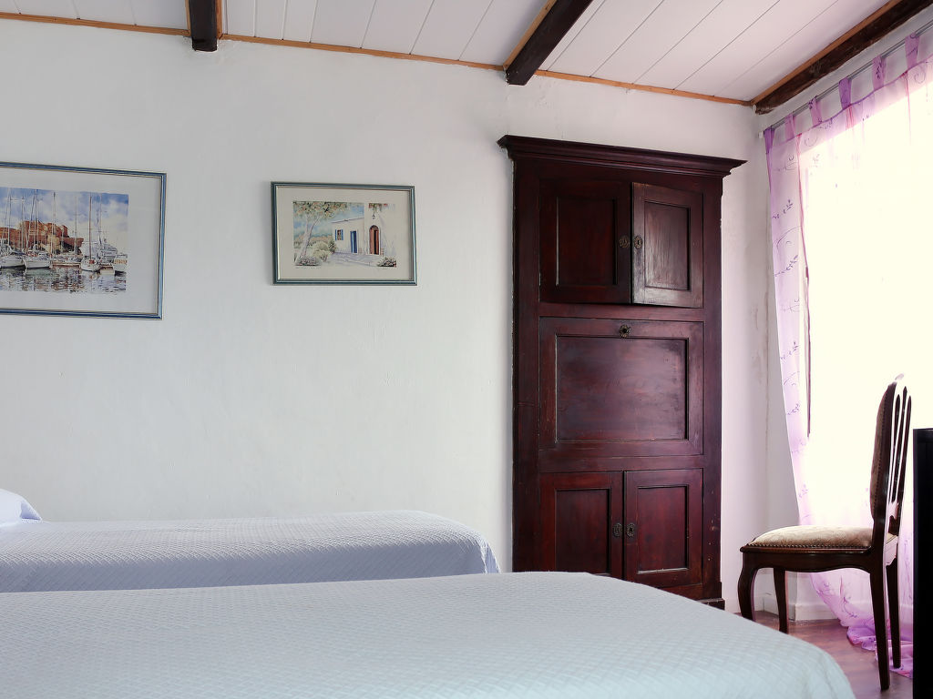 "Marielle (CPC100)", 5-Zimmer-Haus 100 m2 auf 2 Stockwerken. Schön und gemütlich eingerichtet: Obergeschoss: (Aussentreppe) kleines Wohn-/Esszimmer mit offenem Kamin (nur Deko), Esstisch und Sat-TV. 1 Zimmer mit 1 franz. Bett (160 cm). Küche (Backofen, Geschirrspüler, 4 Flammen, Toaster, Wasserkocher, Tiefkühler, elektrische Kaffeemaschine). Dusche/WC. 2. Obergeschoss: 1 Zimmer mit 2 Betten. Durchgangszimmer mit 2 Betten. 1 Zimmer mit 2 Betten. E-Heizung. Terrasse 20 m2. Terrassenmöbel. Sicht auf das Meer. Zur Verfügung: Waschmaschine, Babybett. Internet (Wireless LAN, gratis). Bitte beachten: Nichtraucher-Haus. Inserat einer Privatperson nach Artikel 155, IV, CGI.