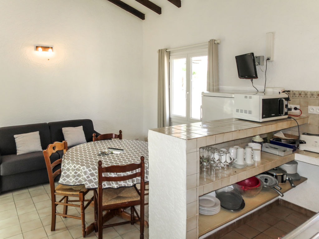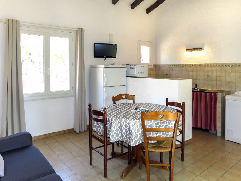 "Les Cigales (PVC140)", 3-Zimmer-Doppelhaushälfte 50 m2. Zweckmässig eingerichtet: Wohn-/Esszimmer mit Esstisch und Sat-TV. 1 Zimmer mit 1 franz. Bett. 1 Zimmer mit 2 Betten. Offene Küche (4 Kochplatten, Backofen, Geschirrspüler, Toaster, Wasserkocher, Mikrowelle, Tiefkühler, elektrische Kaffeemaschine). Sep. WC, Bad oder Dusche. Heizung, Klimaanlage. Terrasse 12 m2. Terrassenmöbel (mobil). Zur Verfügung: Waschmaschine, Safe. Internet (Wireless LAN, gratis). Bitte beachten: geeignet für Familien. Nichtraucher-Unterkunft. Rauchmelder, Feuerlöscher.