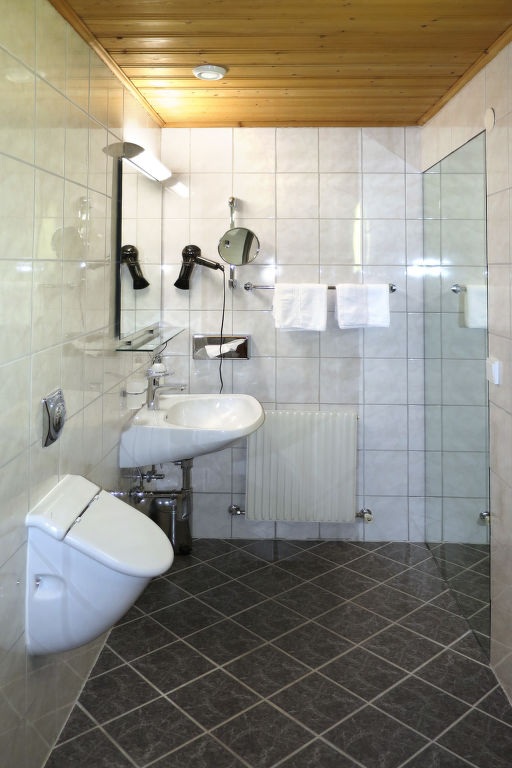 3-Zimmer-Wohnung, 2. Etage, ca. 65 m². Flur mit Garderobe. Wohnküche (4 Ceranfelder, Backofen, Mikrowelle, Geschirrspüler, Kühlschrank, Kaffeemaschine) mit gemütlichem Essplatz. Schlafzimmer mit Doppelbett, Einzelbett, Dusche und sep.WC. Doppelzimmer mit Dusche und sep.WC. Bei Belegung mit weniger Personen als der maximalen Personenzahl stehen nicht alle Wohneinheiten zur Verfügung.
