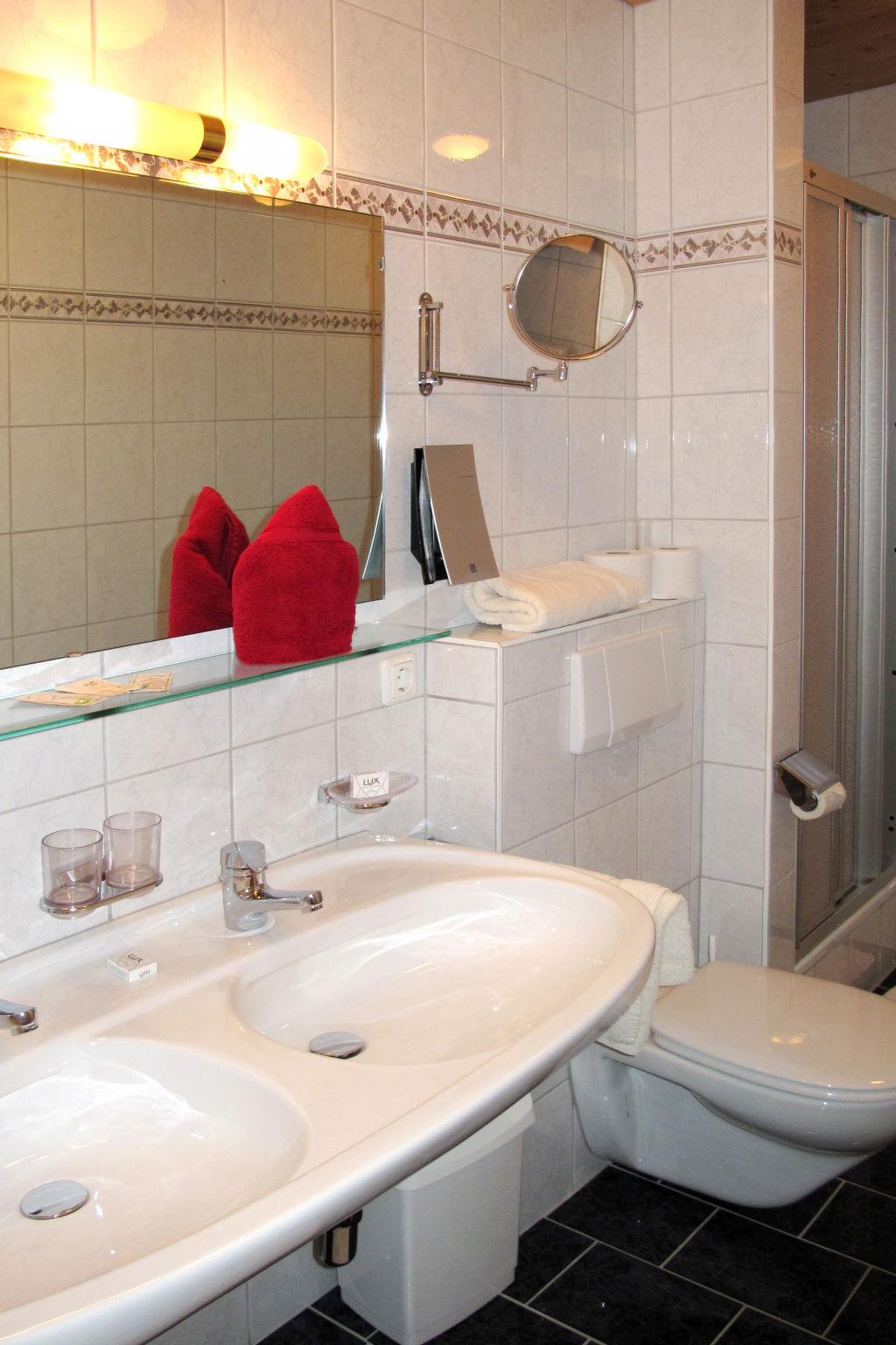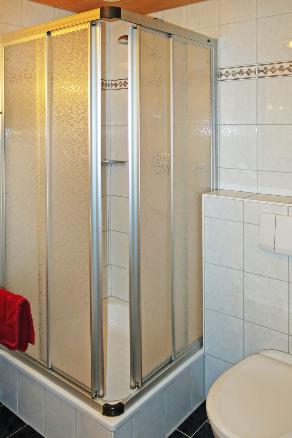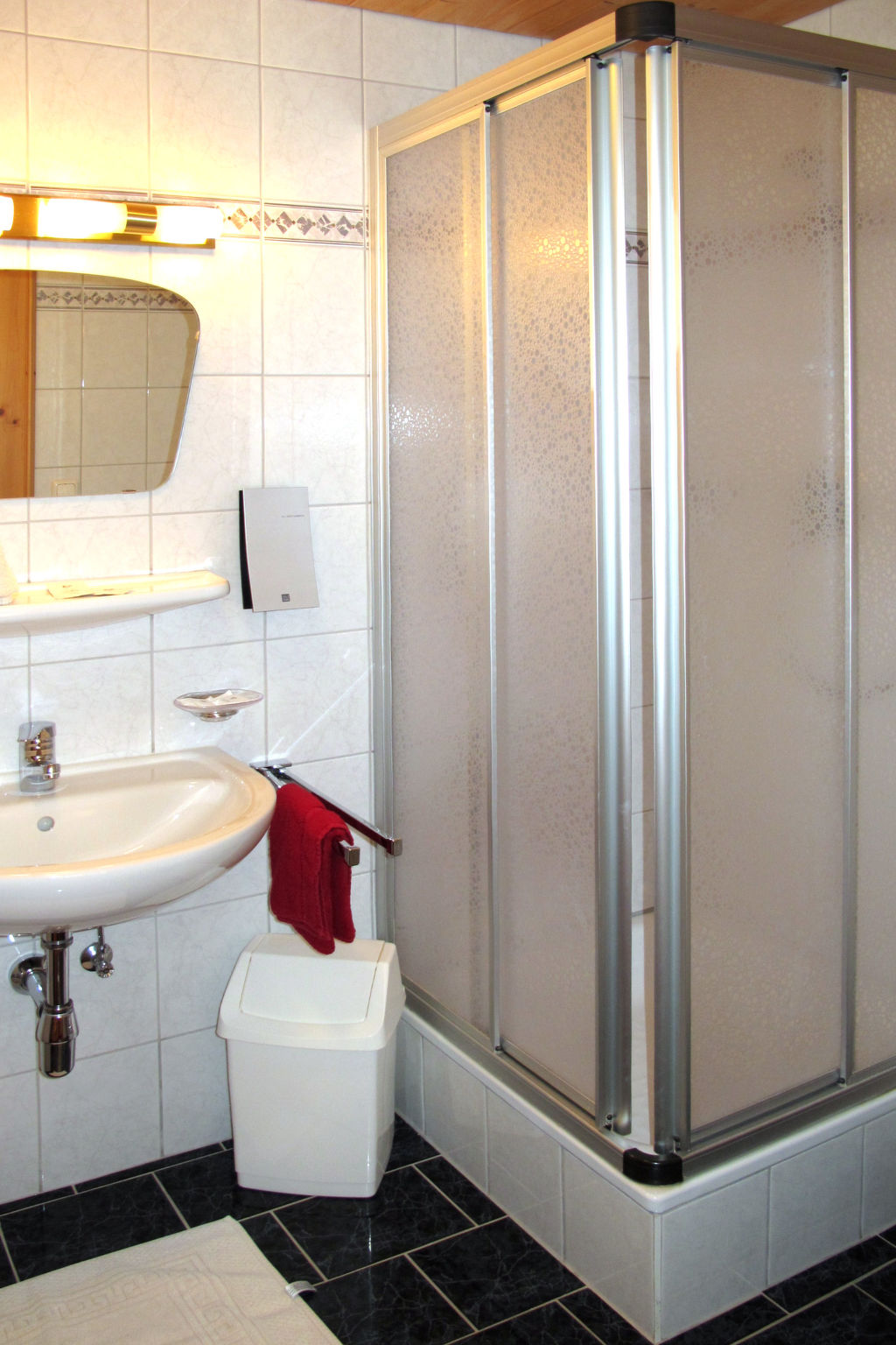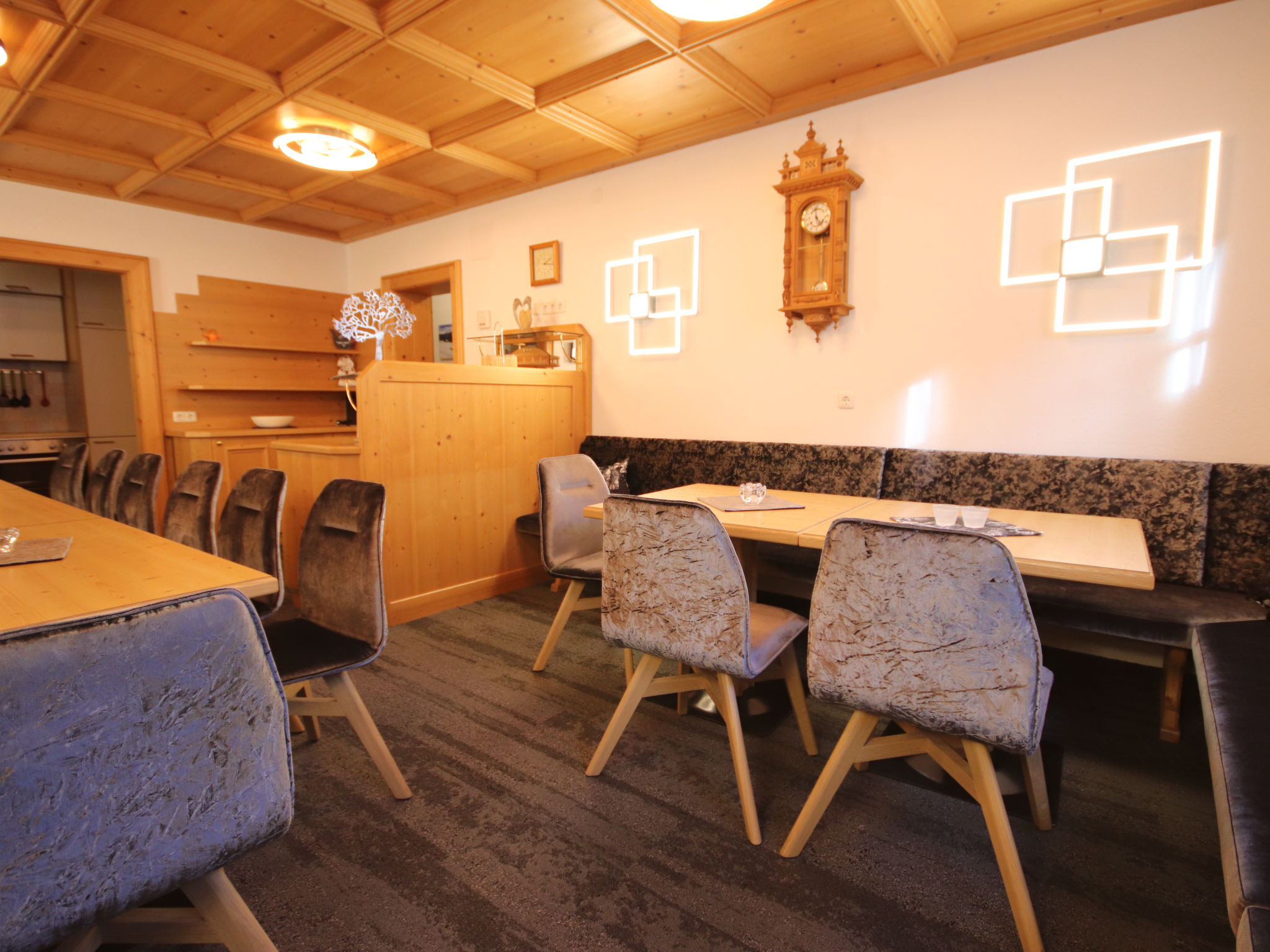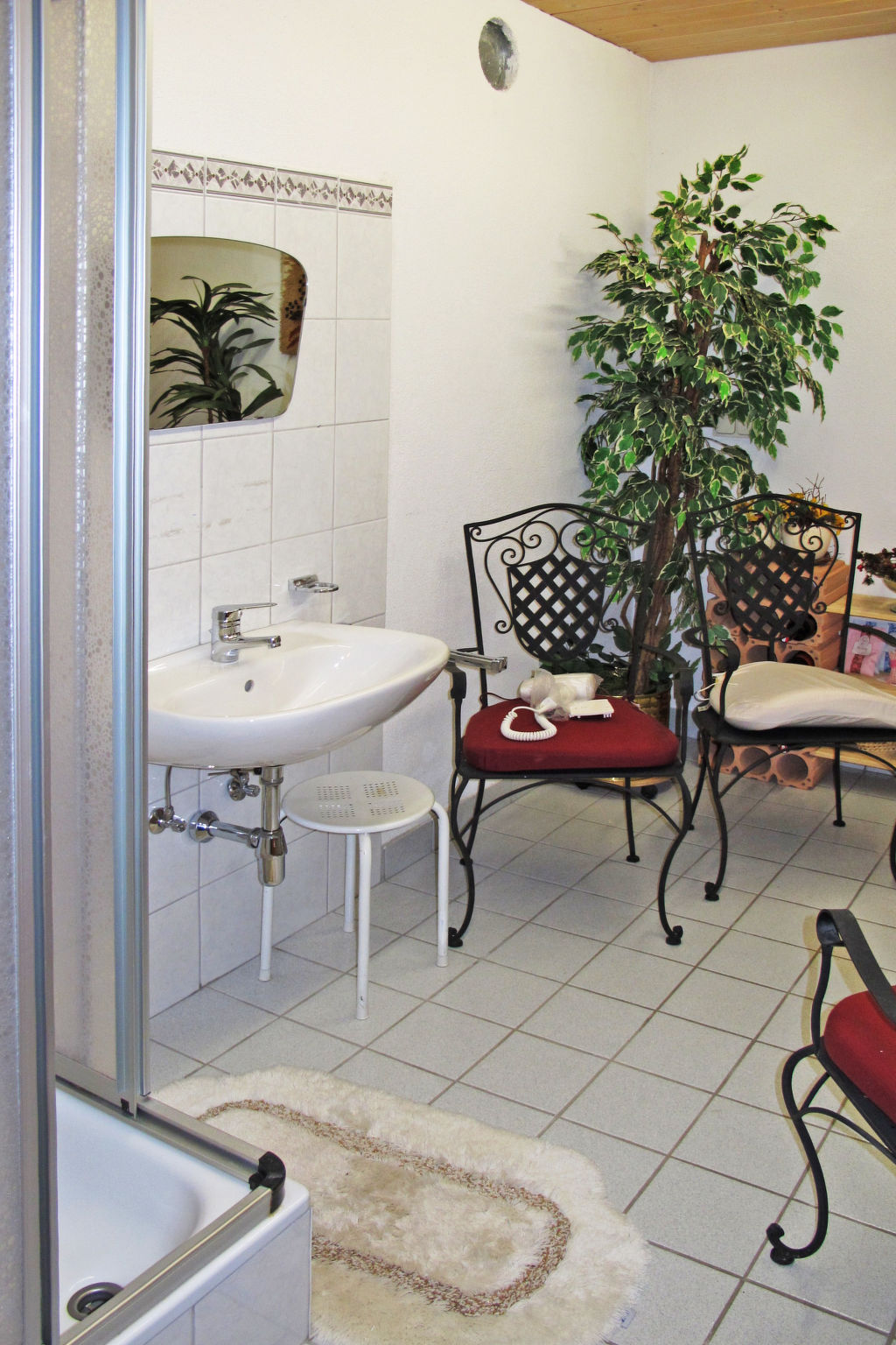 7-Zimmer-Wohnung, 3 Etagen, ca. 150 m². Untergeschoss/Hanglage: Großer Aufenthaltsraum mit Essplätzen, Sat-TV und Zugang zu Küche (4 Platten, Backofen, Geschirrspüler, Kühlschrank, Kaffeemaschine, Wasserkocher, Toaster). Sep.WC. 1. Etage: 2 Doppelzimmer mit Dusche/WC und Balkonausgang. Schlafzimmer mit Doppelbett, Einzelbett, Dusche/WC und Balkonausgang. 2. Etage: 2 Doppelzimmer mit Dusche/WC und Balkonausgang. Schlafzimmer mit Doppelbett, Einzelbett, Dusche/WC und Balkonausgang.Hinweis: Alle Zimmer sind vom gemeinsamen Hausflur und dem gemeinsamen Treppenhaus aus separat zugänglich. Bei Belegung mit weniger Personen als der maximalen Personenzahl stehen nicht alle Wohneinheiten zur Verfügung.