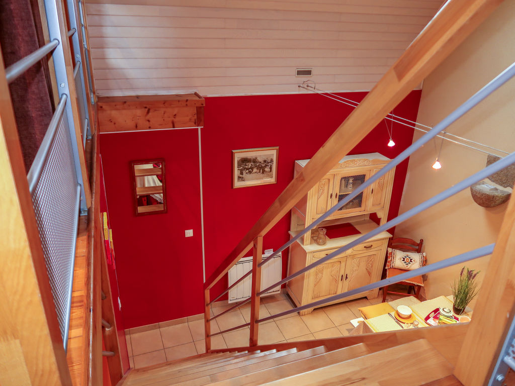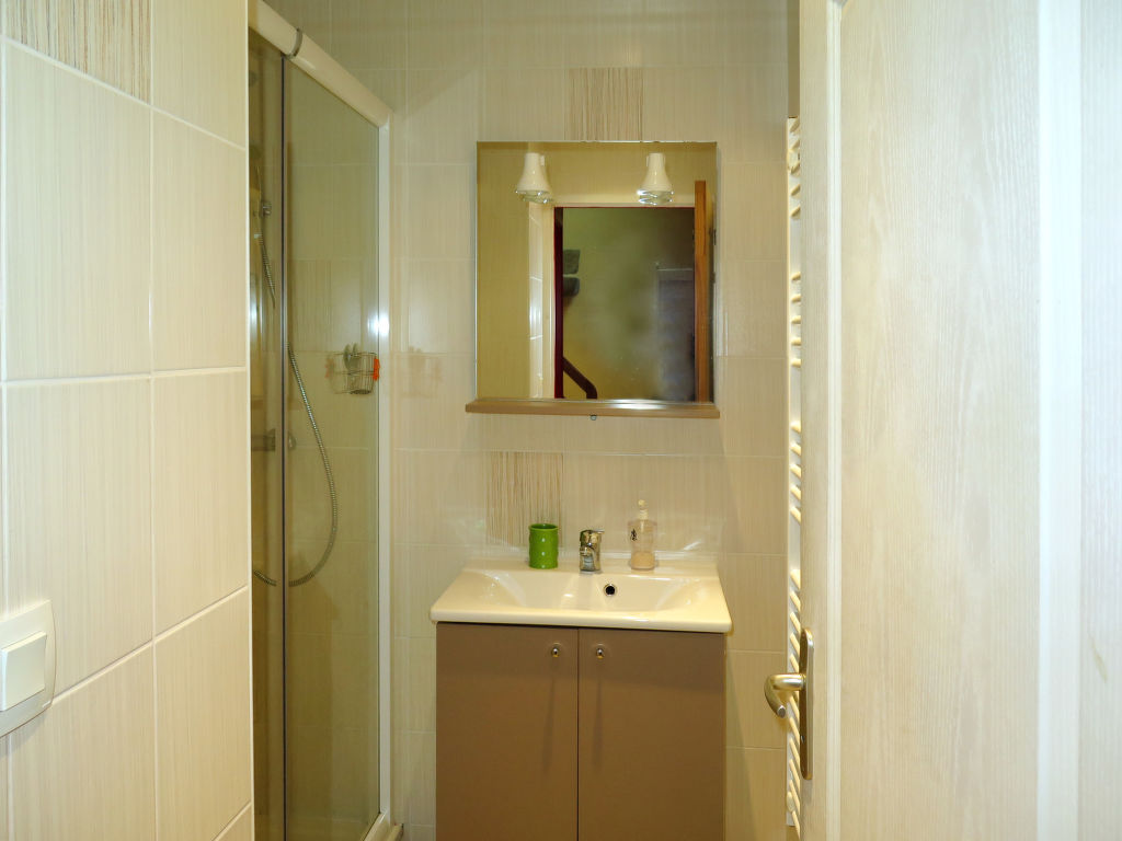 1½-Zimmer-Haus, 2 Etagen, ca. 40 m². Erdgeschoss: Wohn-/Schlafraum mit Bettcouch, Essplatz (2 Bänke, 2 Stühle), offene Küchenzeile (4 Ceranfelder, Backofen, Kühlschrank, Kaffeemaschine, Wasserkocher, Toaster). Dusche. Sep.WC. Vom Wohnraum Treppe ins Obergeschoss (Dachschräge): Offene Galerie mit franz. Bett und Einzelbett (durch Vorhang abgeteilt). Inserat einer Privatperson nach Artikel 155, IV, CGI.
