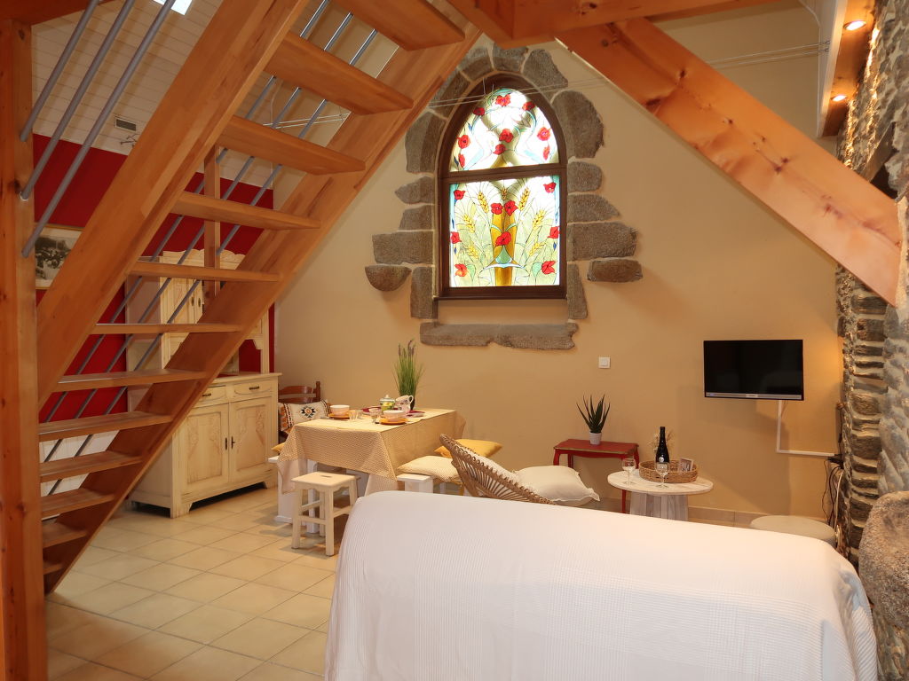 Der ehemalige bretonische Herrensitz Keranguen mit unserem Ferienhaus LA CHAPELLE sowie 2 weiteren Häusern liegt im gleichnamigen Weiler, umgeben von schöner Natur. Ploumoguer 3,5 km. Le Conquet 6,5 km. Schöner Sandstrand 'Blancs Sablons' 6 km. Reitstall 2 km. Die Kapelle aus dem 15. Jhdt., das Herzstück des Anwesens, wurde in ein kleines Ferienhaus umgebaut. Ein weiterer Gebäudeteil auf dem Anwesen ist ungenutzt. Ca. 250 m² großer, eigener Grundstücksanteil. Schöne Südterrasse. Freisitz mit Gartenmöbeln, transportablem Grill. Parkmöglichkeiten auf dem Grundstück. Auf dem benachbarten, familiär geführten landwirtschaftlichen Betrieb (Bio-Anbau) können bei den Besitzern Produkte wie Milch, Butter und Käse erworben werden. Ansprechende, feriengerechte Einrichtung. Besonders schöne Lichteffekte durch buntes Glasfenster. Sichtbare Natursteinwände und Deckenbalken bzw. holzverkleidete Decken. Heller Fliesen- bzw. Parkettboden. Sat-TV (deutsche Programme). Internetzugang (WLAN gegen Bezahlung, auf Bestellung). Waschmaschine, Bügeleisen/-brett. Elektroheizung. Abstellraum. Hinweis: Rauchen ist im Haus nicht gestattet.