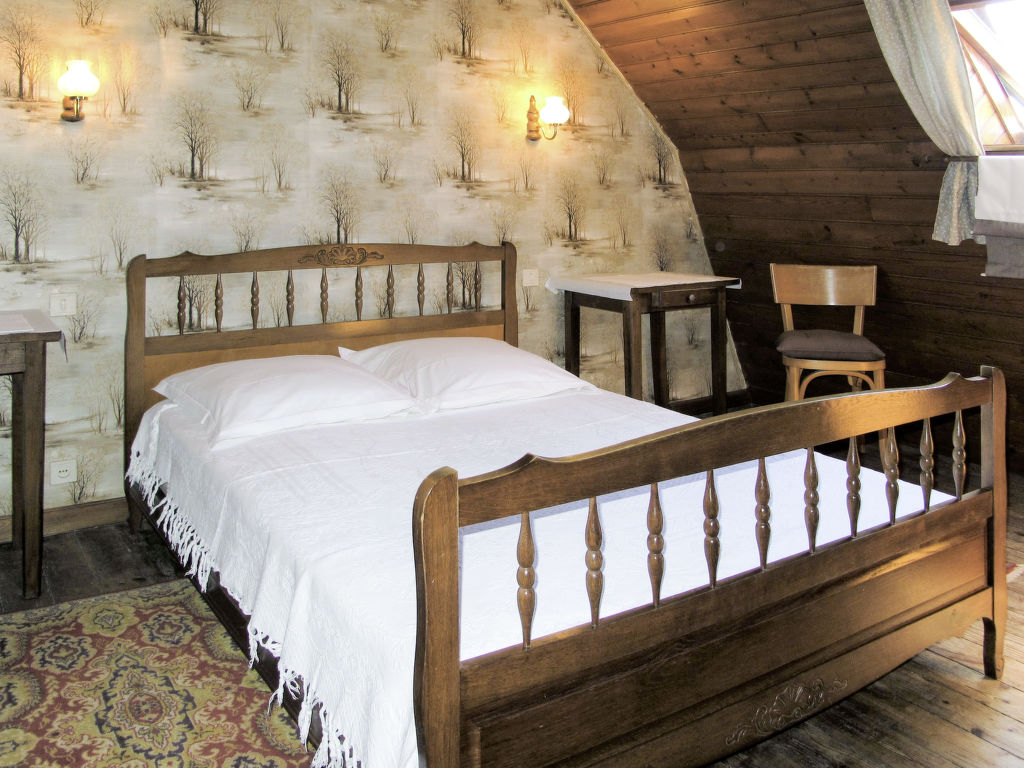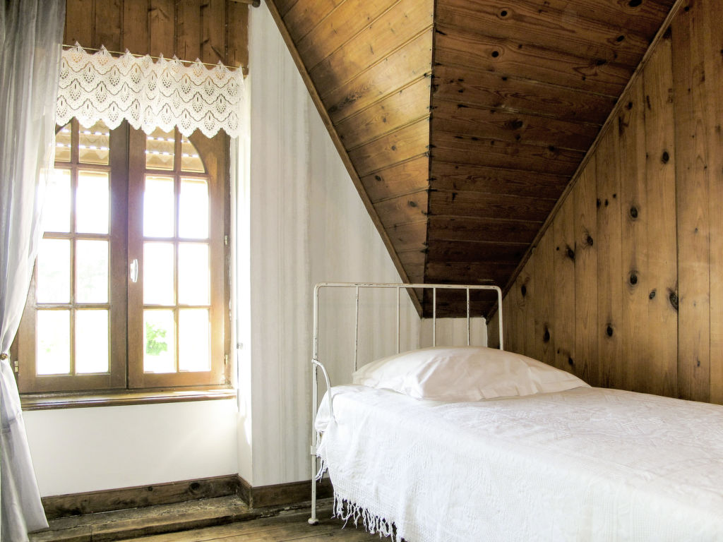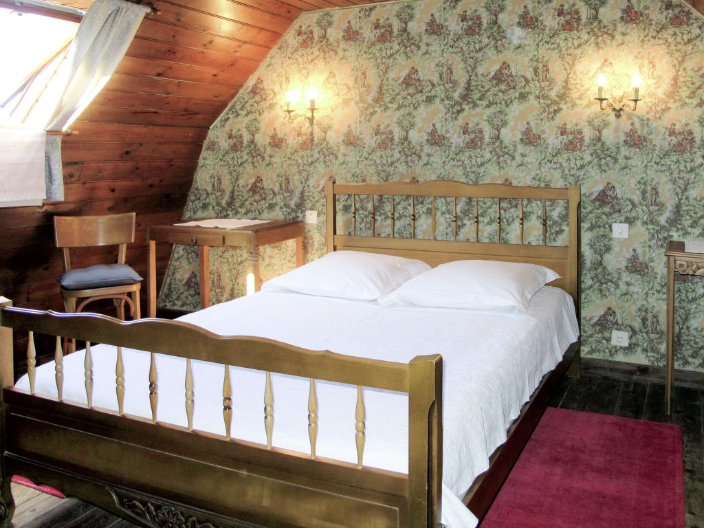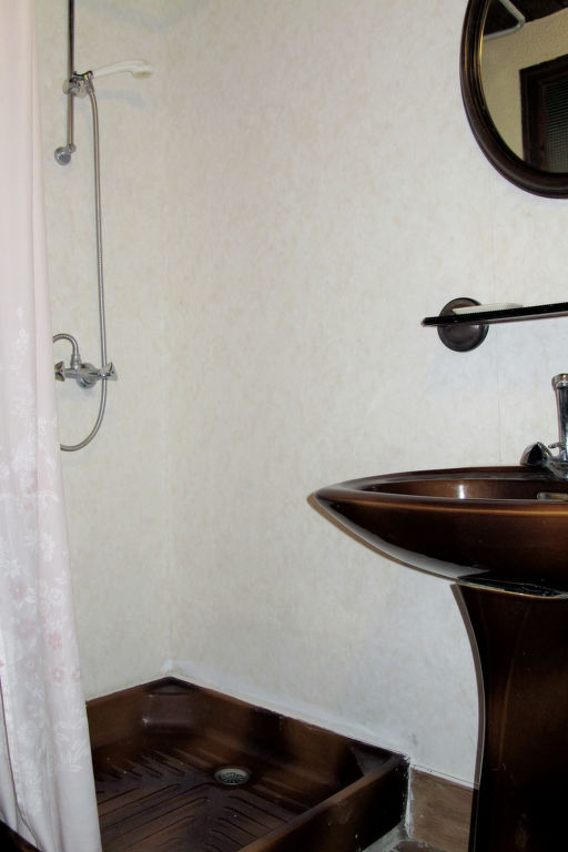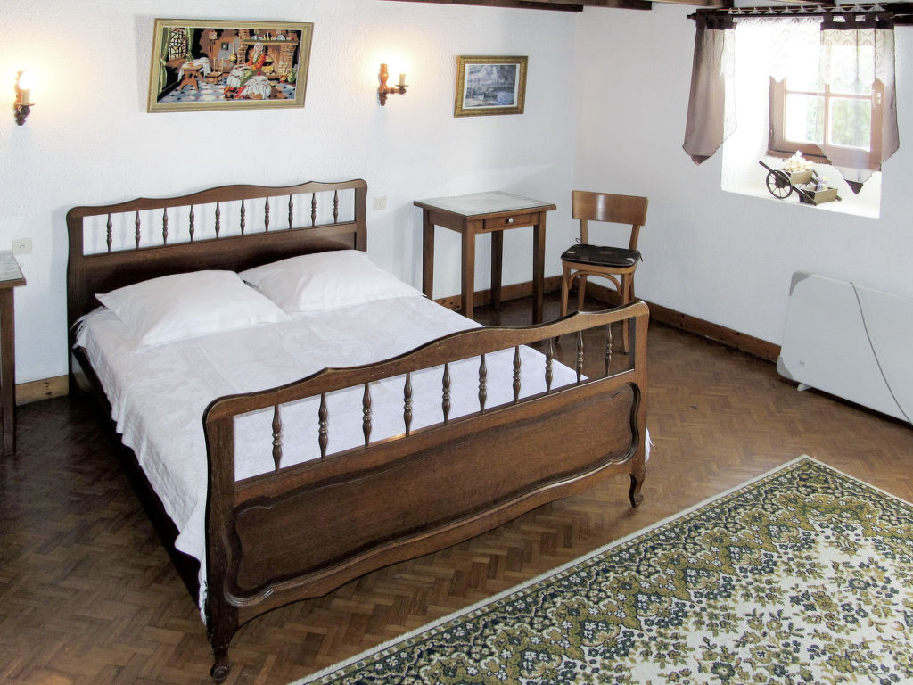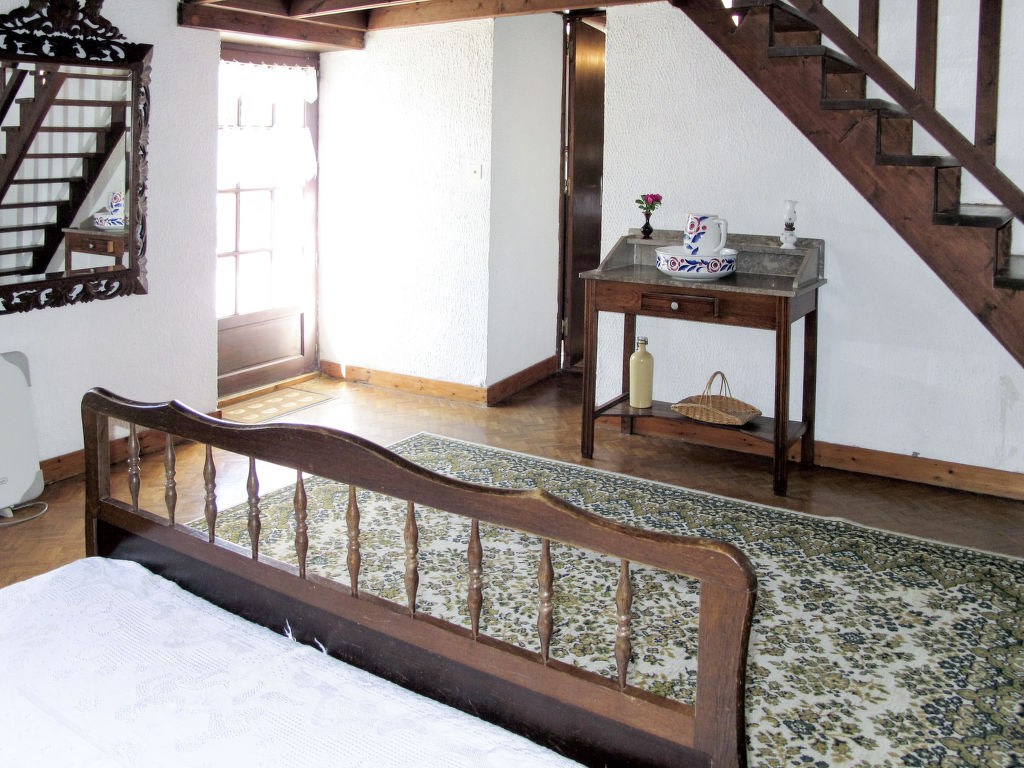 5½-Zimmer-Haus, 2 Etagen, ca. 100 m². Erdgeschoss: Eingangsbereich. Wohnraum mit Sitzgruppe und Kamin. Kleine Küche (4 Platten, Backofen, Mikrowelle, Kühlschrank, Kaffeemaschine, Wasserkocher, Toaster) mit Essplatz. Einfache Dusche. Sep.WC. Schlafzimmer mit franz. Bett, Terrassenausgang, von hier steile Treppe ins Obergeschoss (Dachschräge). Vom Eingangsbereich Treppe ins Obergeschoss (Dachschräge): 2 Schlafzimmer, jeweils mit franz. Bett. Einzelzimmer. Flexibilität bei der Bettenaufteilung: Es stehen mehr Schlafmöglichkeiten zur Verfügung als die maximal zugelassene Personenzahl, diese darf dennoch nicht überschritten werden. Inserat einer Privatperson nach Artikel 155, IV, CGI.